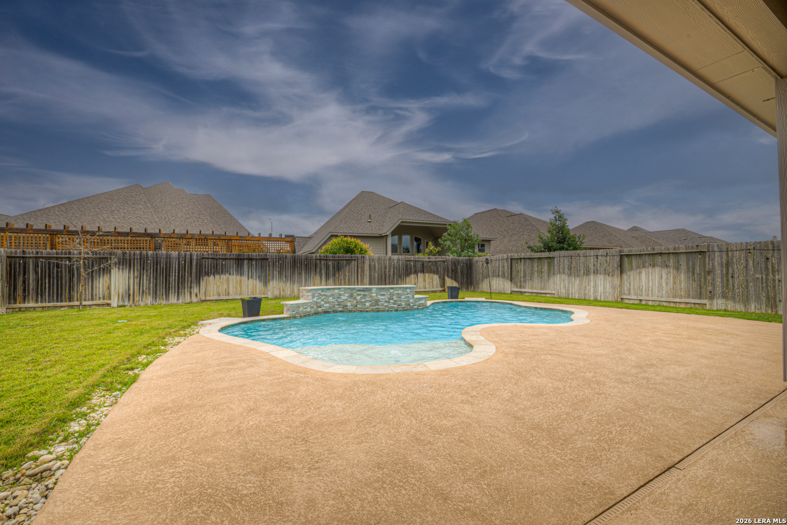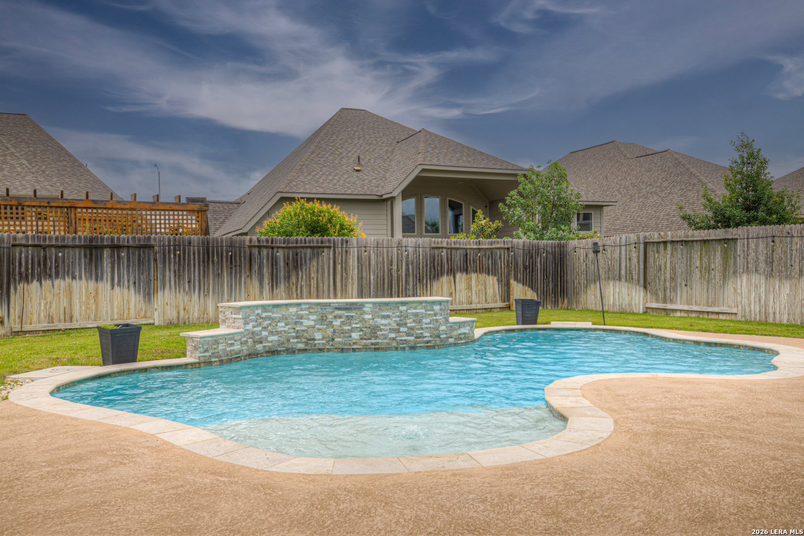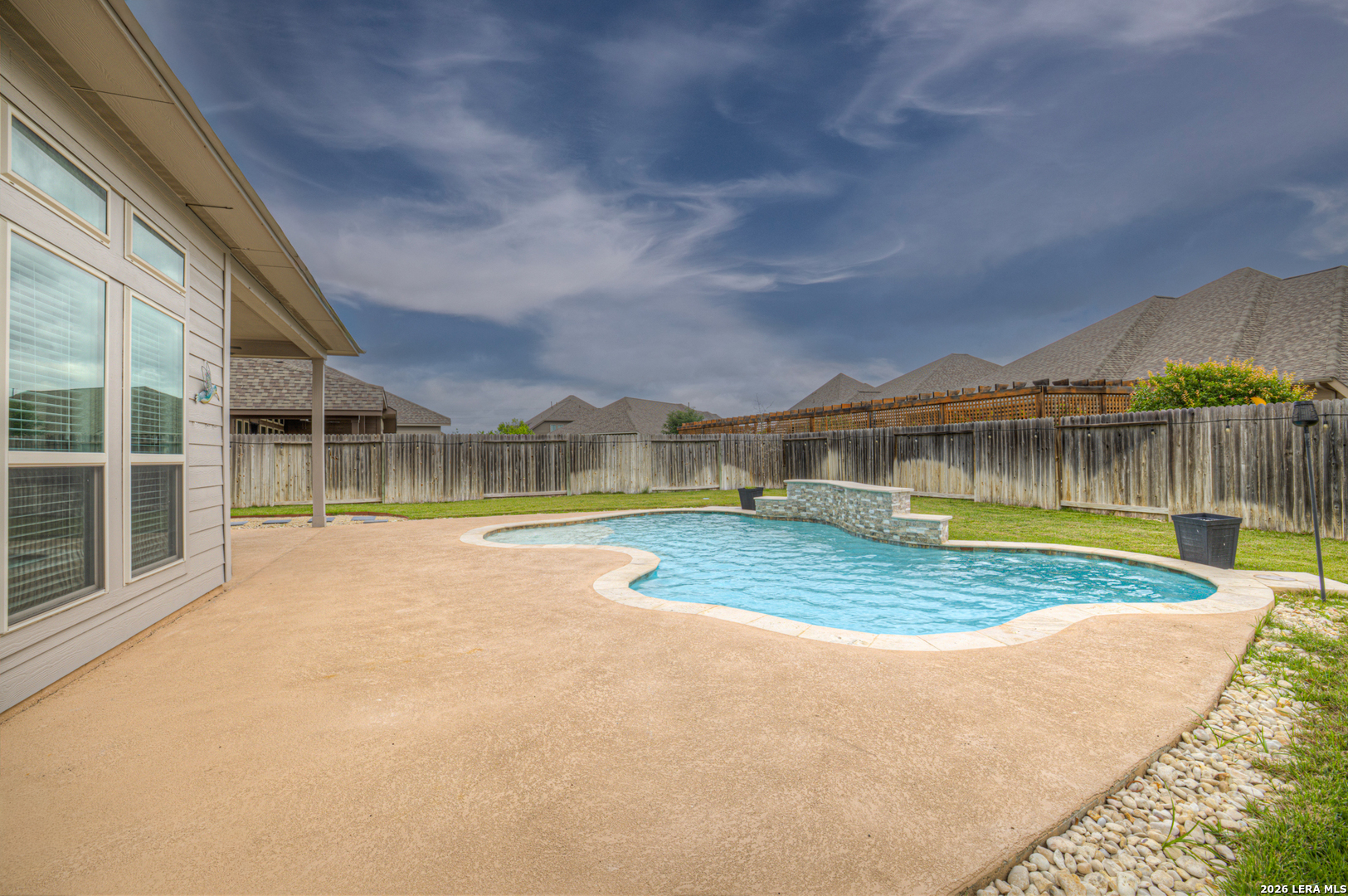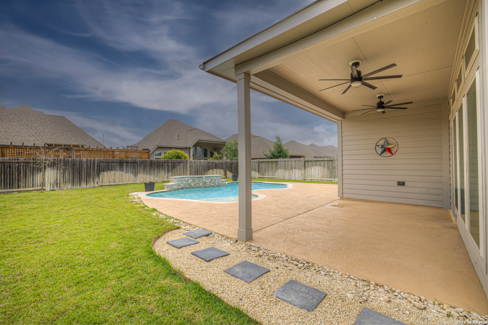 Welcome to this beautiful two-story home offering 4 bedrooms, 3 full baths, and a modern design that blends style with functionality. The thoughtfully designed layout features the primary suite and a secondary bedroom on the main floor, with a full bath conveniently located just outside the second bedroom-perfect for guests or multi-generational living. Upstairs, you'll find two additional bedrooms and the third full bathroom, along with a loft area that's ideal for a game room, or media area. A dedicated office on the main level provides the perfect work-from-home setup. The kitchen is both stylish and functional, featuring granite countertops, a center island, and a charming farmhouse sink-perfect for everyday living and entertaining alike. Step outside to your own private backyard retreat, complete with a large covered patio and an in-ground pool with waterfall feature-ideal for relaxing or hosting. Located in a great neighborhood perfect for families and zoned to the highly sought-after Navarro ISD, this home offers the perfect combination of comfort, convenience, and lifestyle. Don't miss your chance to make it yours!