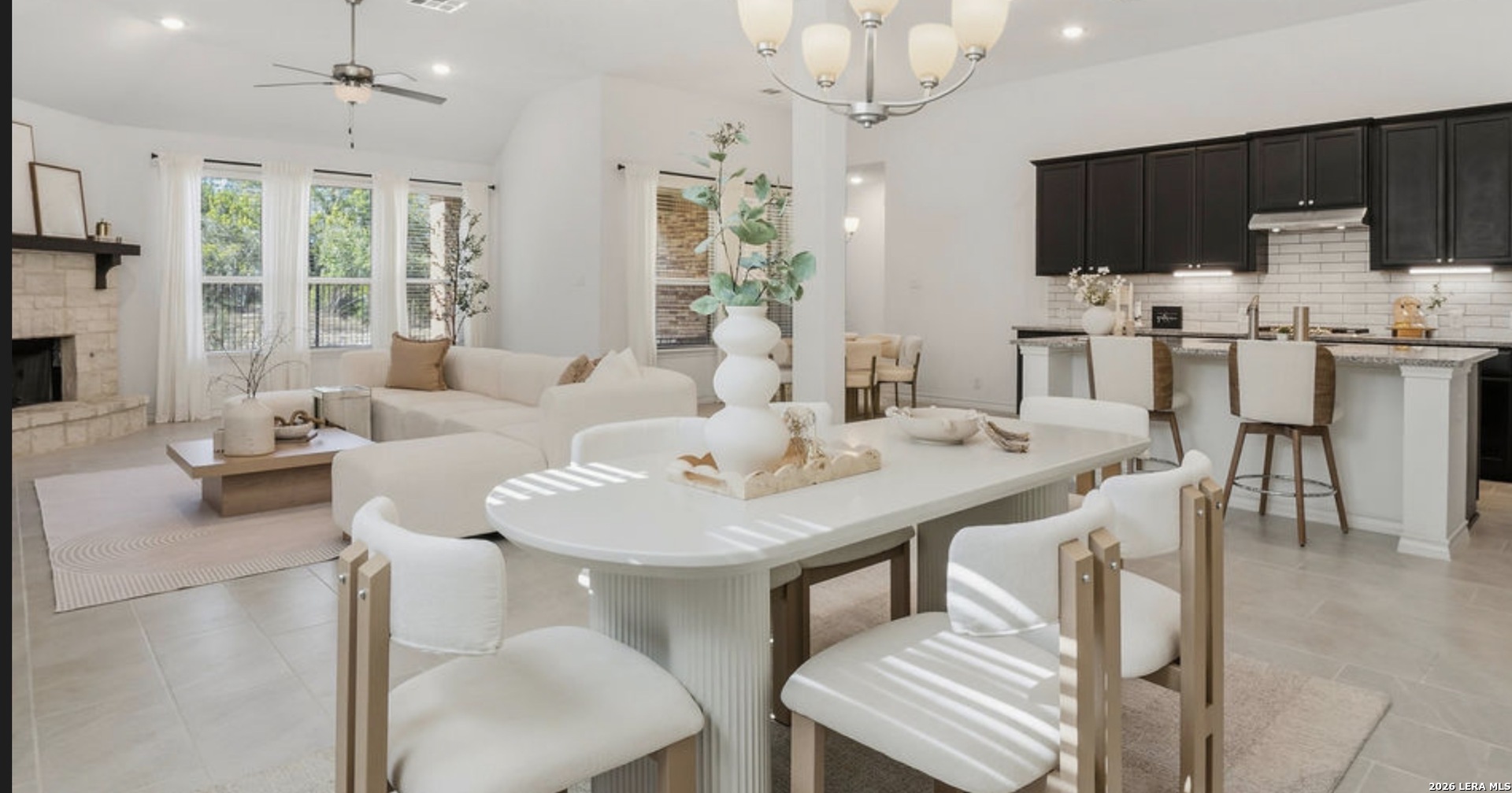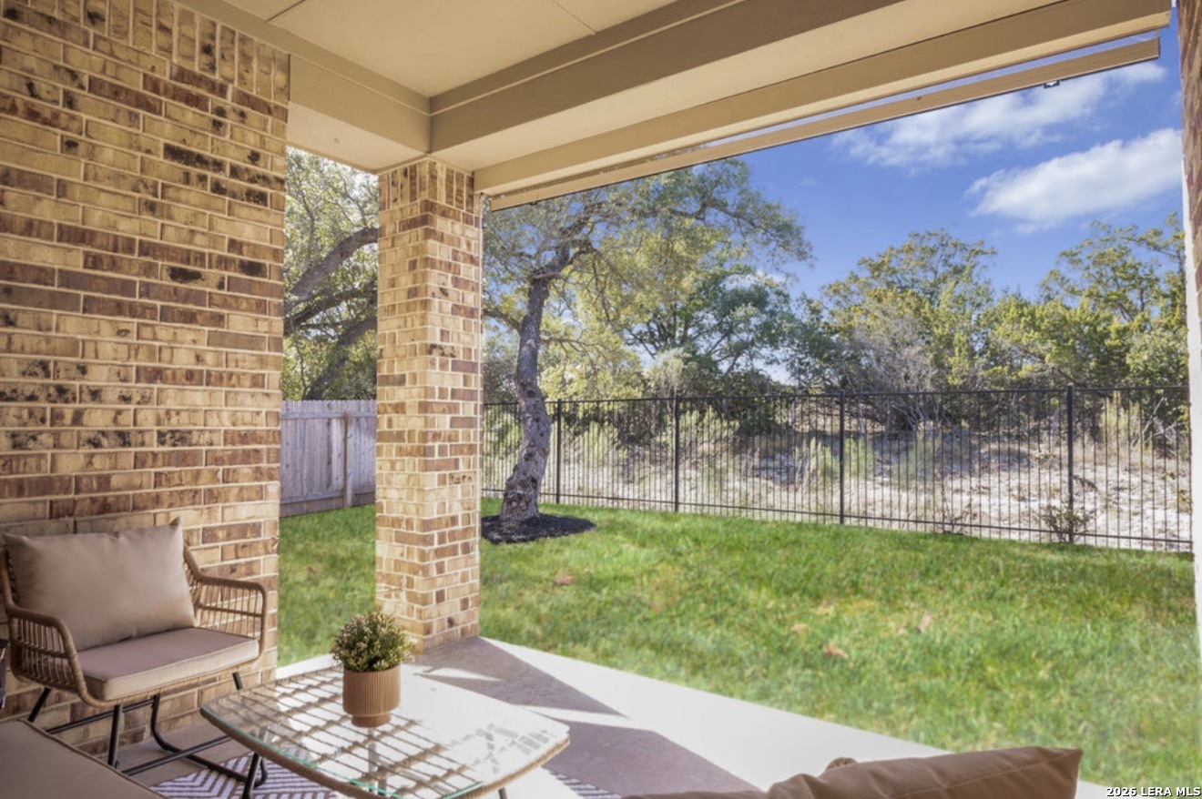 Located in the sought-after Ventana community, this beautifully designed one-story home offers 4 bedrooms, a private study, and a dedicated media room-perfect for both everyday living and entertaining. The open-concept layout features a spacious kitchen with abundant cabinetry, generous counter space, and seamless flow into the main living areas. Enjoy peaceful greenbelt surroundings and beautiful Hill Country views, abundantly visible from the owner's suite and main living areas, creating a light-filled and serene indoor-outdoor connection. A three-car tandem garage provides exceptional storage and flexibility. Thoughtful upgrades throughout, including a fully appointed laundry room, enhance comfort and functionality. Conveniently located near top-rated Comal ISD schools, shopping, and dining, this home provides the best of Hill-Country living.