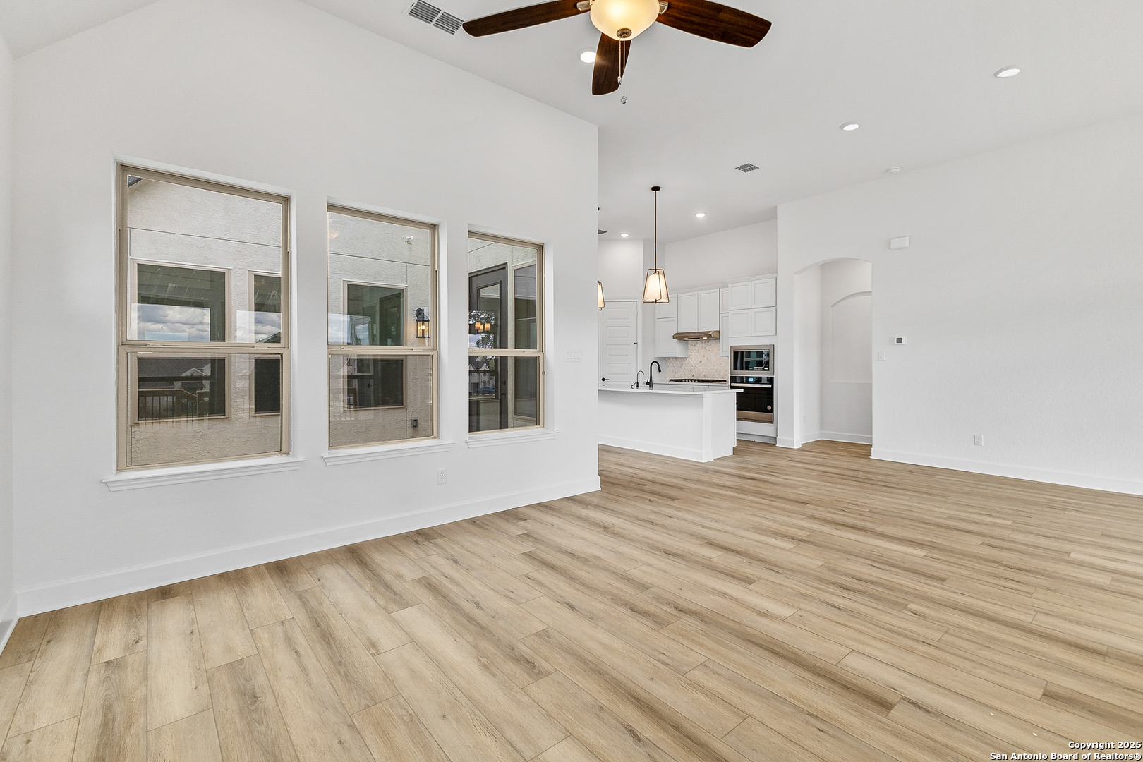 ***BUILDER OFFERING RATE BUYDOWN! CLOSING COSTS PAID!*** Welcome to this stunning one-story home in the highly sought-after neighborhood of Ventana, just off Highway 46 in Bulverde. Thoughtfully designed, this residence offers four spacious bedrooms, three bathrooms, and a dedicated office that is ideal for working from home. The open layout seamlessly connects the kitchen, dining, and living areas, creating an inviting space filled with natural light. The gourmet kitchen is perfect for entertaining and features gas cooking, generous counter space, and an effortless flow into the main living area. High ceilings and luxury vinyl plank flooring add a touch of elegance, while the design ensures comfort and functionality throughout. A beautiful sunroom and an outdoor courtyard provide additional spaces to relax or gather with friends and family. The expansive primary suite is a private retreat, complete with a spa-like bathroom offering a separate shower and a free-standing tub. Additional bedrooms are well-appointed, providing plenty of room for family or guests. A covered patio extends the living space outdoors, making it easy to enjoy the Texas Hill Country lifestyle year-round. With its large single-story design, thoughtful layout, and modern finishes, this home is truly special. Schedule your showing today and experience all that Ventana living has to offer. Disclaimer: This home is currently under construction. Photos shown are from a previous listing and for illustrative purposes only.