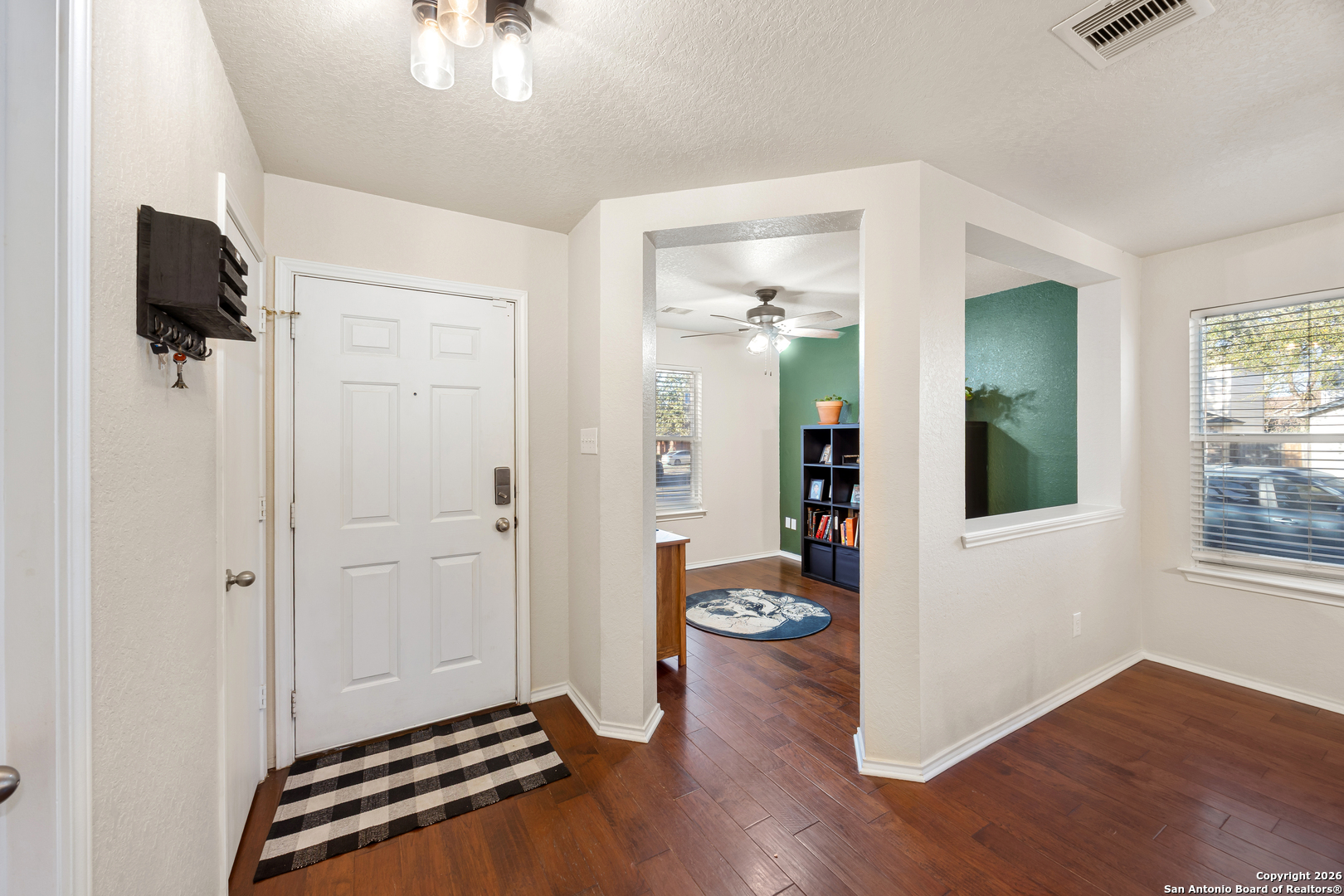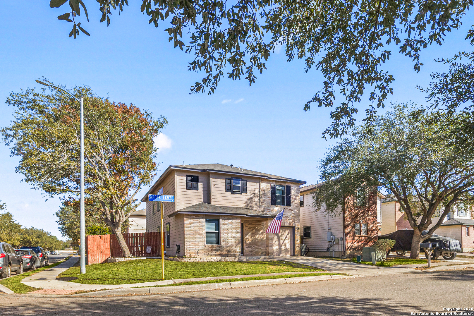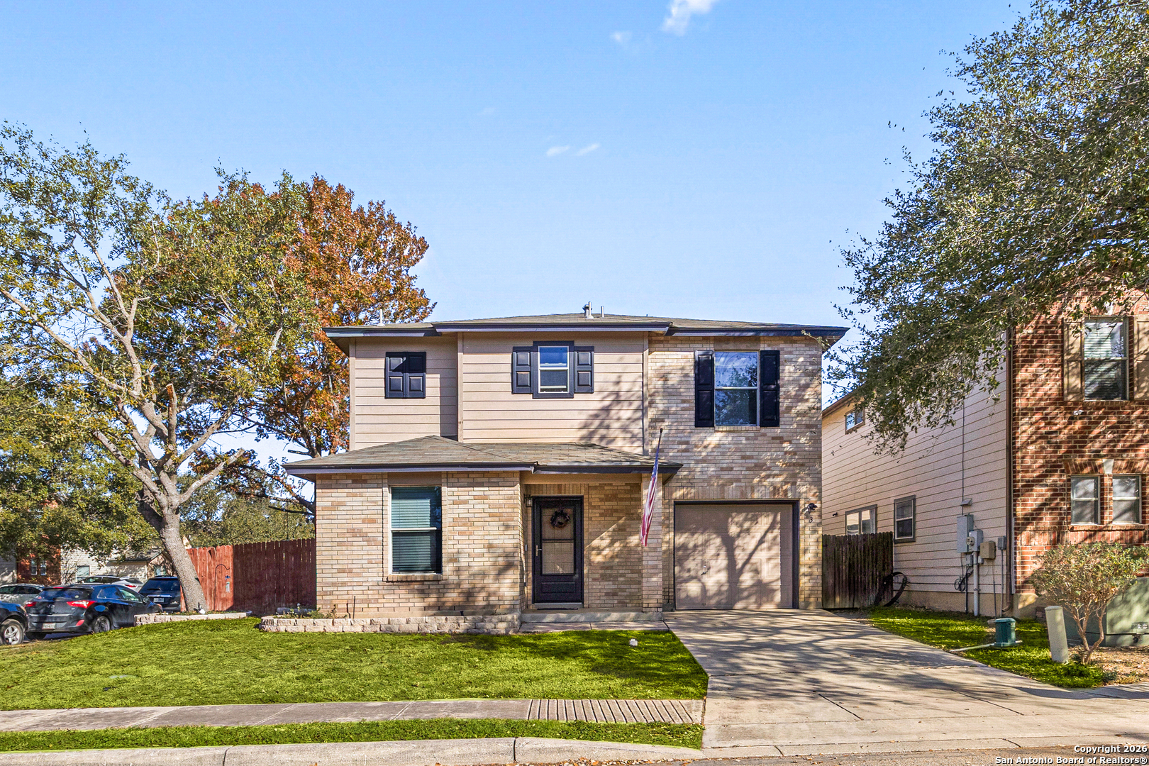 This lovely two-story home with many updates, is located in the community of Bristol Forest and situated on a corner lot. The layout offers a comfortable flow, with the living room opening directly into the kitchen, making everyday living and entertaining easy. The island kitchen features a breakfast bar, decorative lighting, a black sink, stainless steel appliances, and convenient access to the patio. A formal dining room provides additional space for meals or gatherings, while a dedicated home office offers flexibility for work or hobbies. All bedrooms are located upstairs, including the primary bedroom with large windows that fill the space with natural light. The primary bathroom includes a spacious walk-in shower, and the secondary bedrooms are well sized. An upstairs laundry room adds everyday convenience. The backyard is designed for both relaxation and functionality, featuring a covered patio, lawn area, pavers, and a privacy fence-ideal for enjoying time outdoors. Recent updates include a freshly painted interior, upgraded bathrooms, new ceiling fans, backyard pavers, and new AC/central units with a warranty. The home is conveniently located near I-35 and Loop 410, with easy access to Takas Park, Windcrest City Park, shopping, dining, and more. Schedule your personal tour today, and make this your next home!
