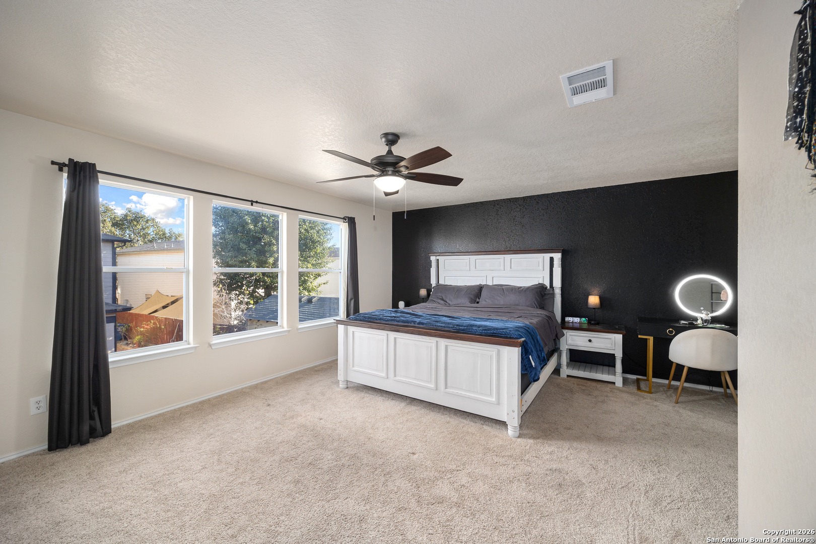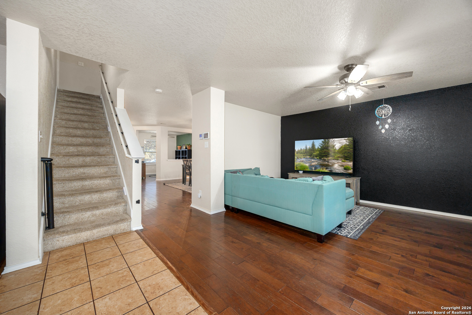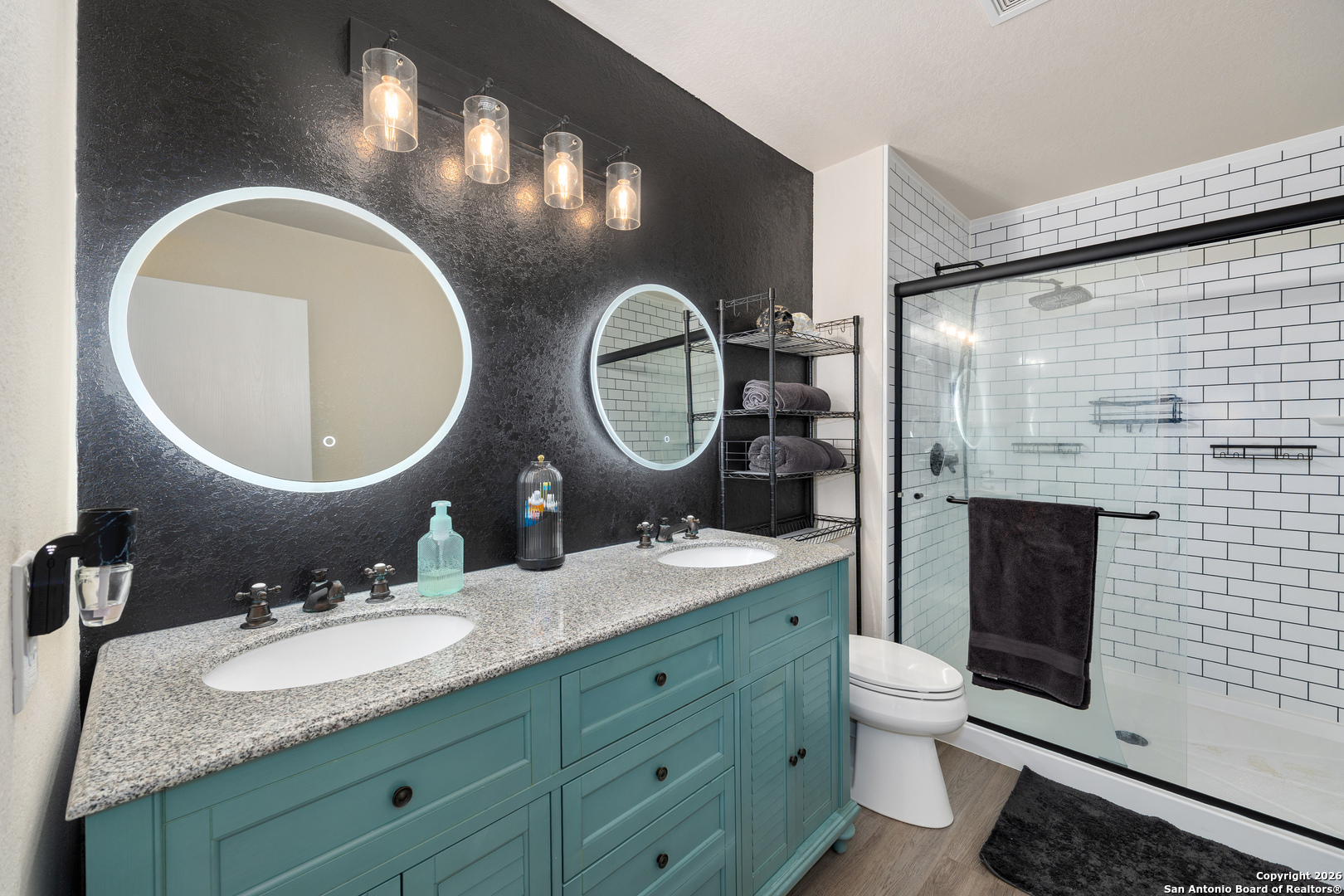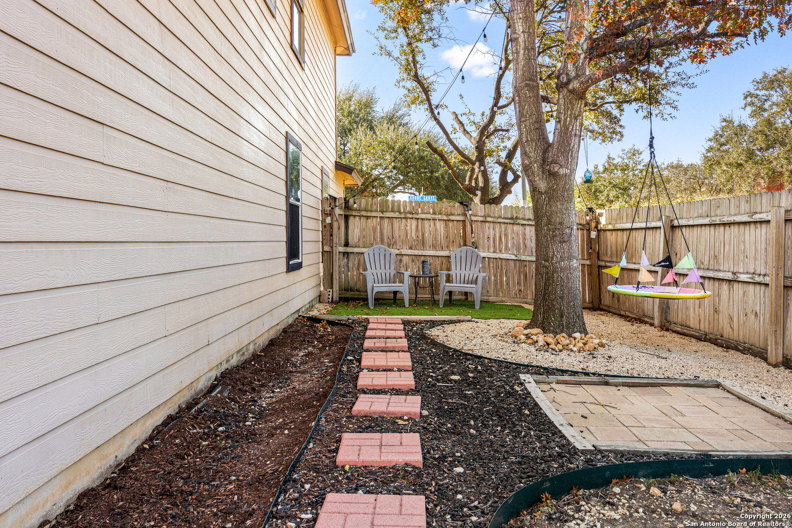 This lovely two-story home with many updates, is located in the community of Bristol Forest and situated on a corner lot. The layout offers a comfortable flow, with the living room opening directly into the kitchen, making everyday living and entertaining easy. The island kitchen features a breakfast bar, decorative lighting, a black sink, stainless steel appliances, and convenient access to the patio. A formal dining room provides additional space for meals or gatherings, while a dedicated home office offers flexibility for work or hobbies. All bedrooms are located upstairs, including the primary bedroom with large windows that fill the space with natural light. The primary bathroom includes a spacious walk-in shower, and the secondary bedrooms are well sized. An upstairs laundry room adds everyday convenience. The backyard is designed for both relaxation and functionality, featuring a covered patio, lawn area, pavers, and a privacy fence-ideal for enjoying time outdoors. Recent updates include a freshly painted interior, upgraded bathrooms, new ceiling fans, backyard pavers, and new AC/central units with a warranty. The home is conveniently located near I-35 and Loop 410, with easy access to Takas Park, Windcrest City Park, shopping, dining, and more. Schedule your personal tour today, and make this your next home!