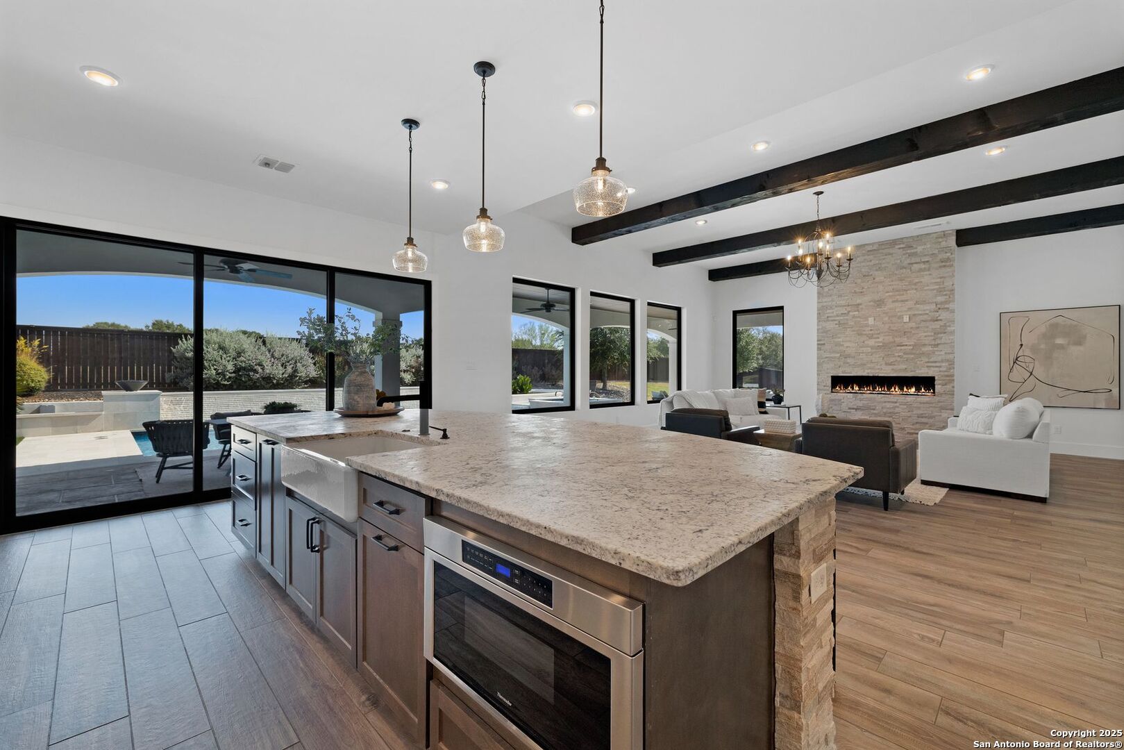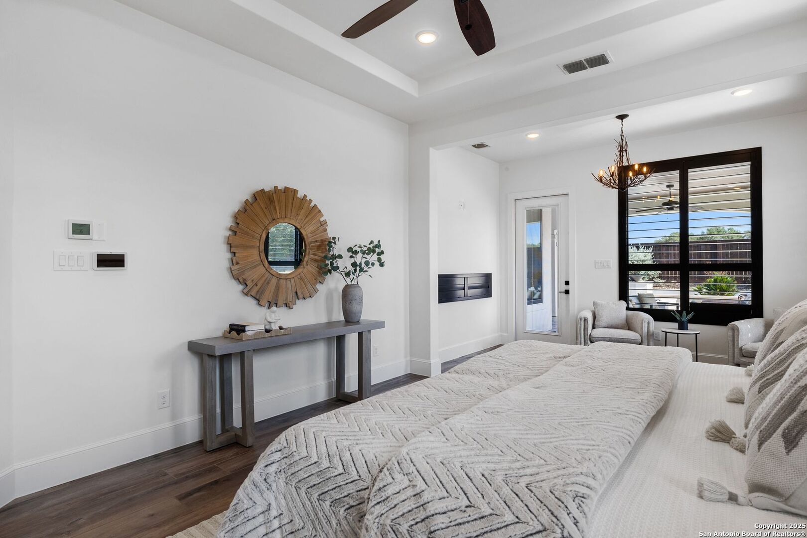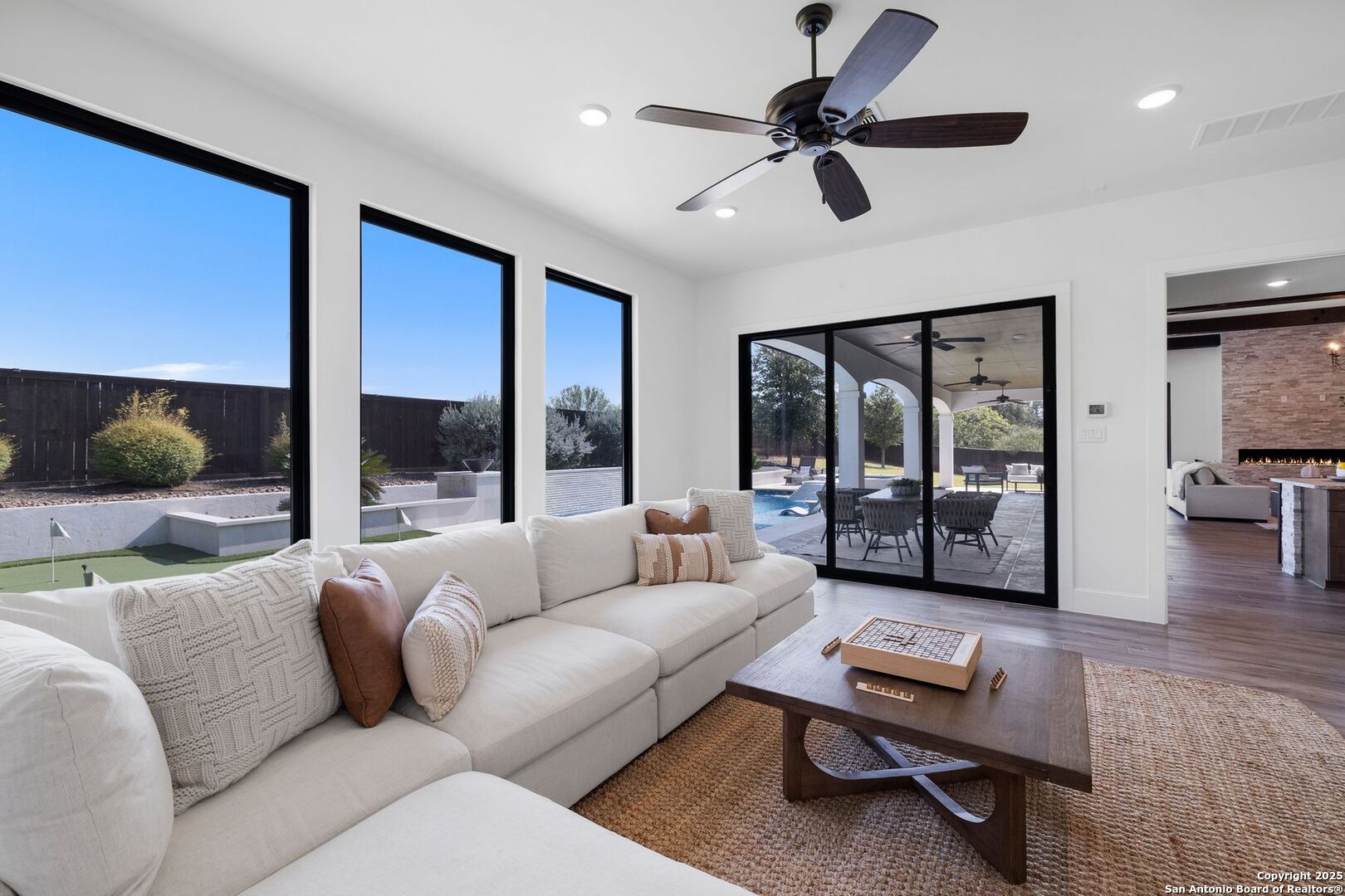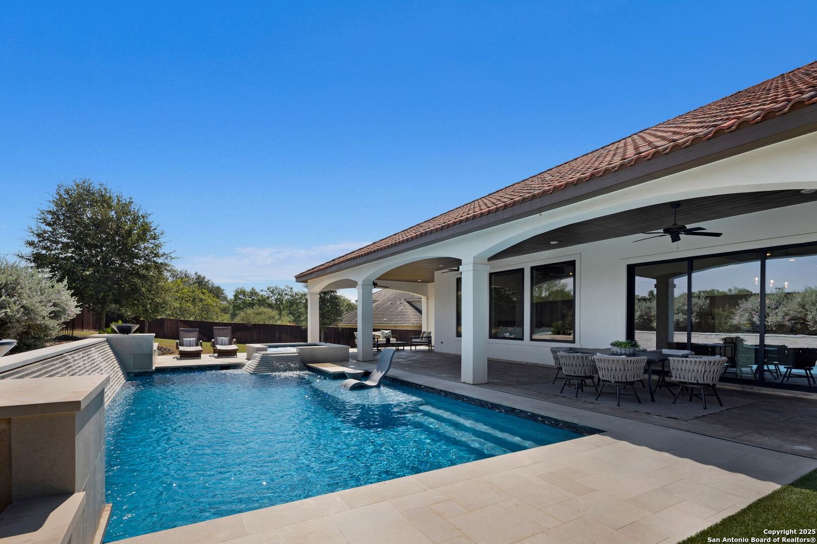 Nestled on a private cul-de-sac within the prestigious Waters at Deerfield community. This refined 3-bedroom, 3.5-bathroom home showcases sophisticated design and spacious living. The grand living room features soaring ceilings and abundant natural light, while the generously sized game room provides the ideal space for entertaining or relaxing. A gourmet chef's kitchen anchors the home, seamlessly integrating with the main living areas to create an open and inviting floor plan-perfect for both everyday living and hosting guests. The kitchen is fully outfitted with premium Sub-Zero, Thermador, and Thor appliances. Custom cabinetry, leathered granite countertops, and an oversized island complete the space, making it as functional as it is beautiful. The open-concept layout seamlessly connects the kitchen to the main living areas, creating an inviting atmosphere perfect for gatherings. The luxurious primary suite is a true retreat, featuring a spacious bedroom and a spa-inspired en-suite bath with premium finishes. The oversized walk-in closet offers abundant storage and is thoughtfully designed with a stackable washer and dryer hookup-a rare and convenient feature that enhances everyday ease. Step outside to your private backyard retreat, complete with a custom Keith Zars pool and direct access to the scenic community park. With no rear neighbors, the setting offers unparalleled privacy and tranquility. Positioned on a premium lot within the highly acclaimed North East Independent School District (NEISD), this home delivers the ultimate in luxury and convenience-just minutes from top-rated schools, shopping, dining, and major highways. Don't miss this exceptional opportunity to own a nearly new home in Waters at Deerfield. A rare blend of luxury, location, and lifestyle awaits.