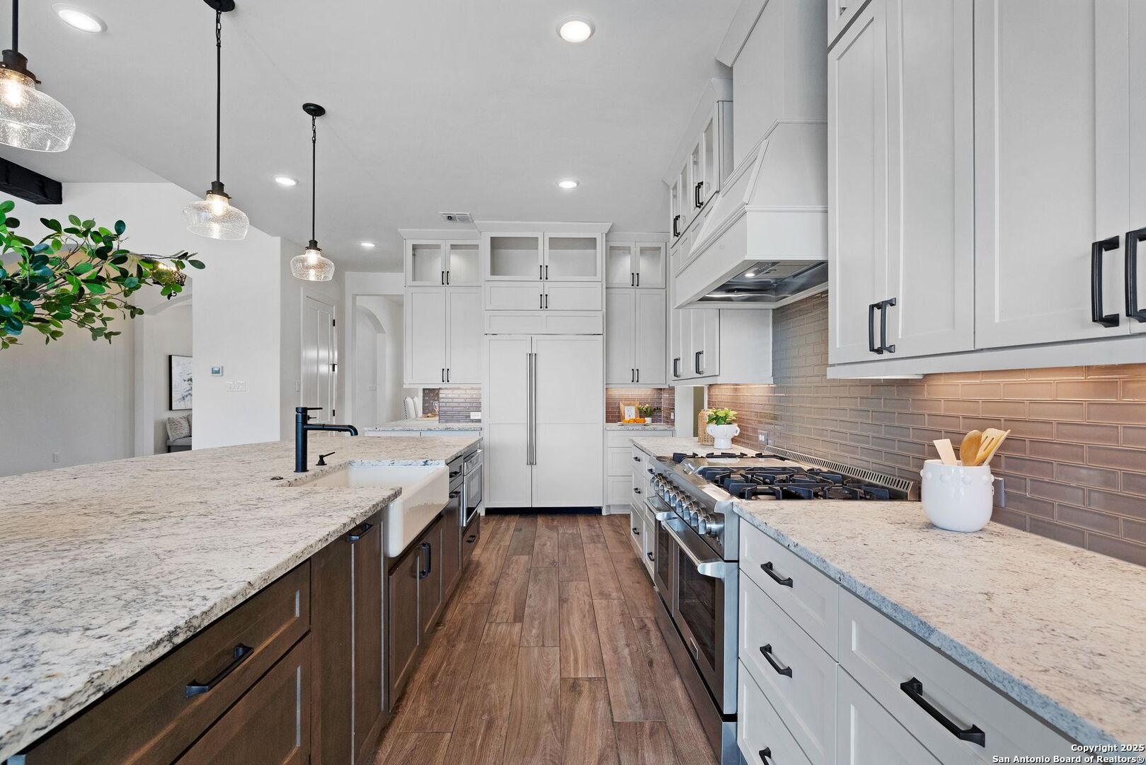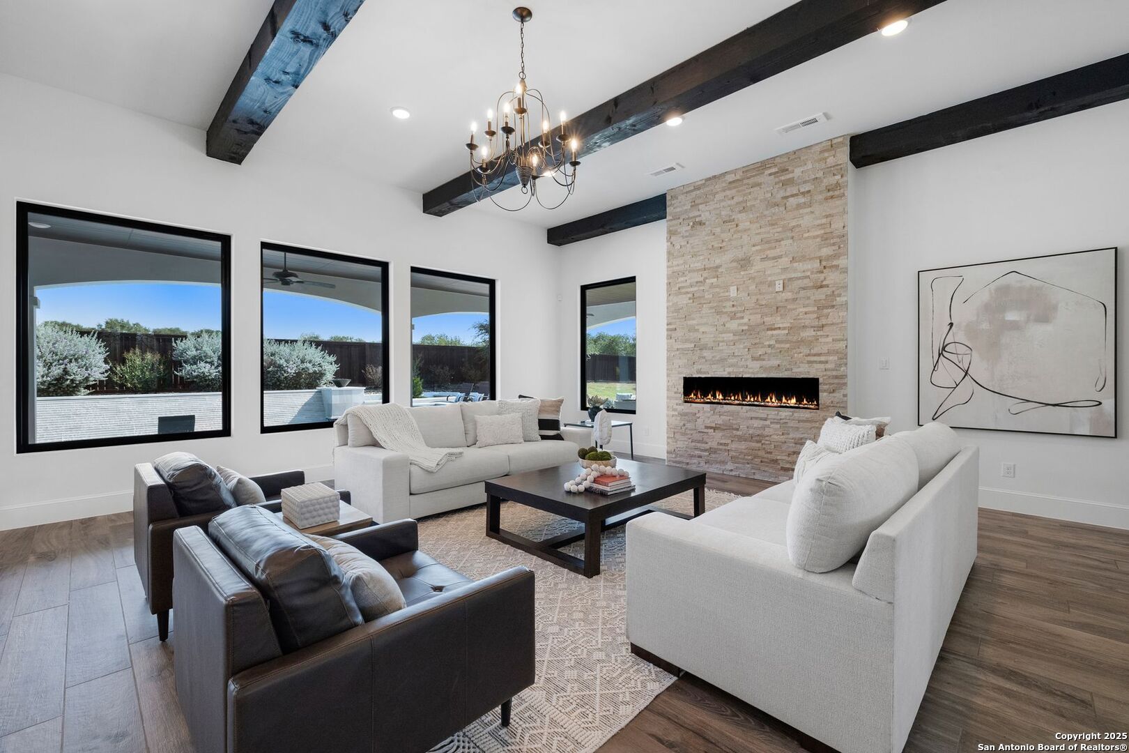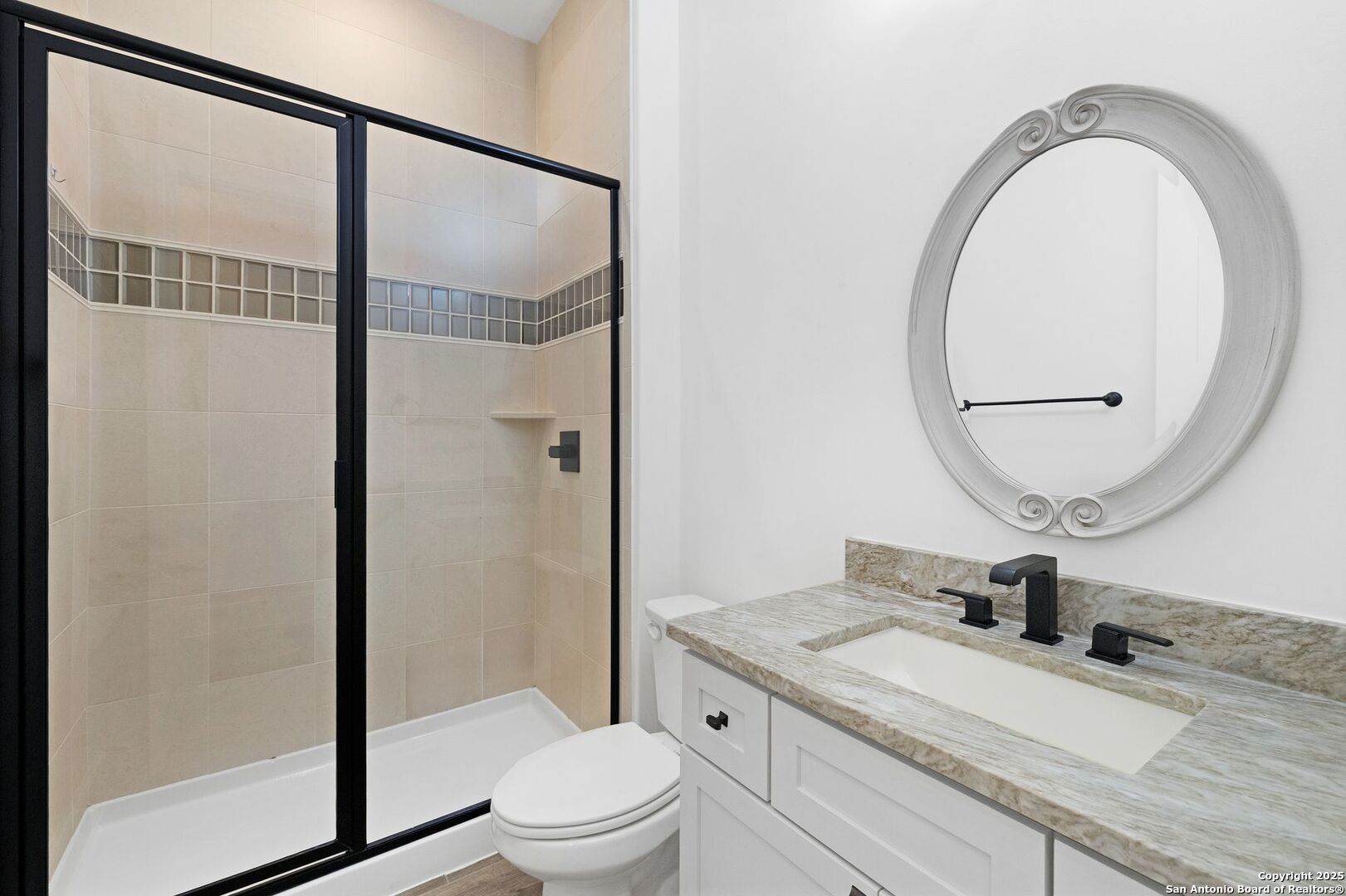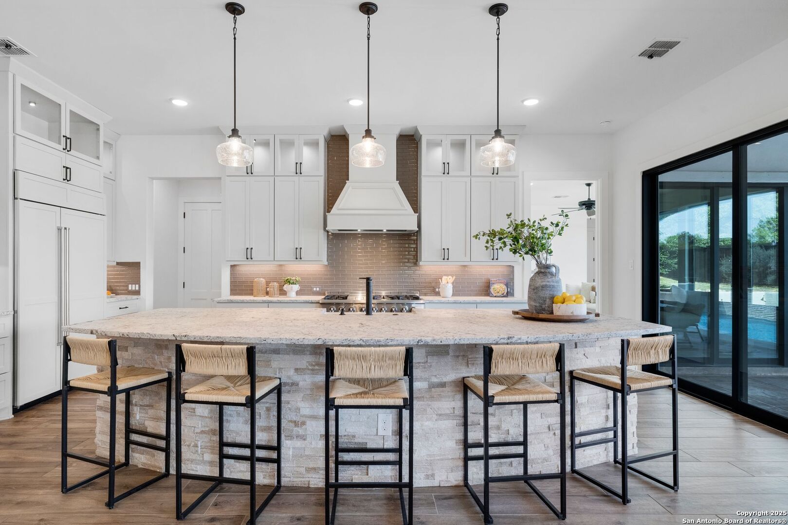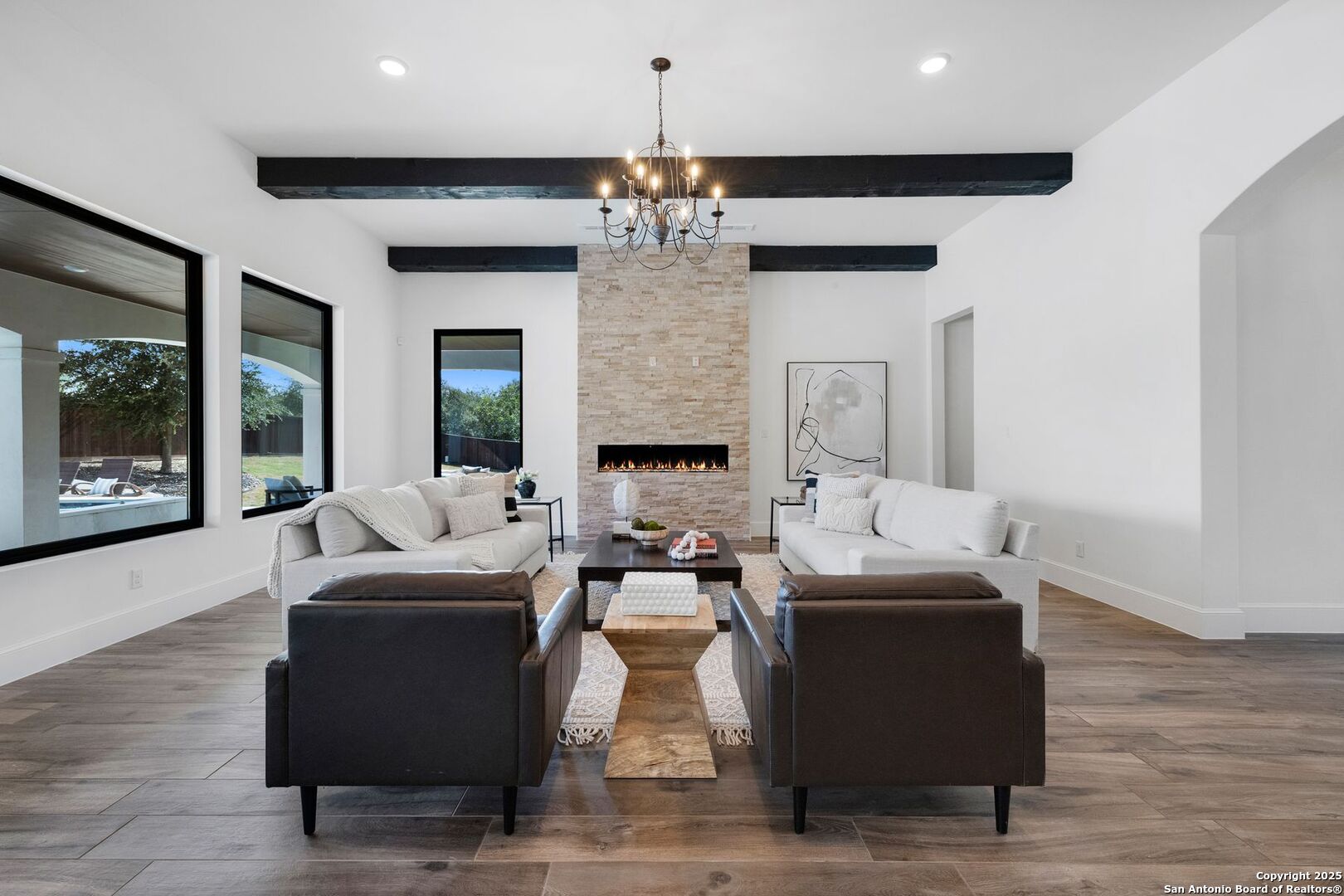 Nestled on a private cul-de-sac within the prestigious Waters at Deerfield community. This refined 3-bedroom, 3.5-bathroom home showcases sophisticated design and spacious living. The grand living room features soaring ceilings and abundant natural light, while the generously sized game room provides the ideal space for entertaining or relaxing. A gourmet chef's kitchen anchors the home, seamlessly integrating with the main living areas to create an open and inviting floor plan-perfect for both everyday living and hosting guests. The kitchen is fully outfitted with premium Sub-Zero, Thermador, and Thor appliances. Custom cabinetry, leathered granite countertops, and an oversized island complete the space, making it as functional as it is beautiful. The open-concept layout seamlessly connects the kitchen to the main living areas, creating an inviting atmosphere perfect for gatherings. The luxurious primary suite is a true retreat, featuring a spacious bedroom and a spa-inspired en-suite bath with premium finishes. The oversized walk-in closet offers abundant storage and is thoughtfully designed with a stackable washer and dryer hookup-a rare and convenient feature that enhances everyday ease. Step outside to your private backyard retreat, complete with a custom Keith Zars pool and direct access to the scenic community park. With no rear neighbors, the setting offers unparalleled privacy and tranquility. Positioned on a premium lot within the highly acclaimed North East Independent School District (NEISD), this home delivers the ultimate in luxury and convenience-just minutes from top-rated schools, shopping, dining, and major highways. Don't miss this exceptional opportunity to own a nearly new home in Waters at Deerfield. A rare blend of luxury, location, and lifestyle awaits.