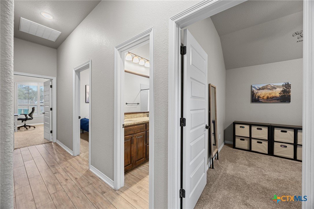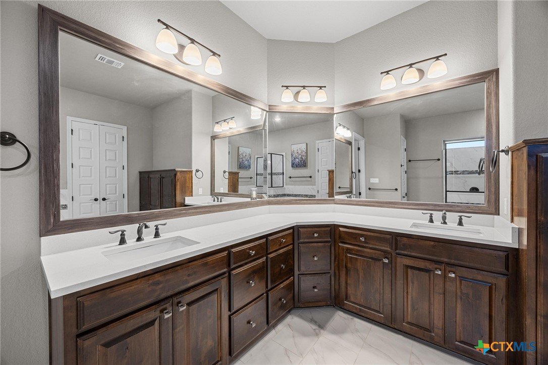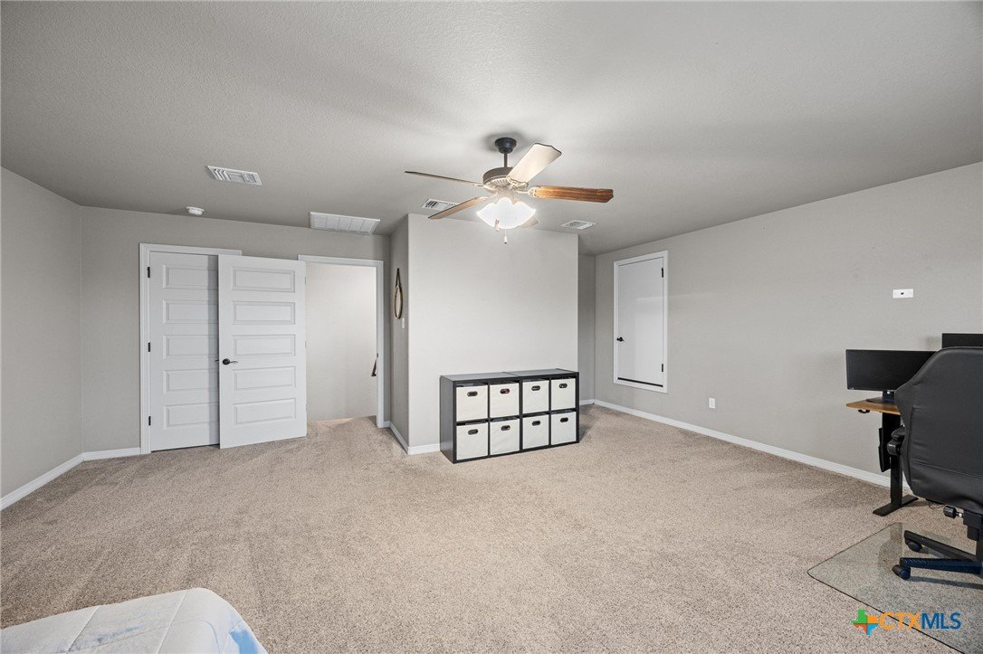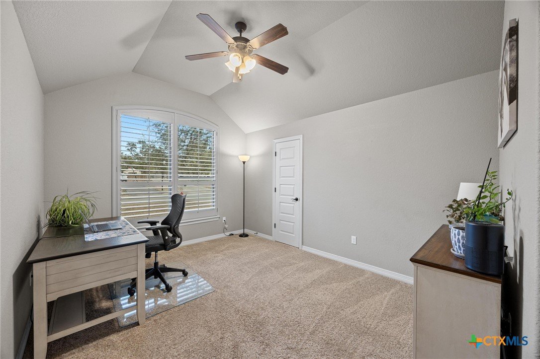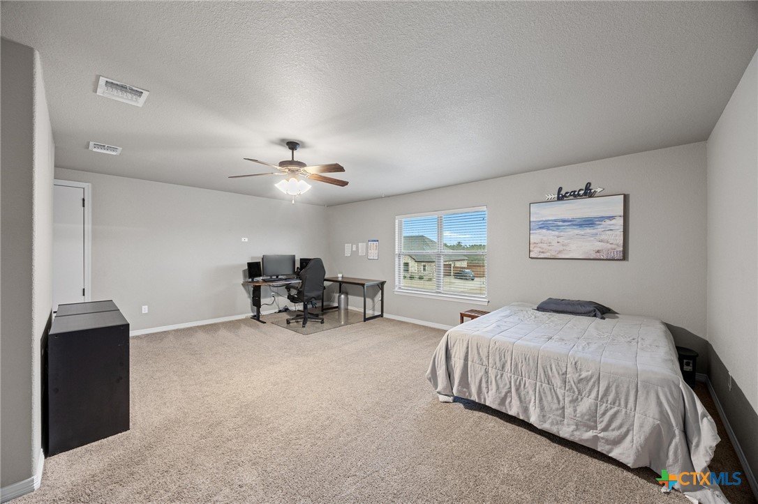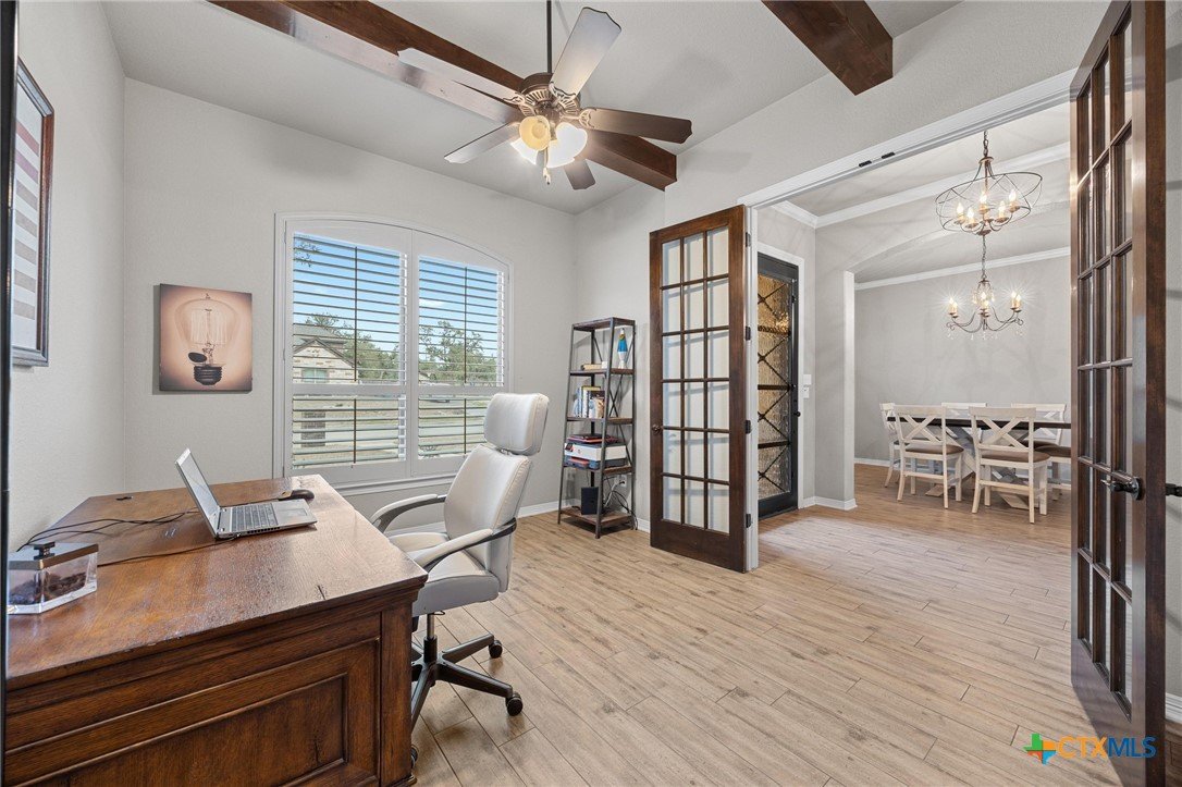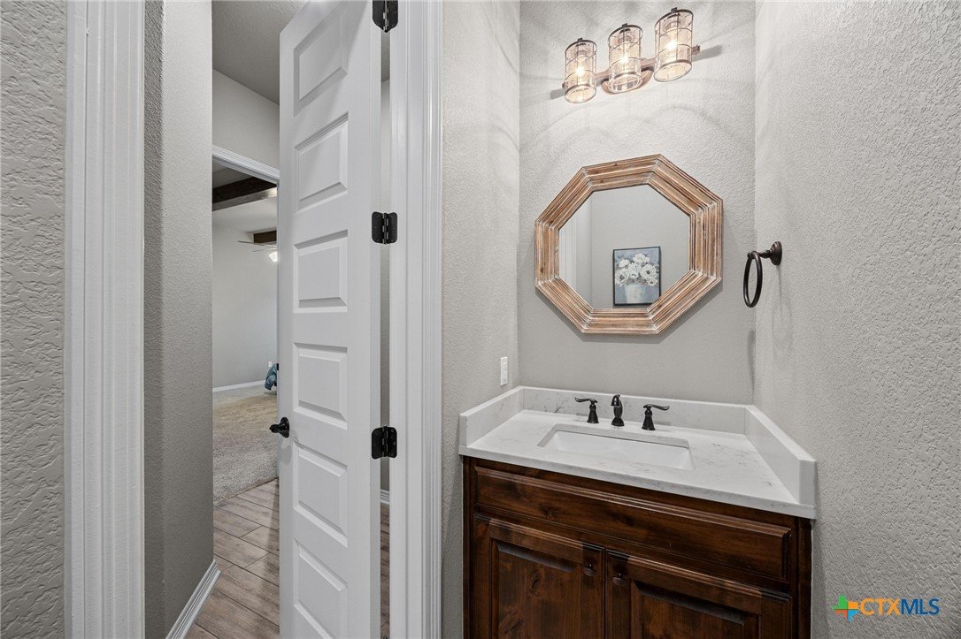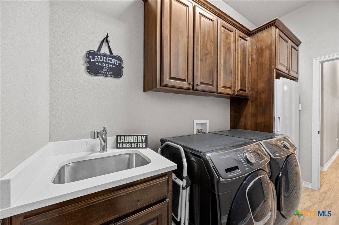 Welcome to your dream home! This stunning 5-bedroom, 3.5-bath house is a head-turner with its charming stone exterior and immense, towering oak trees adorning the entry. The modern interior boasts wood-like plank tile throughout, complemented by elegant plantation shutters. The ornate tray ceiling, graced with beautifully vaulted beams in the living room, creates an atmospheric setting for the limestone fireplace that serves as the room's stunning focal point. Large picture windows bathe the expansive open-layout living room in delightful natural light. The enticing chef's kitchen with a large island at its heart is perfect for honing your culinary skills or entertaining guests. The master bedroom is a true sanctuary, featuring a luxurious garden tub and convenient walk-in shower. Step outside and you will find an inviting outdoor living area; a large extended patio with its own stone fireplace. The expansive backyard provides ample space for all your outdoor endeavors. Just a short walk to the neighborhood pond/lake, walking trail, with convenient access to the lake Belton, shopping, and more!