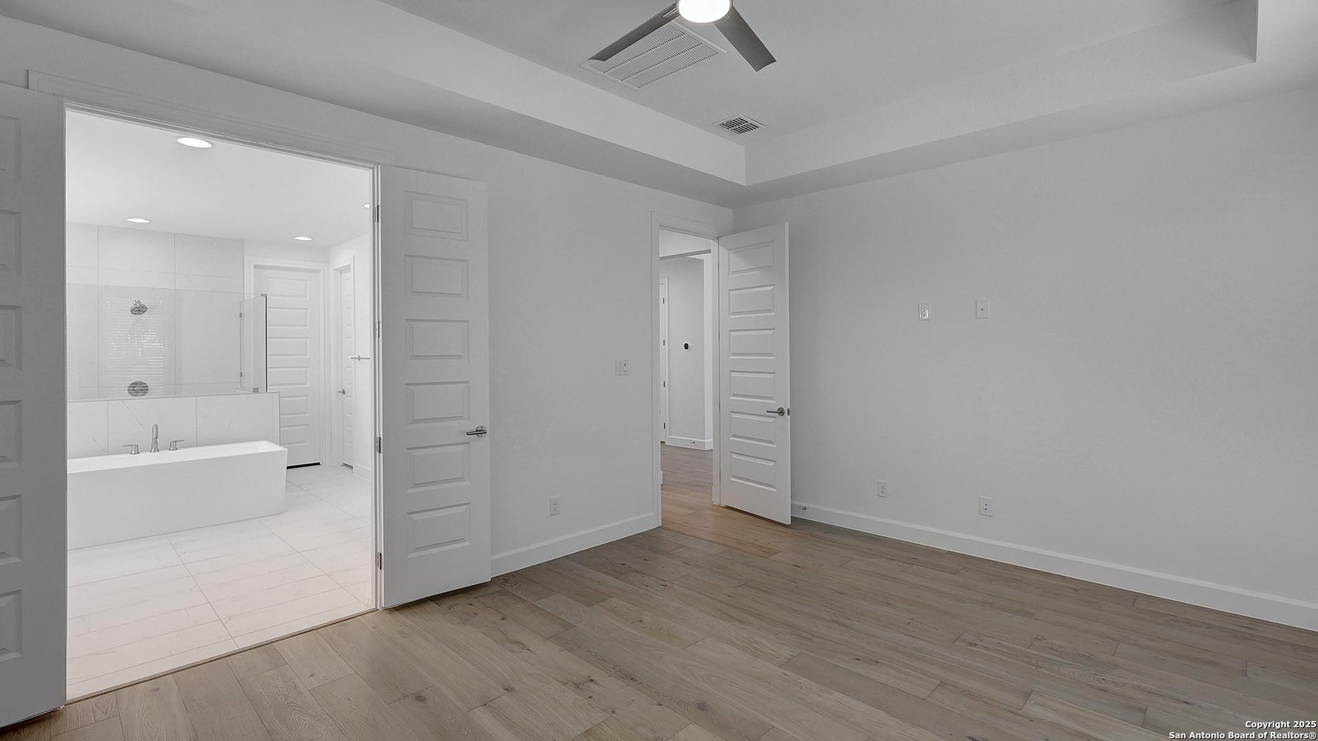READY FOR MOVE-IN! Two-story entry framed by home office with French door entry, formal dining room and a grand circular staircase. Hardwood floors throughout living areas. Formal dining room leads past the butler's pantry to the kitchen area. Spacious two-story family room with 19-foot ceiling, wood mantel fireplace and a sliding glass door. Island kitchen with built-in seating space, double wall oven and walk-in pantry opens to morning area. Generous primary bedroom with a wall of windows. Primary bath with double door entry has dual vanities, freestanding tub, glass enclosed shower, two large walk-in closets and additional access to the utility room. Private guest suite with walk-in closet and full bathroom just off morning area. Game room with French doors and media room both with 10-foot ceilings, secondary bedrooms and Hollywood bath located upstairs. Extended covered backyard patio. Mud room just off the three-car garage.