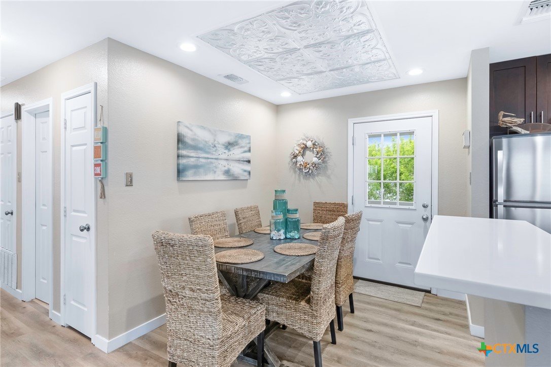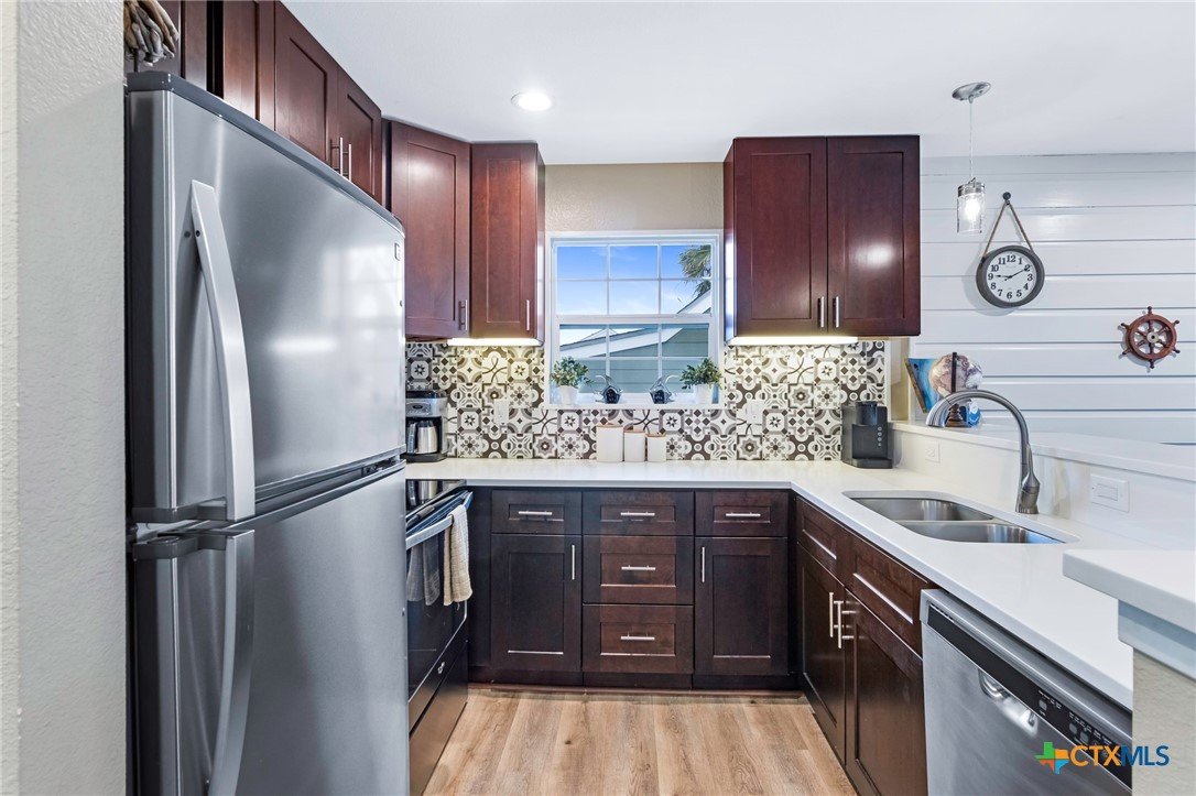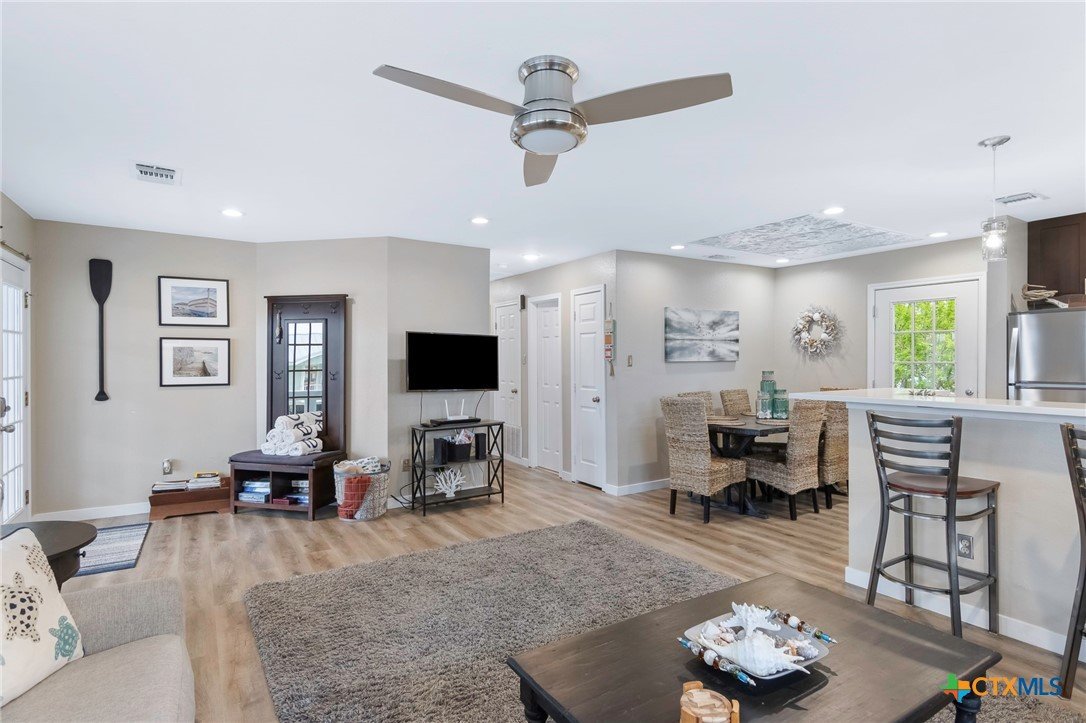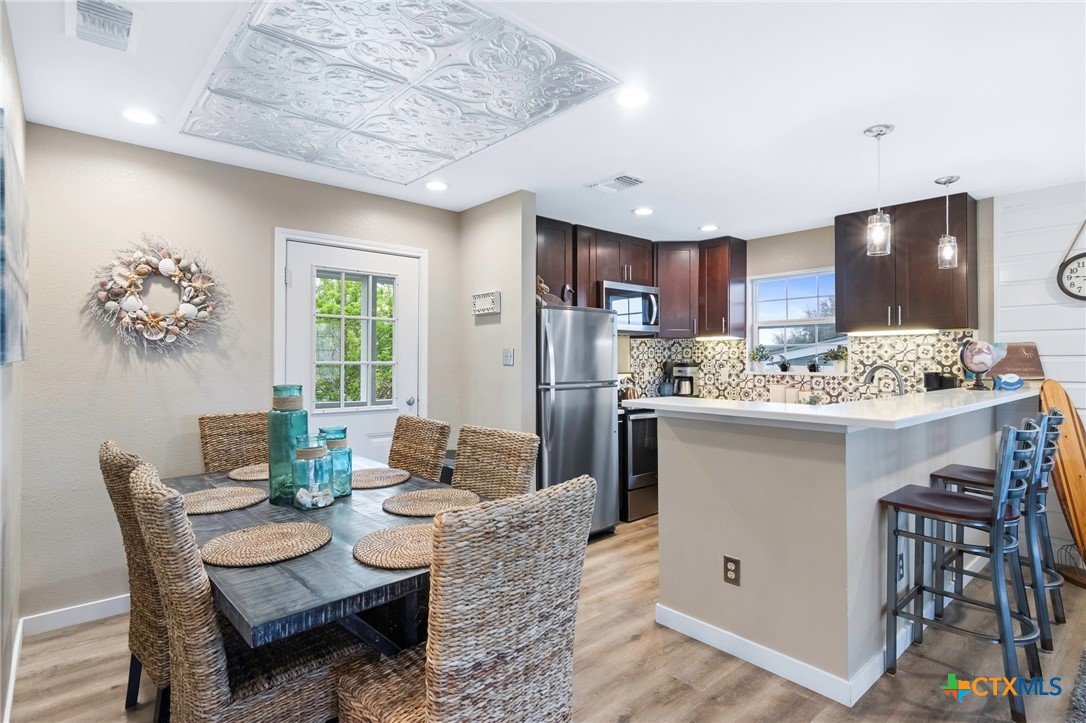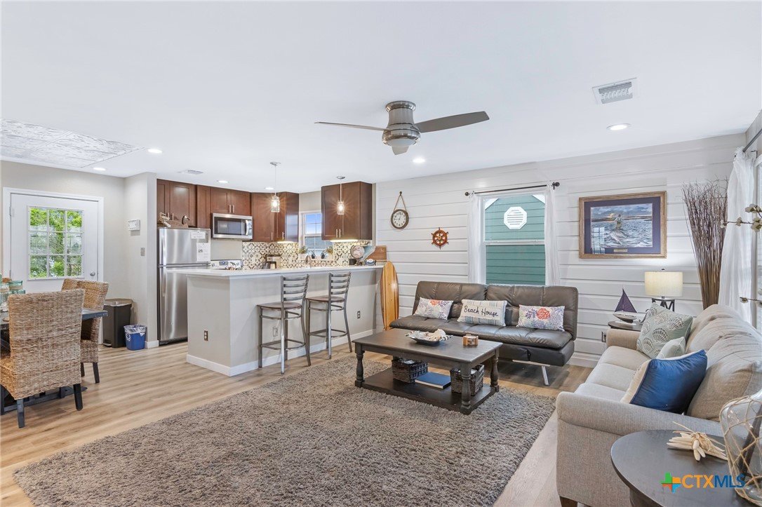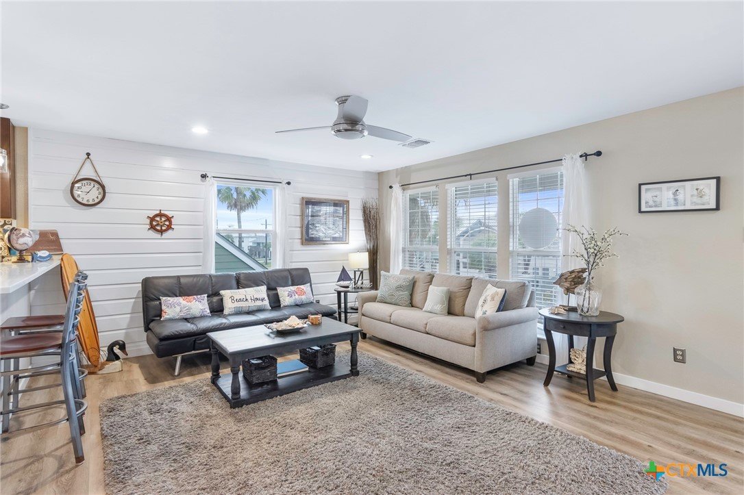 Welcome to your perfect island getaway! This lovely Key Allegro home offers 2 bedrooms/2 bathrooms and an open concept design with coastal charm throughout. Enjoy the breezy front and back decks, perfect for morning coffee or evening relaxation. Situated on a nice-sized lot, this home features entertainment space underneath, complete with storage-ideal for gatherings, cookouts, or simply unwinding after a day on the water. Upgrades include stainless steel appliances, quartz countertops, wood look plank flooring, and stylish shiplap accents. Sold fully furnished, this home is move-in or rental-ready. Enjoy the beautiful community pool on those fun summer days! Get ready to hop in your golf cart and experience all that Key Allegro has to offer!
