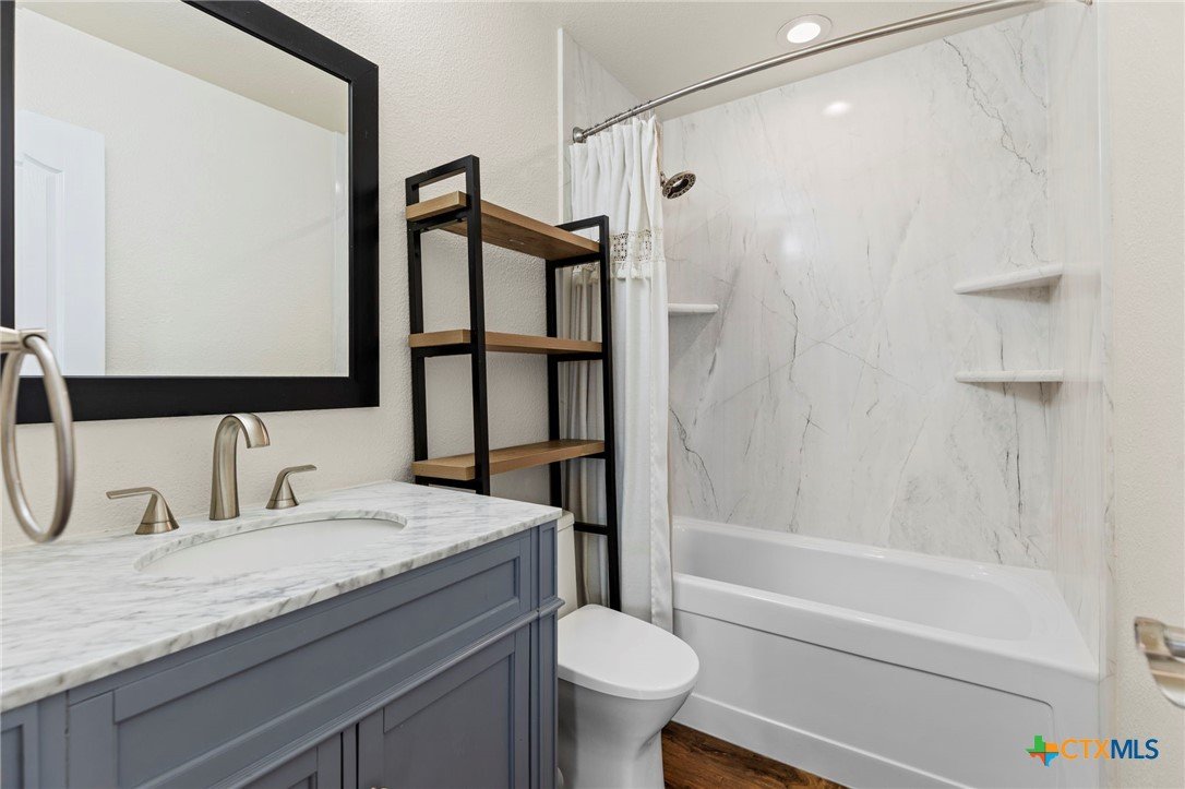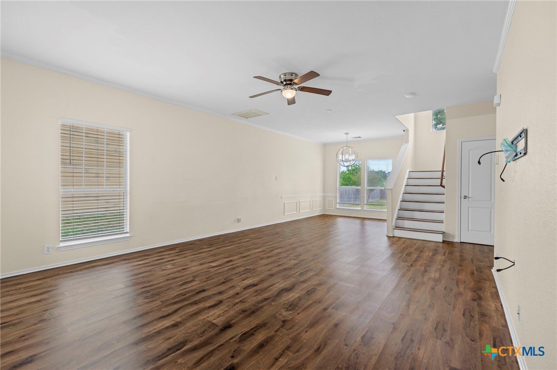 Mature trees and a welcoming front porch set the tone for this bright and open 3-bedroom home in Saddle Creek Ranch. Inside, you’ll find updated vinyl laminate flooring throughout (no carpet anywhere) creating a clean, modern feel and easy maintenance. The island kitchen is both functional and stylish, featuring updated countertops, stainless steel appliances, and plenty of cabinet and prep space. Upstairs offers a spacious primary suite with an updated bath and a large walk-in closet, along with a versatile loft space and two generously sized secondary bedrooms. Step outside to enjoy a sizable backyard with a covered patio, backing to a greenbelt for added privacy and no rear neighbors. Located in the highly regarded Schertz-Cibolo-Universal City ISD, Saddle Creek Ranch also offers neighborhood amenities including a pool, park, and playground, with convenient access to local military bases, shopping, and dining. Move-in ready and waiting—schedule your showing today!