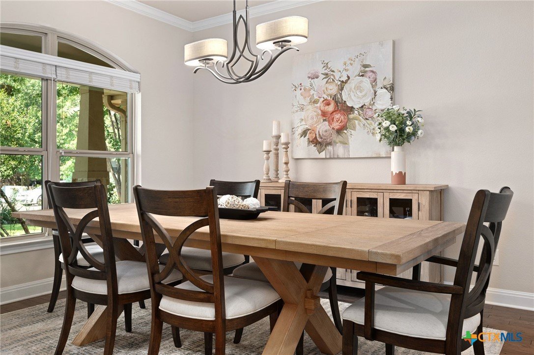 Elegant and inviting, this Berry Creek residence showcases an expansive open floor plan accented by rich hardwoodfloors, crown molding, and graceful archways. A chef’s kitchen offers granite counters, travertine backsplash, stainless appliances, gas cooktop, and a generous breakfast bar overlooking the living room with its striking floor-to-ceiling stone fireplace. The primary suite is a private retreat with spa-inspired bath featuring a soaking tub, walk-in shower, dual vanities, and custom walk-in closet. Thoughtfully designed with 4 bedrooms and 3 full baths in a split-wing layout for privacy. Outdoor living includes dual covered patios, lush lawn, and landscaped gardens. Enhanced by a tankless water heater, water softener, and buried propane tank. Mandatory monthly deed fee $195.11