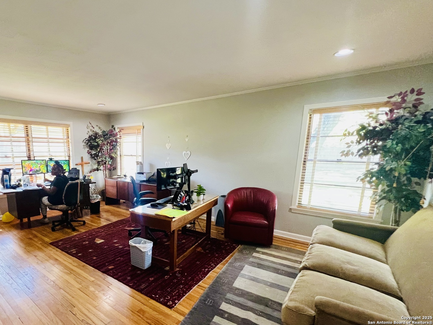 Located on Nacogdoches near MacArthur View, this unique property offers a rare chance to own a spacious single-family home that has been thoughtfully converted into a law office. It provides the perfect balance of professional space and residential character in a tranquil setting. PROPERTY HIGHLIGHTS: *Functional Layout: Waiting room, reception area, conference room, and 5 oversized offices. *Interior Finishes: Hardwood and tile floors throughout. *Amenities: Kitchen/break room, IT room, 4 bathrooms, attached apartment, shed & 2-car garage. *Parking & Access: Circular driveway and 12+ parking spaces for staff and clients. *Security: Fenced lot and modern security system in place. *Zoning: R-20CD - Conditional Use ASKING SALES PRICE: $725,000