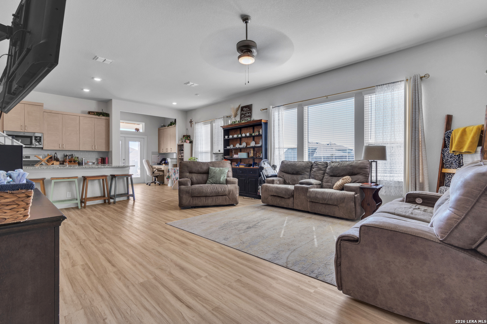 Stunning 5-Bedroom, 2.5-Bath Home (one room that can be an office) and Fantastic Outdoor Features in a Prime Neighborhood! This gorgeous 5-bedroom, 2.5-bathroom residence offers 2,480 sqft of spacious living. The open-concept design seamlessly blends comfort and style, while the large windows throughout let in plenty of natural light. Step outside to your beautifully landscaped backyard, ideal for entertaining or unwinding. Enjoy morning coffee or evening sunsets on the covered upstairs deck or porch! The garage is also climate controlled leading to a finished shed in the backyard for additional storage! This home is nestled in a neighborhood that offers exceptional amenities, including three serene ponds, a catch-and-release fishing dock, a pavilion for gatherings, nature trails for peaceful walks, a dog park for your furry friends, and expansive open play spaces for recreation. Conveniently located near Gruene and with easy access to I-35, you'll be close to everything you need, from dining and shopping at Creekside as well as access to outdoor activities. Don't miss out on this incredible home with so much to offer. Schedule a tour today!