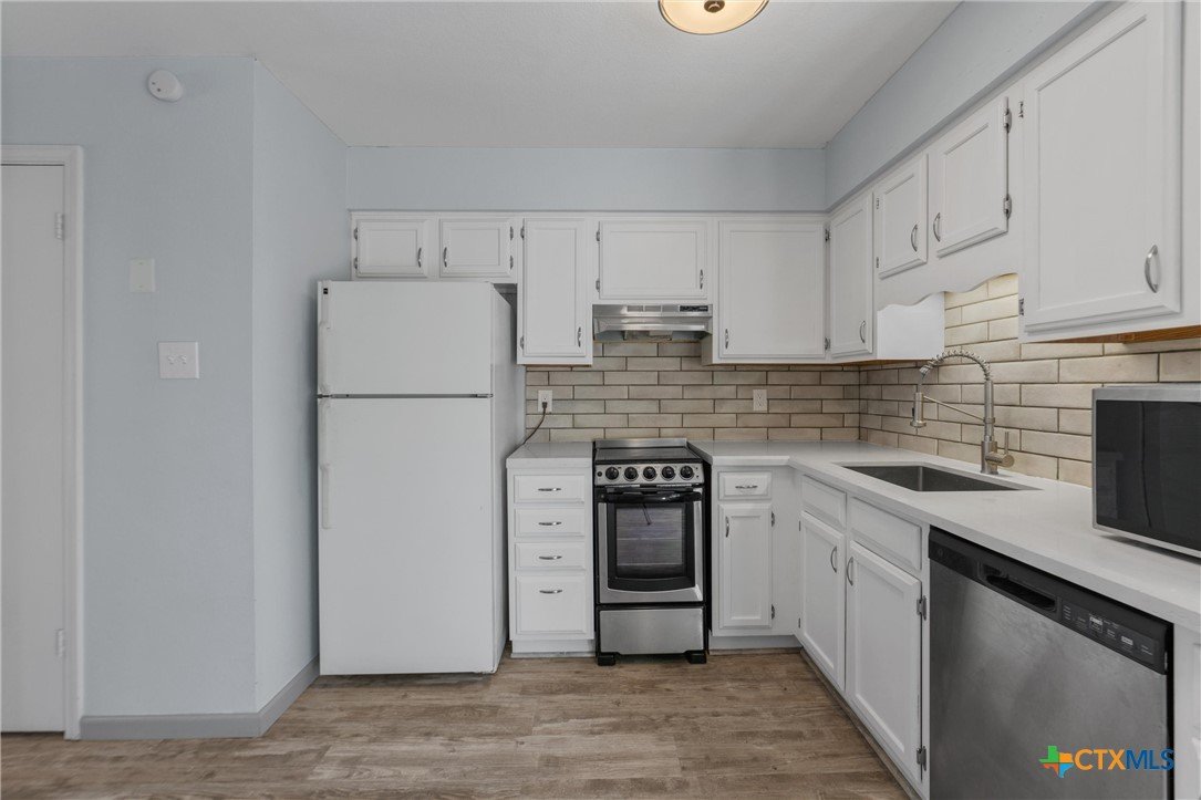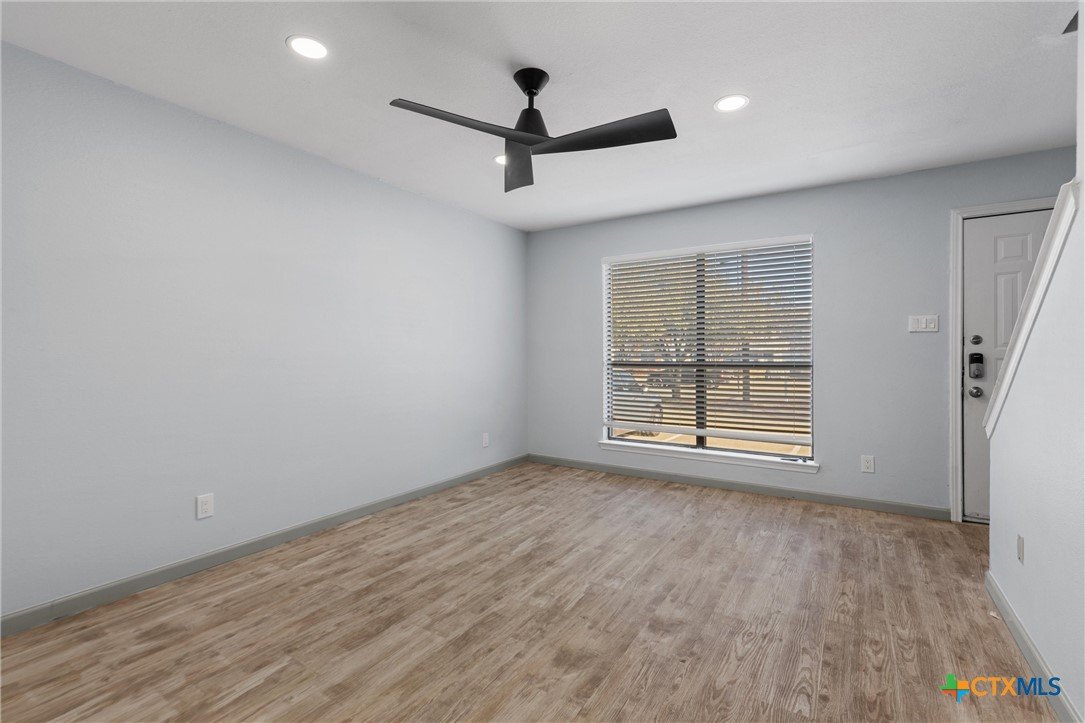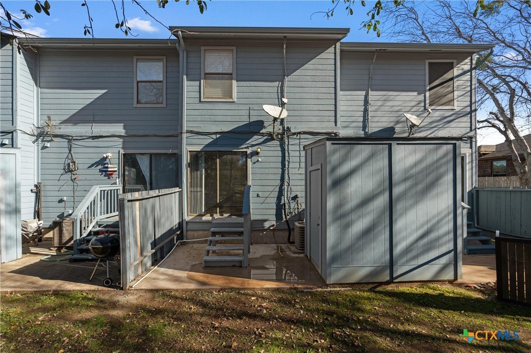 ~ OPEN HOUSE 2/15, 12-2pm ~ Discover this charming condo located in a desirable area of North Georgetown. This home features 2 bedrooms, 1.5 baths, and a spacious living room perfect for relaxing or entertaining. The updated kitchen offers sleek countertops and included free standing refrigerator. Hard flooring throughout the main areas adds durability and style, with cozy carpeted stairs for comfort. Ceiling fans in the bedrooms and common areas provide added comfort, and the indoor washer/dryer offer everyday convenience. Outside, a large storage shed adds valuable extra space as well as two assigned parking spaces right outside the residence. The well-maintained community boasts a pristine roof, parking lot, and beautiful landscaping, all situated on a quiet, tree-lined street. The location is central with easy access to IH 35 and Williams Drive. And, just minutes to the Georgetown Square, restaurants, schools and shopping centers and more. This home is move-in ready, affordably priced, so schedule your showing today!