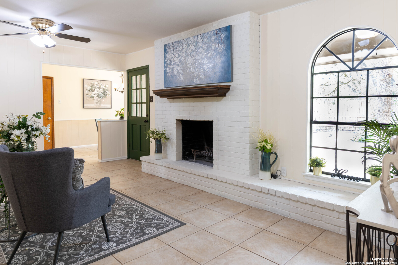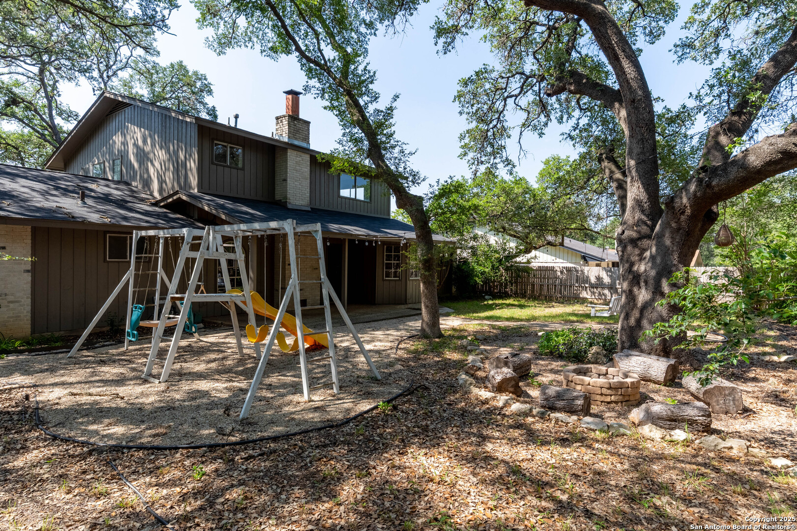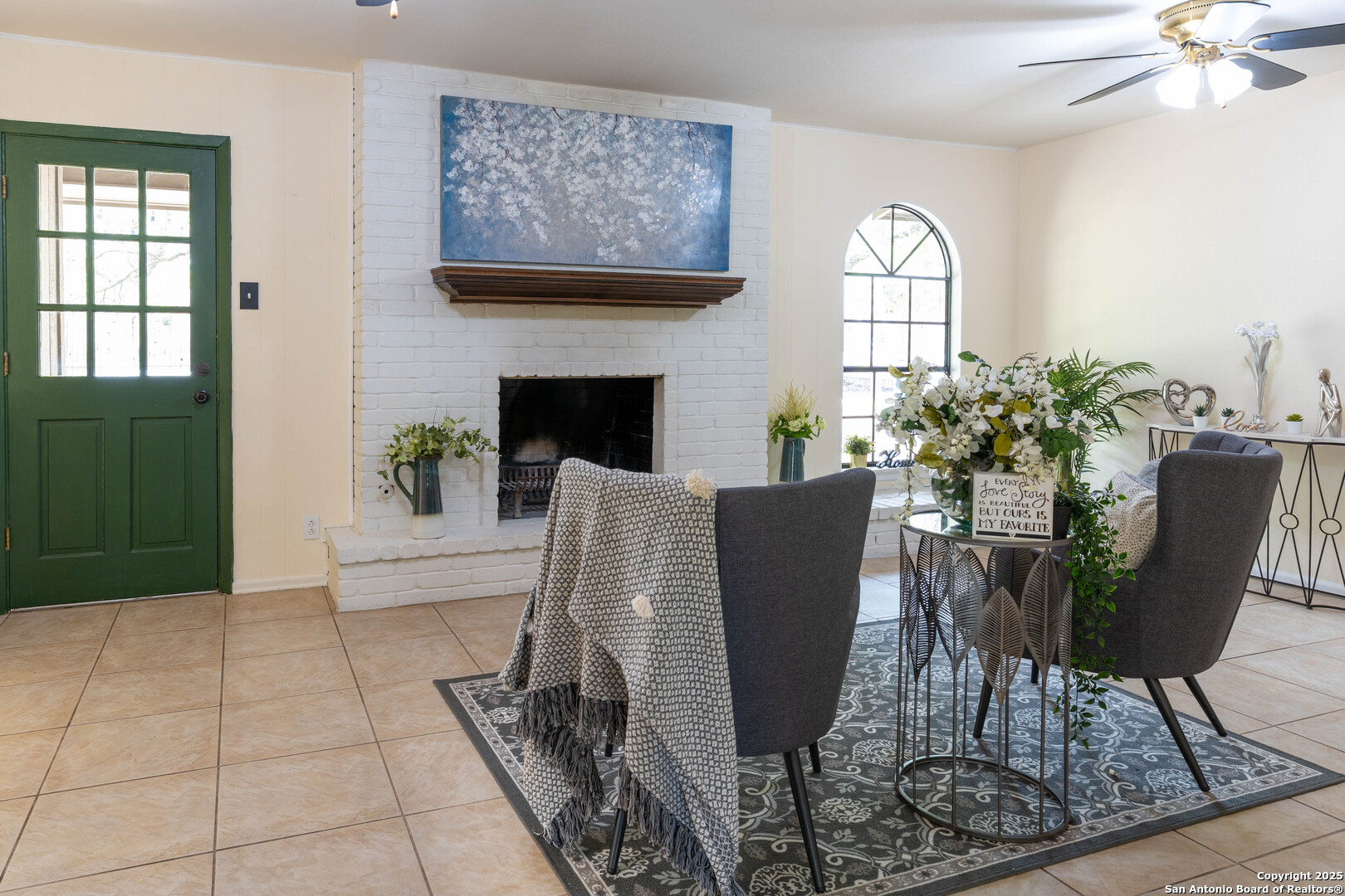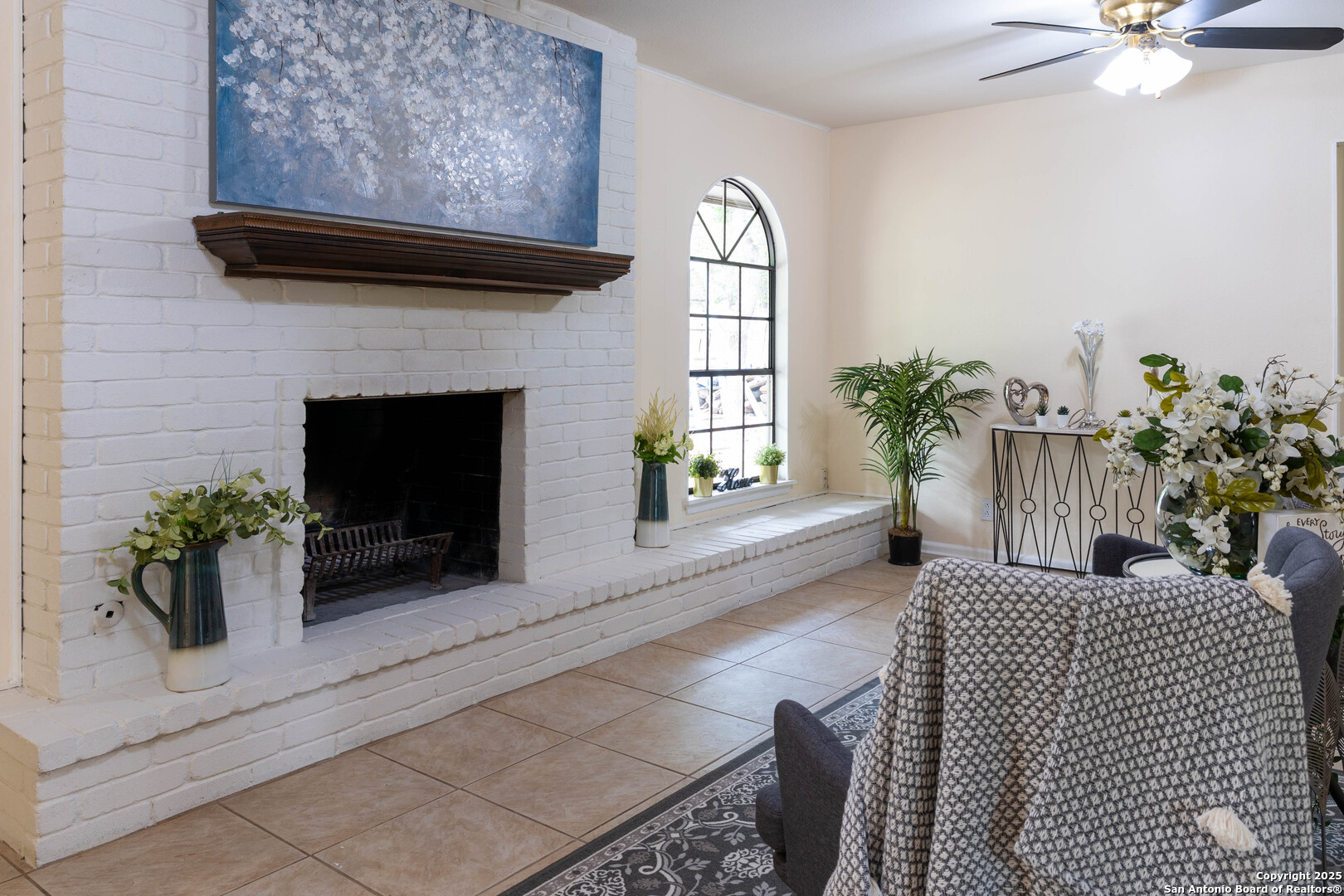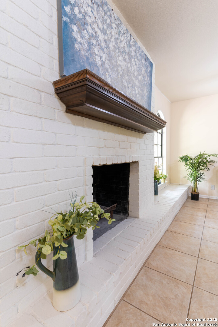 Nestled in the peaceful Charter Oaks neighborhood, this beautifully updated 4-bedroom, 3-bathroom home offers elegant curb appeal with grand arches, wrought iron railings, and mature trees framing oversized front and back yards. Inside, natural light floods the living spaces, highlighting a formal living room that doubles as a study and a striking floor-to-ceiling fireplace in the main living area. The kitchen boasts new quartz countertops, painted solid wood cabinets, and a stainless steel appliance package, while a sunny bay window breakfast nook overlooks the backyard. The spacious downstairs master suite features a designer-finished bath with a frameless glass walk-in shower. Texas-sized secondary bedrooms offer ample space and comfort. Step outside to a covered patio ideal for entertaining, and enjoy the ample parking of an oversized garage with workshop area. With over $100,000 in recent updates-including HVAC system-this home is move-in ready. Located with easy access to major highways, the Medical Center, USAA, and premier shopping and dining destinations like The Rim and The Pearl, convenience is unmatched. No HOA, and the neighborhood offers an optional pool and clubhouse membership. Don't miss the opportunity to own in one of San Antonio's most charming established communities!
