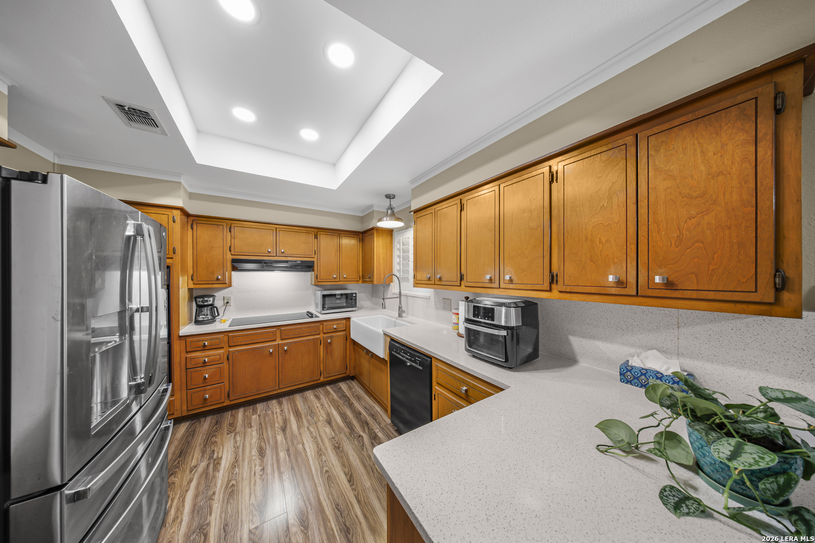 Sophisticated Garden Home conveniently located near I-10/Wurzbach, USAA, Med Center, restaurants and shopping. Open floorplan , vaulted ceilings, beautiful surfaces and updates throughout. Screened covered patio, with lush landscape and minimal maintenance. Welcome home.