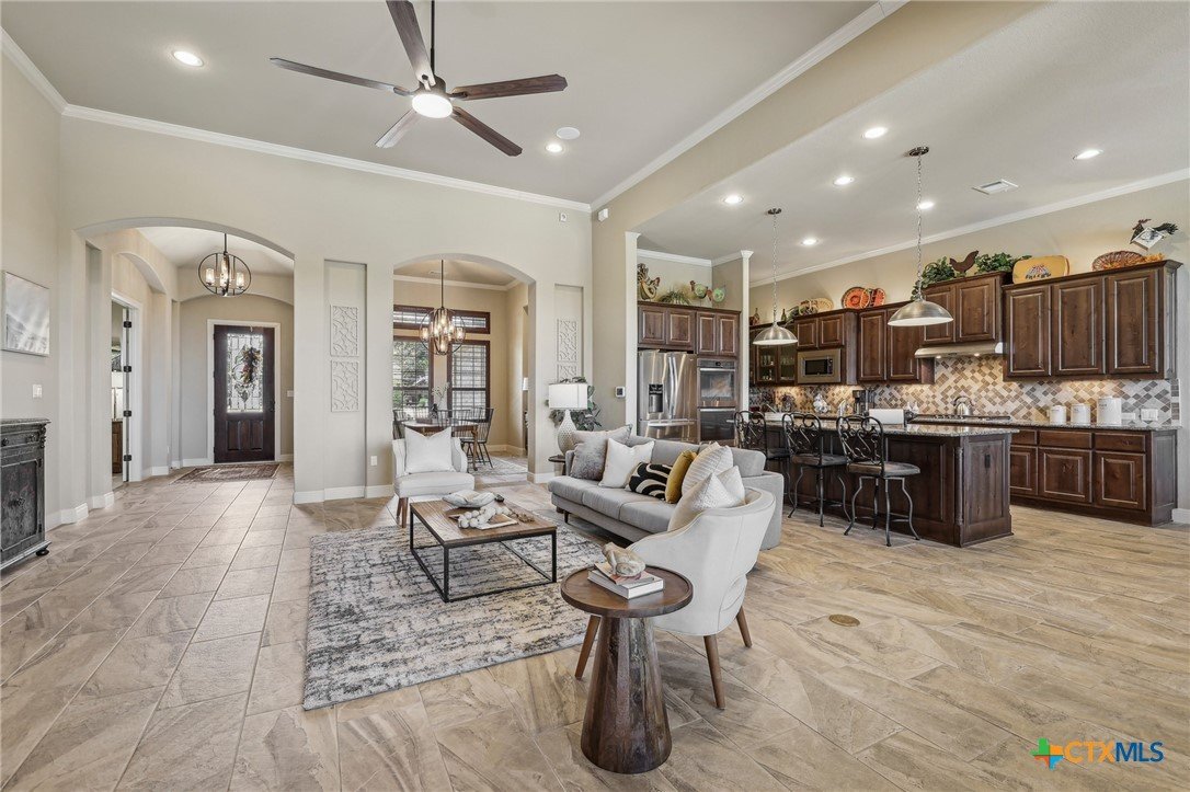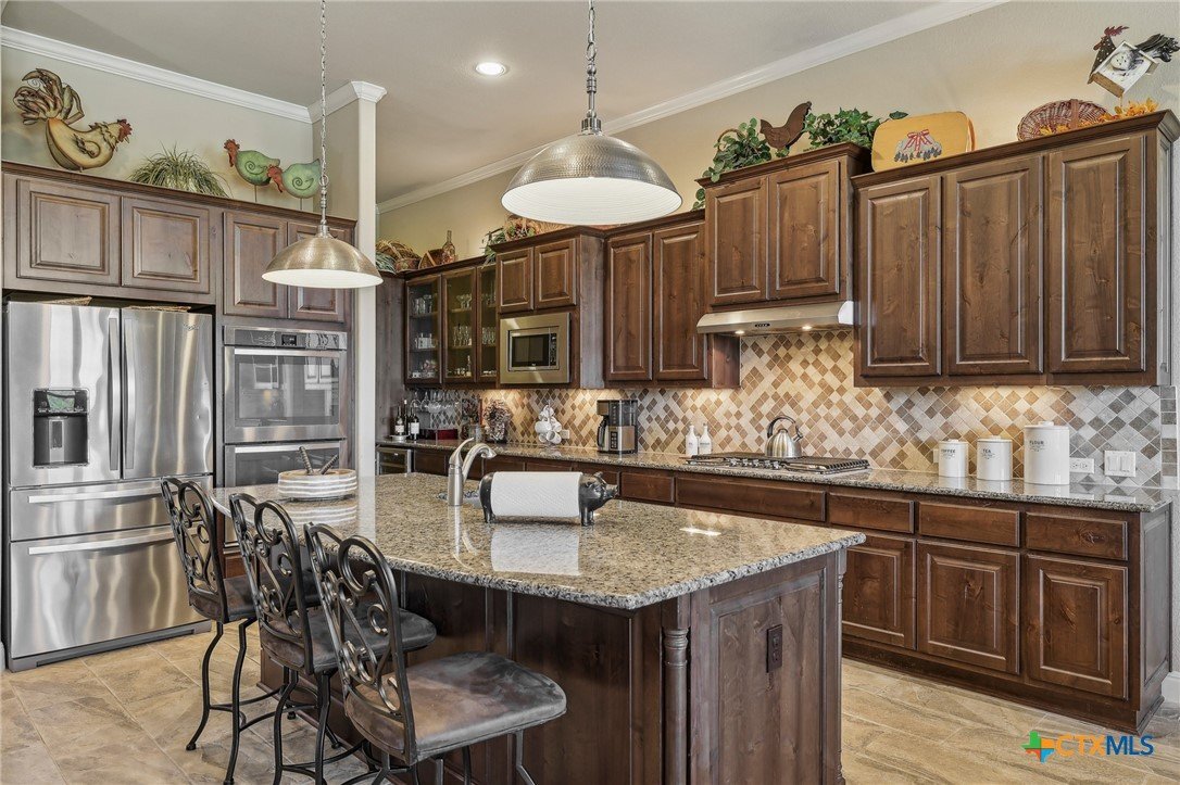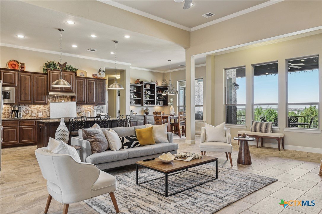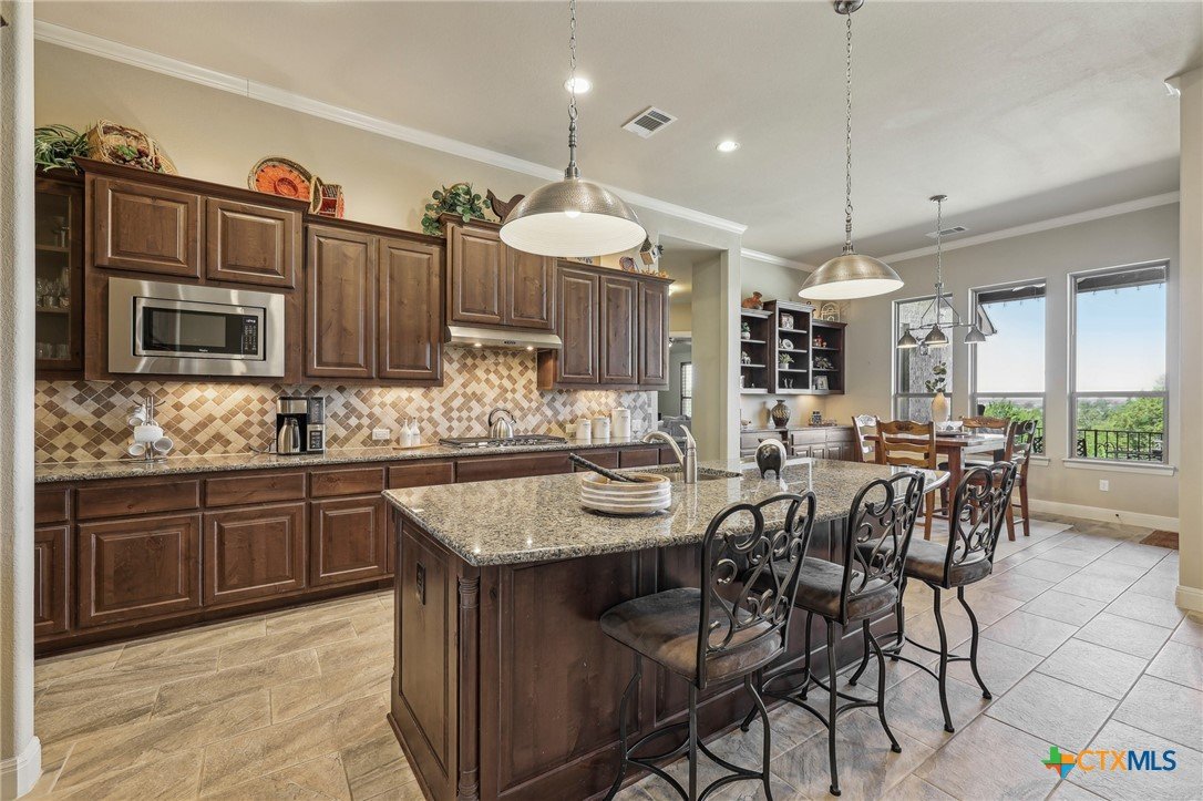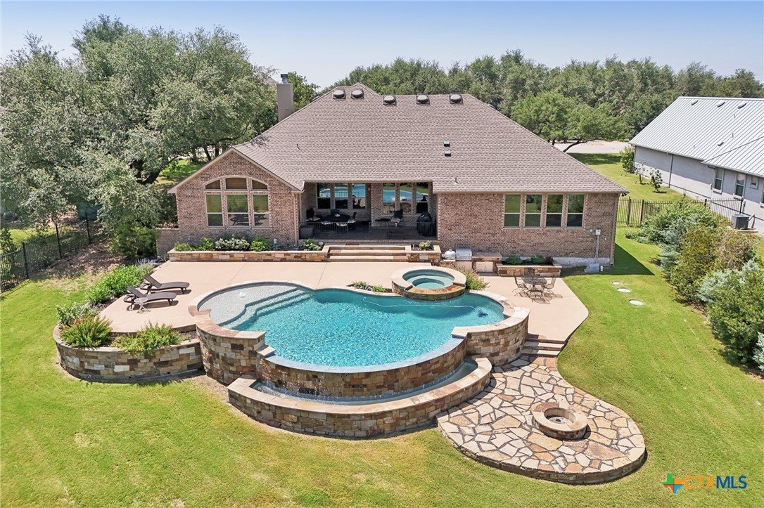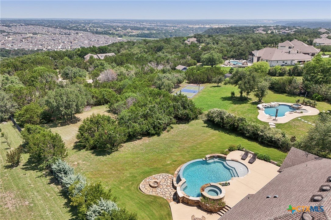 *****SELLER FINANCING AVAILABLE - inquire with listing agent for more info!****Stunning home that blends the best of city convenience with the serenity of Hill Country living. Perched on a one-acre lot at a higher elevation, it offers breathtaking views of the South Fork San Gabriel River Valley from multiple interior rooms, the back patio, and the pool deck. Despite its private, secluded feel, the home is just five minutes from HEB, shopping, dining, a MetroRail park & ride station, Austin Community College, Leander’s emerging downtown district, and major highways 29 and 183A, ensuring easy access to the entire metro area. Built by Drees, this custom single-story home showcases high-end architectural details and luxury finishes throughout. Plenty of room in this very flexible floor plan which offers three large bedrooms, PLUS there is an office and a flex room, which could serve as a fourth bedroom when needed. The thoughtfully designed layout also includes a lavish primary suite with a spa-like bathroom, and a second bedroom with an ensuite bath - ideal for guests or multi-generational living. The backyard is a true oasis, complete with a large, covered patio, outdoor kitchen, expansive decking, and a resort-style infinity-edge spillover pool with a sun shelf and hot tub. Whether hosting gatherings or unwinding on warm Texas days, this outdoor retreat offers the perfect escape and luxury living!