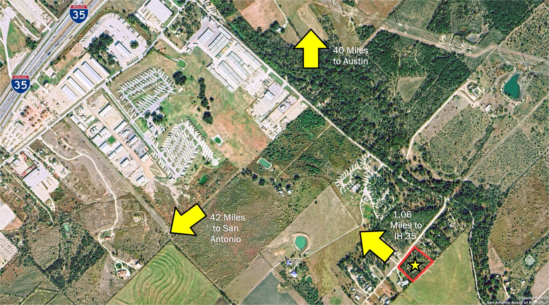 Imagine the endless possibilities with this 3.25+/- Acre undeveloped land that is not in the New Braunfels ETJ and no city zoning restrictions. There is approximately 380 FT road frontage along Caney Creek. This property is within 1-2 miles of IH 35 strategically between San Antonio and Austin. Ideal usage includes RV Park, residential and commercial development, farm and ranch, and MORE!