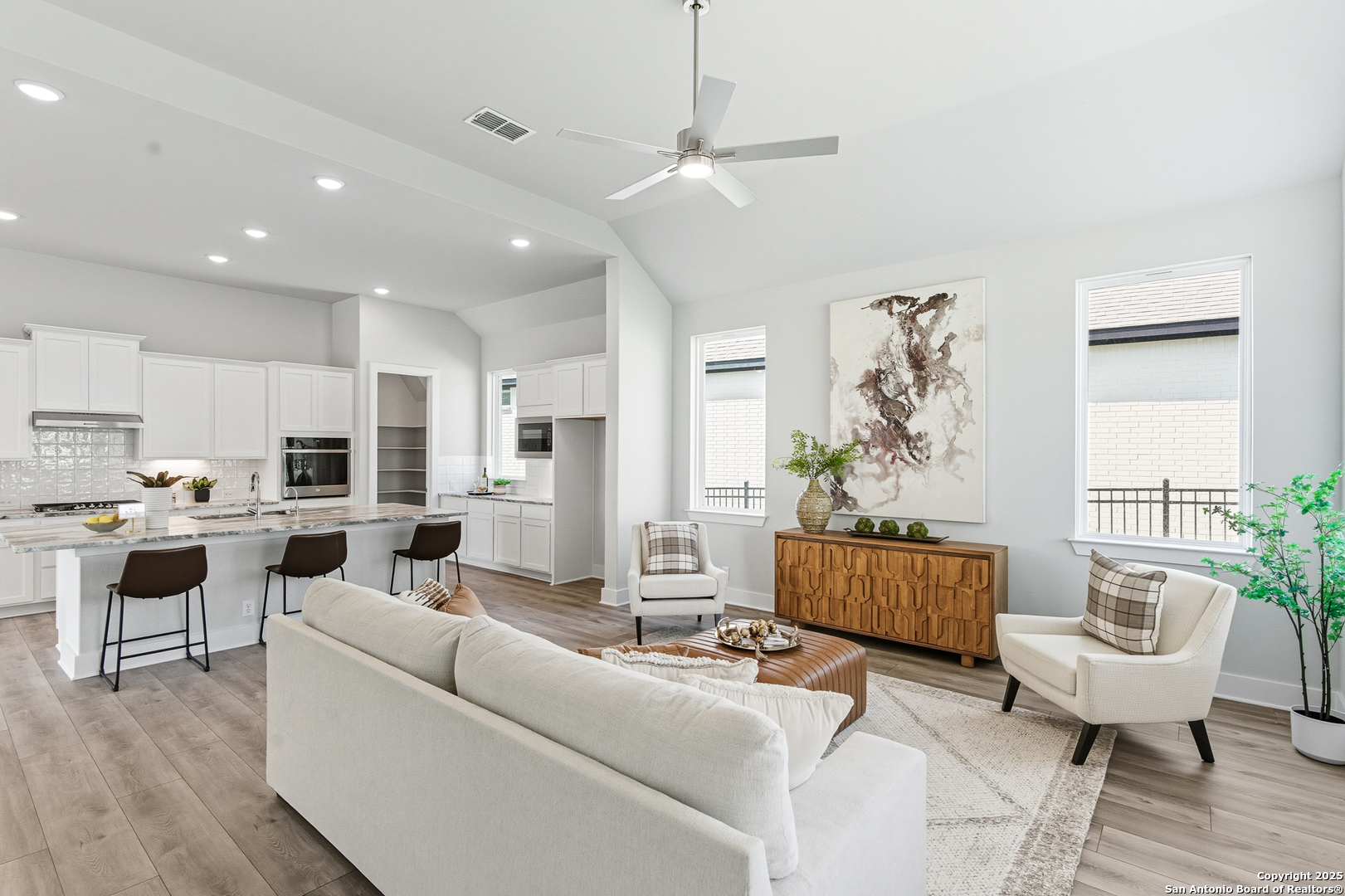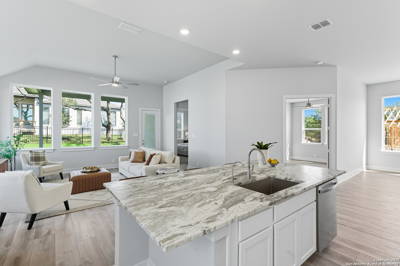 Move-in Ready! The Hampton floorplan offers 4 bedrooms, 3 bathrooms, and a spacious open design perfect for modern living. The gourmet kitchen with a large island flows into the family and dining areas, ideal for entertaining. The primary suite features a spa-like bath and walk-in closet, while a secondary suite includes a private bath. Two additional bedrooms share a full bath. A covered patio, two-car garage, and access to resort-style amenities complete this stunning home in Esperanza.