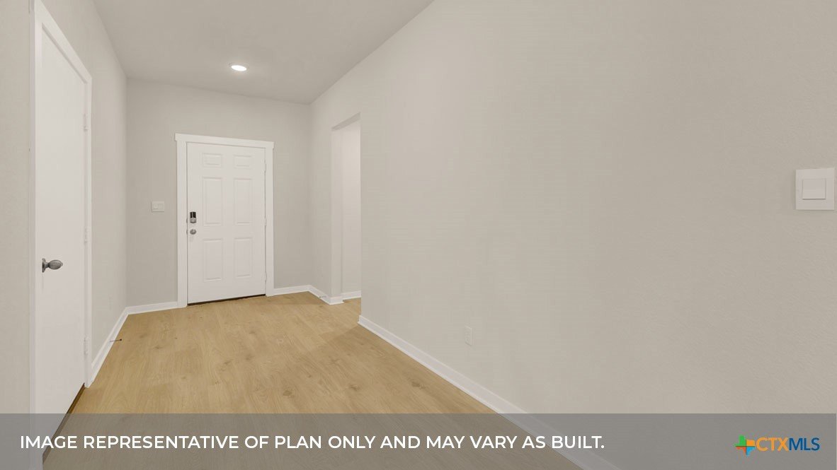 JANUARY ESTIMATED COMPLETION DATE. INCLUDES REFRIGERATOR, BLINDS, GARAGE DOOR OPENERS, WASHER/DRYER IN ADDITION TO STANDARD APPLICANCE PACKAGE. Check out the Holden at Hartland Ranch, a one-story floorplan featured in one of our communities in Lockhart, Texas. Designed across 2,314 square feet, this home includes 4 bedrooms and 2 bathrooms and a study and a 3 car garage. Step inside the home from the covered entryway into the foyer. Down a short hall, you will find the secondary bedrooms, bathroom, and the utility room. Each bedroom includes a closet with shelving and the secondary bathroom features a shower/tub combination as well as a private door to the toilet and shower area. Moving through the short foyer, you will enter the kitchen, dining and family room. This spacious open concept living space will become your retreat at the end of the day. The kitchen includes an island with undermount sink, quartz countertops, decorative tile backsplash, a corner pantry closet, stainless-steel appliances and 36’’ upper cabinets. The family room opens to the bright study, perfect for a home office or library. The primary bedroom is tucked away off the family room and includes a private bathroom with his and hers closets. Enjoy the luxurious 5’ walk in shower, raised cultured marble vanity with double sinks, and separate door entrance to the toilet for privacy. The Holden includes vinyl flooring throughout the common areas of the home and the primary bedroom, and carpet in the secondary bedrooms. All our new homes feature a covered back patio, full sod, an irrigation system in the front and back yard, and full gutters. This home includes our America’s Smart Home base package, which includes the Amazon Echo Pop, Front Doorbell, Front Door Deadbolt Lock, Home Hub, Thermostat, and Deako® Smart Switches.