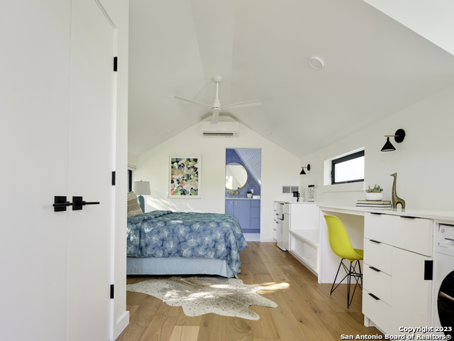 A rarely available Davey McEathron-designed modern ADU and accessory compound boasting abundant natural light and a thoughtful ADU layout with two primary suites and 2.5 bathrooms. The detached garage accessory features uncommon 2nd flex space with AC and kitchenette and above the garage awaits a tree house retreat with a full bath and W/D. Chef's gourmet kitchen, custom cabinetries, and top-of-the-line appliances. High-efficiency HVAC, tankless WH, and insulation. Perfectly manicured outdoor space and fenced yard made for entertaining. There's plenty to see and do in this inviting neighborhood, as well as close access to some of Austin's best parks, restaurants, coffee shops, and nightlife. View with caution, you will fall in love!