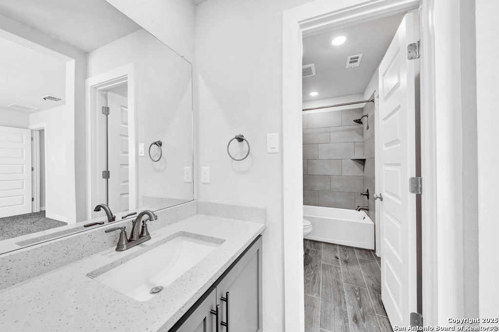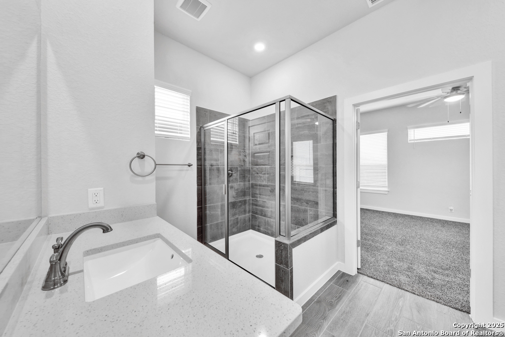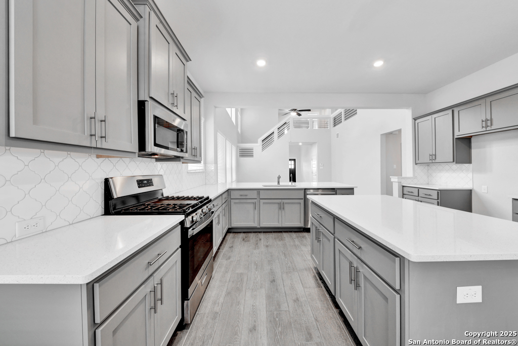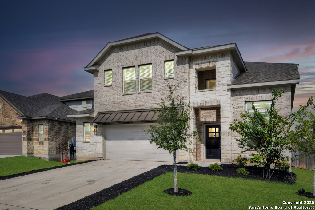 Tucked just minutes from the heart of downtown New Braunfels, the vibrant Texas Ski Ranch, and the historic charm of Gruene, this stone-and-brick beauty isn't just a home-it's the beginning of your next chapter. Imagine pulling into your driveway after a day spent tubing down the Guadalupe River or catching live music under the stars in Gruene. As you step inside, you're greeted by soaring ceilings, sun-drenched spaces, and the quiet elegance of wood-look tile underfoot. The open floor plan draws you in-past gleaming quartz countertops and stainless steel appliances-to a kitchen made for laughter-filled dinners and quiet morning coffees. With two spacious living areas, there's room to entertain and unwind, while the dedicated office provides the perfect space to focus, create, or work from home. You drop your keys on the oversized island, take a deep breath, and feel the stress of the day melt away. Every corner of the home is thoughtfully designed, from gas cooking that makes meal prep a breeze to the generous storage areas that keep everything tidy and in its place. In the primary suite, the bathroom offers a private retreat with separate vanities-no more bumping elbows during the morning rush. And out back? The low-maintenance yard invites you to kick off your shoes, sip something cold, and enjoy the warm Texas breeze without ever picking up a lawnmower. This isn't just a place to live-it's where your best memories are waiting to be made. Welcome home.
