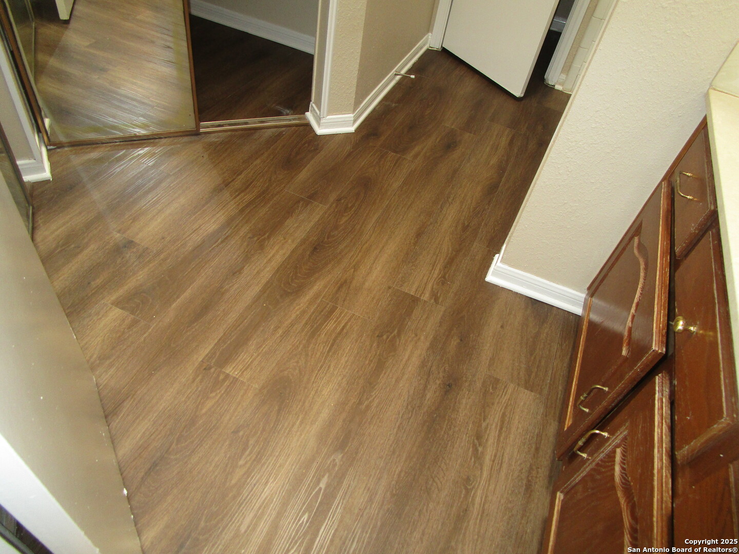 Well maintained home that has been recently painted on exterior. Vaulted ceilings on interior with fireplace in living room. No carpet, all ceramic tile flooring with $4,000 flooring allowance. Property borders a public park at the rear fence line. Enjoy your morning coffee on the expansive 25' x 12' patio made of pavers.