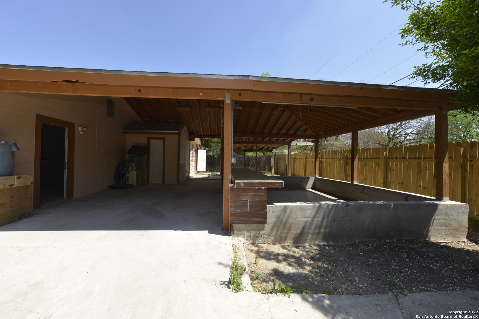 Perfect mother in law setup. This unique home is set up with two kitchens and two separate living areas. Both units are metered on one unit and features two bedrooms with living area and kitchen per unit. One unit has two bathrooms and the smaller unit has one bathroom. Common interior door can be locked for privacy. A large covered carport is accessible by the side yard. Easy access to IH 35, Downtown and Fort Sam Military base and BAMCY.