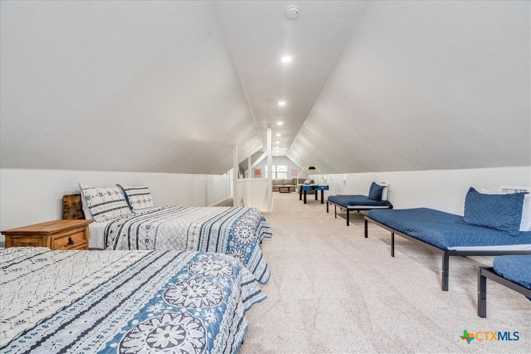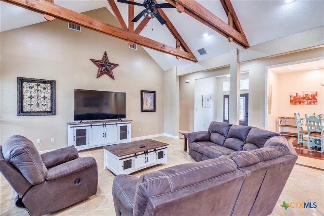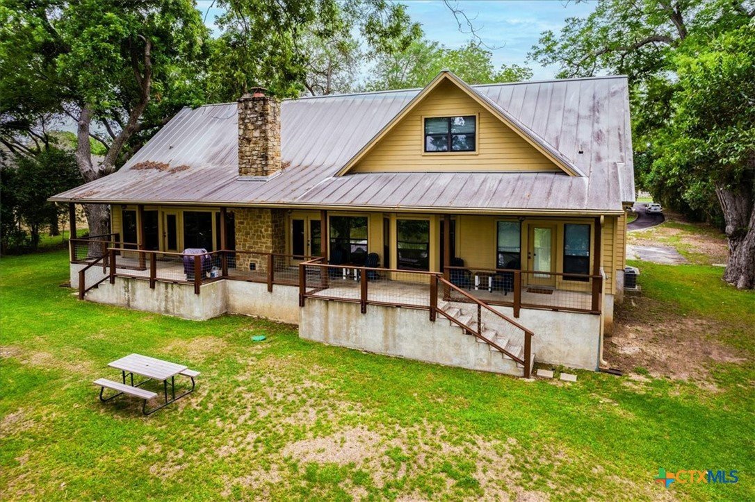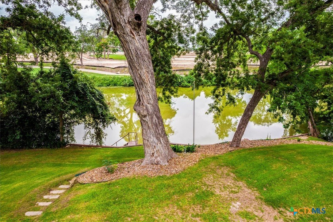 Welcome home to 302 Guadalupe River Drive, a custom waterfront home in Seguin on the beautiful banks of the Guadalupe River! Tucked in the shade of soaring pecan trees, and featuring over an acre of land and 155 ft of waterfront, this gem is located on the Texas Paddle Trail on Lake Seguin, with deep water for kayaks/canoes and great fishing. With a back porch that spans the entire length of the home, and a wall of back windows across the living/dining/kitchen areas, this home has water views from every angle and is perfect for entertaining! Finished out in 2023 from previous attic space, the Upstairs "Bunkroom" features 1300+ sf of sleeping space + living area + full bathroom, and is a perfect flex space for a variety of uses. Kitchen remodeled in 2021, secondary bath in 2022, and asphalt circle driveway added in 2023. Gorgeous stained, stamped concrete floors in the downstairs living areas; carpet in bedrooms and upstairs. Private swim dock and rope swing included for lots of summer fun! Prime location across the water from Max Starcke Golf Course + Park, the 227-acre expanse known for its public golf course, wave pool, playgrounds, sports courts and ball fields, along with 4th of July fireworks. Home was built in 2005 above the FEMA flood plain and has never flooded. Don't miss your chance to own your piece of paradise!