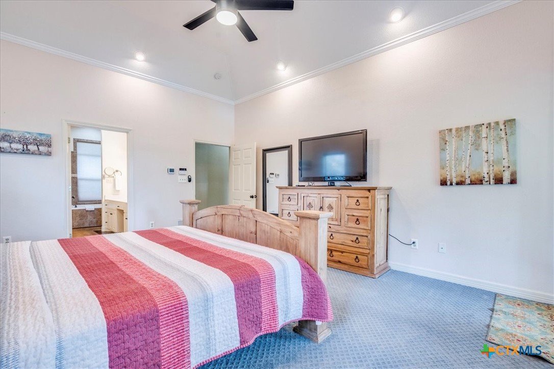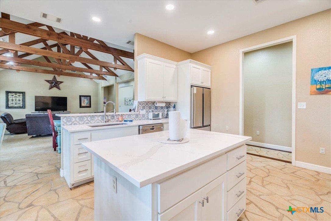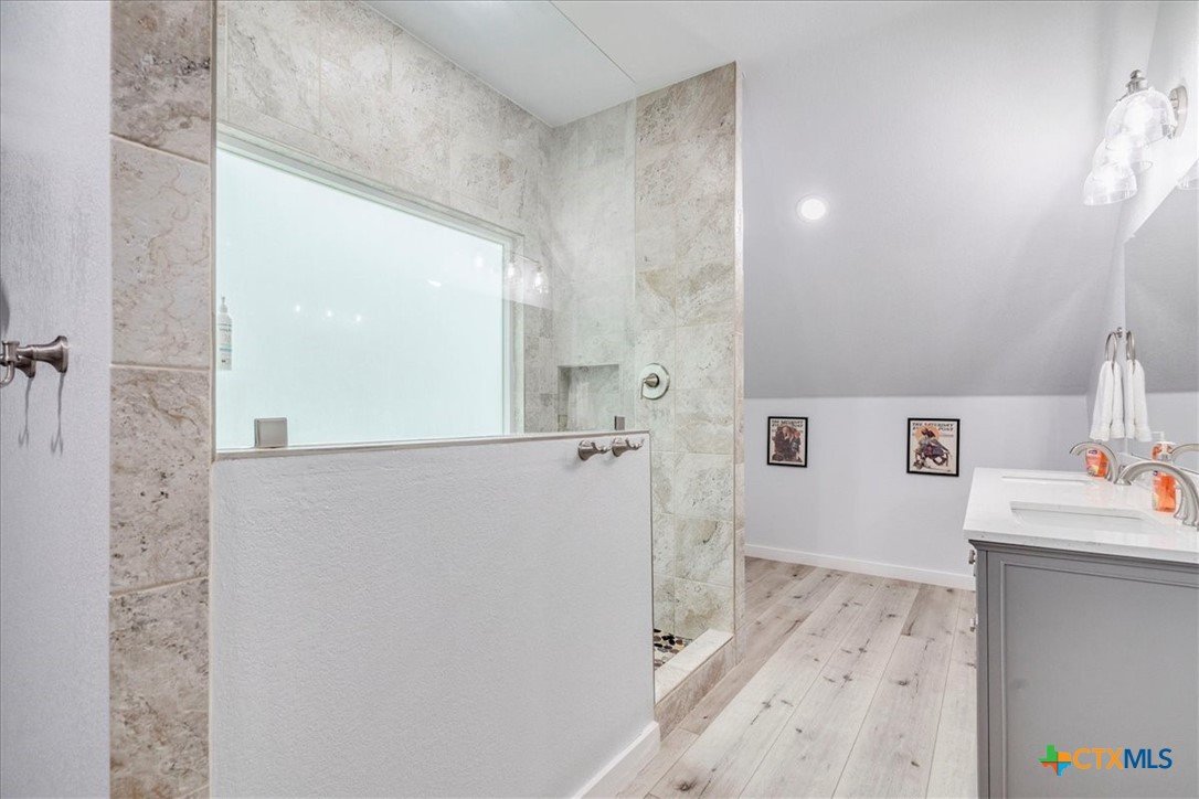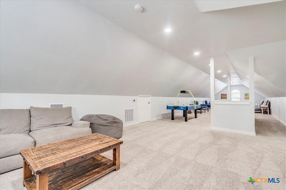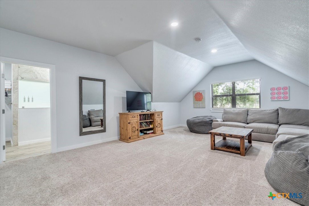 Welcome home to 302 Guadalupe River Drive, a custom waterfront home in Seguin on the beautiful banks of the Guadalupe River! Tucked in the shade of soaring pecan trees, and featuring over an acre of land and 155 ft of waterfront, this gem is located on the Texas Paddle Trail on Lake Seguin, with deep water for kayaks/canoes and great fishing. With a back porch that spans the entire length of the home, and a wall of back windows across the living/dining/kitchen areas, this home has water views from every angle and is perfect for entertaining! Finished out in 2023 from previous attic space, the Upstairs "Bunkroom" features 1300+ sf of sleeping space + living area + full bathroom, and is a perfect flex space for a variety of uses. Kitchen remodeled in 2021, secondary bath in 2022, and asphalt circle driveway added in 2023. Gorgeous stained, stamped concrete floors in the downstairs living areas; carpet in bedrooms and upstairs. Private swim dock and rope swing included for lots of summer fun! Prime location across the water from Max Starcke Golf Course + Park, the 227-acre expanse known for its public golf course, wave pool, playgrounds, sports courts and ball fields, along with 4th of July fireworks. Home was built in 2005 above the FEMA flood plain and has never flooded. Don't miss your chance to own your piece of paradise!