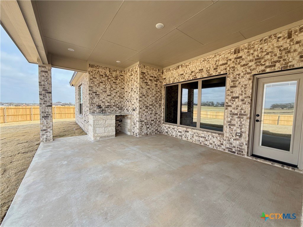 Spacious and stylish Aria Plan in popular Turtle Creek This beautiful home offers over 2,300 square feet of living space with four bedrooms, two and a half bathrooms, and a three-car garage. The open layout features statement ceilings and a cozy electric fireplace, creating a warm and inviting atmosphere. The kitchen includes a large island, soft-close cabinetry, and plenty of room to gather. The private master suite boasts an oversized walk-in closet and a relaxing layout. Energy-efficient spray foam insulation and ceiling fans throughout help keep the home comfortable year-round. A fully landscaped yard is included, and the outdoor kitchen and fireplace will enhance your outdoor living.