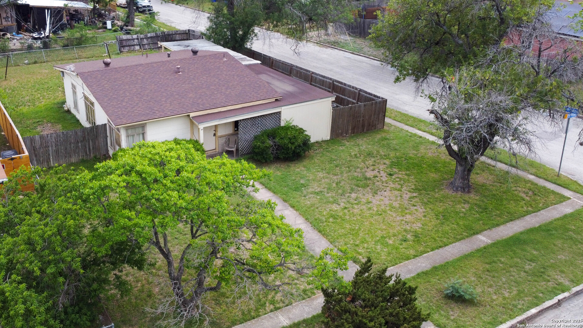 **INVESTOR SPECIAL** This 3-bedroom, 1-bath home sits on a large corner lot with mature trees and nearly 1,000 sq ft of living space. Features include wood floors, gas cooking in a galley kitchen, and a 4-year-old roof with dimensional shingles. Workshop area adds extra flexibility for projects or storage. Located minutes from the airport with easy access to IH-35 and Loop 410, it's a prime spot for rentals or resale. With a little updating, this property could be a real gem. Great location, solid bones, endless potential-don't miss it!