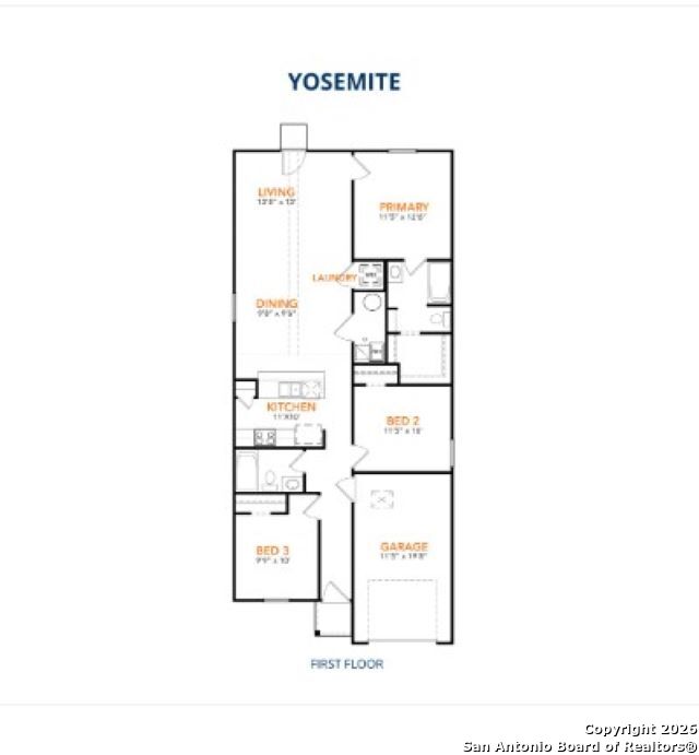 MLS# 1933286 - Built by NHC - May 2026 completion! ~ The Yosemite Plan from our Freedom Series is a cozy and efficient single-story home featuring 3 bedrooms, 2 bathrooms, a 1-car garage, and 1,202 square feet of smartly designed living space. This split-level floorplan places two secondary bedrooms and a full bathroom at the front of the home, offering privacy and convenience. Continue into the open-concept living area, where the kitchen with a central island overlooks the dining area and family room-perfect for meals, gatherings, and quality family time. The primary suite is thoughtfully positioned off the family room for added privacy and includes a private bathroom and walk-in closet. The laundry room is also conveniently located on this side of the home for easy access. .