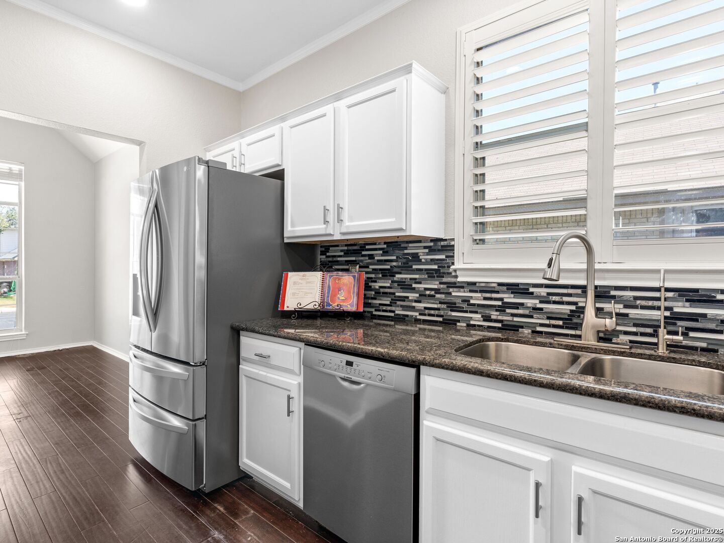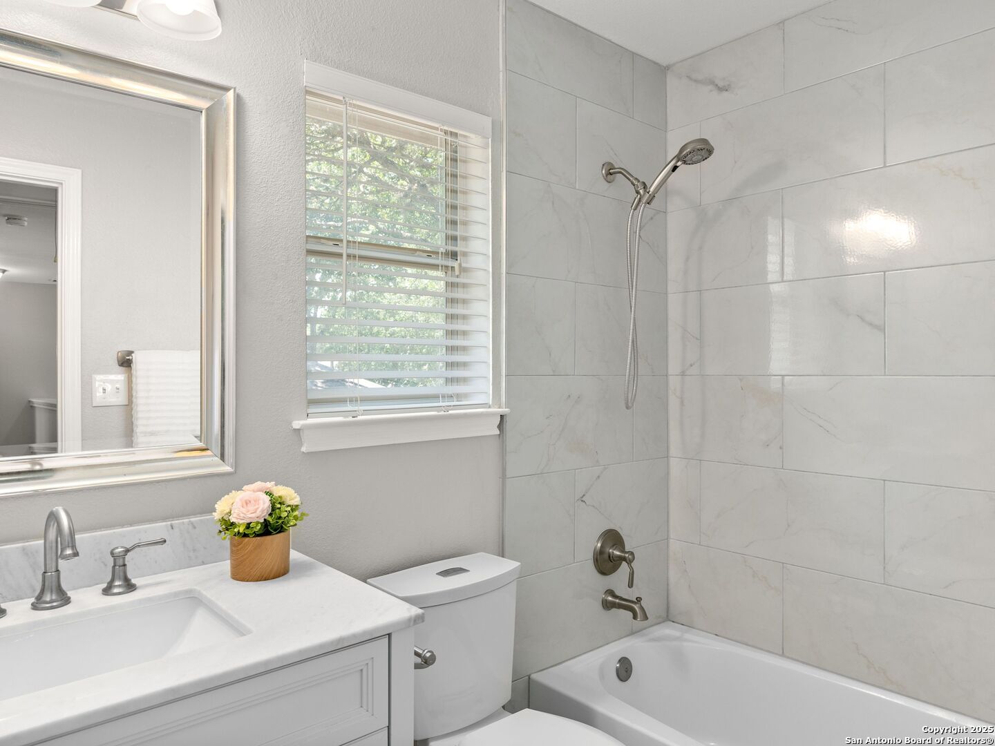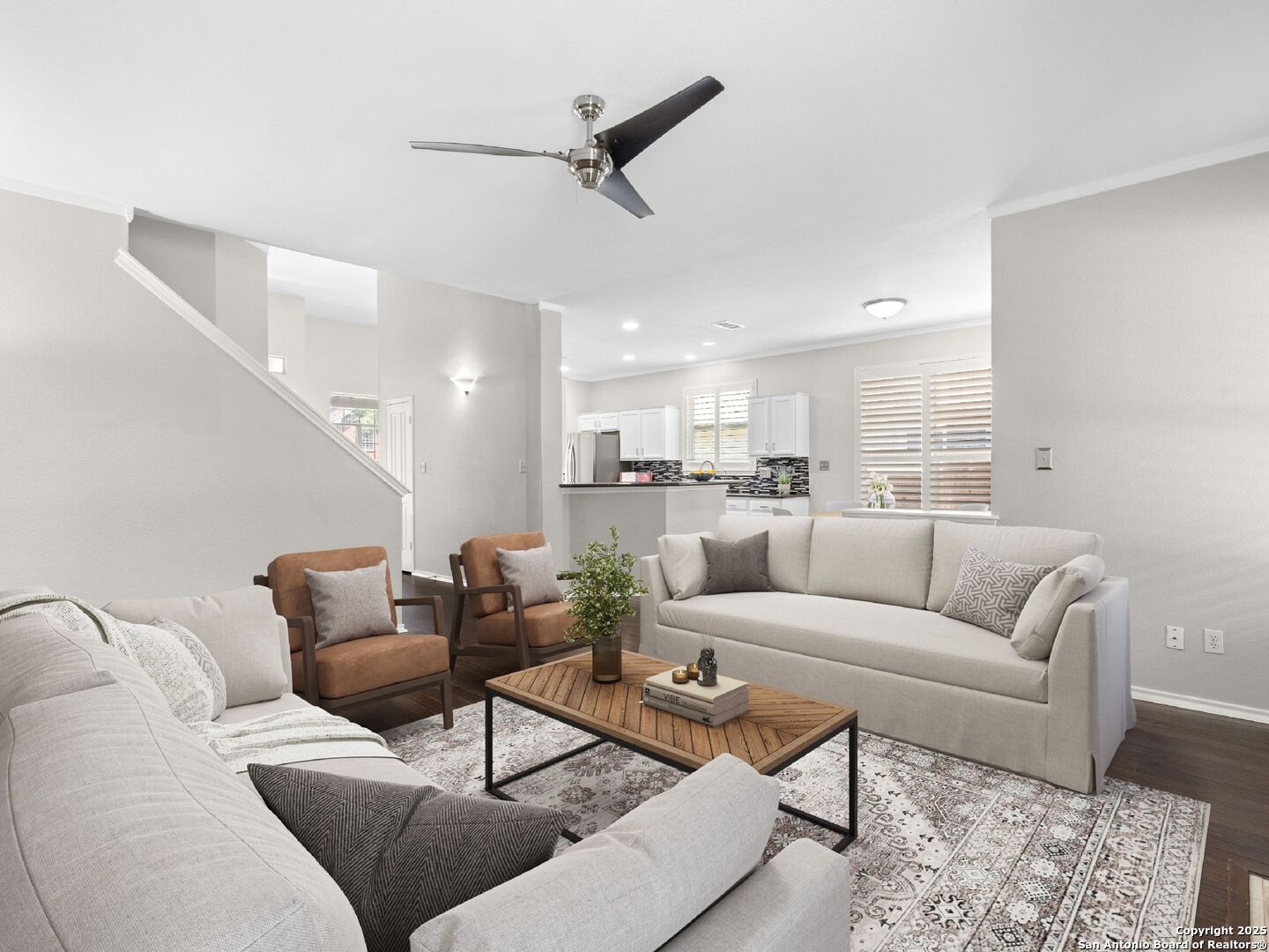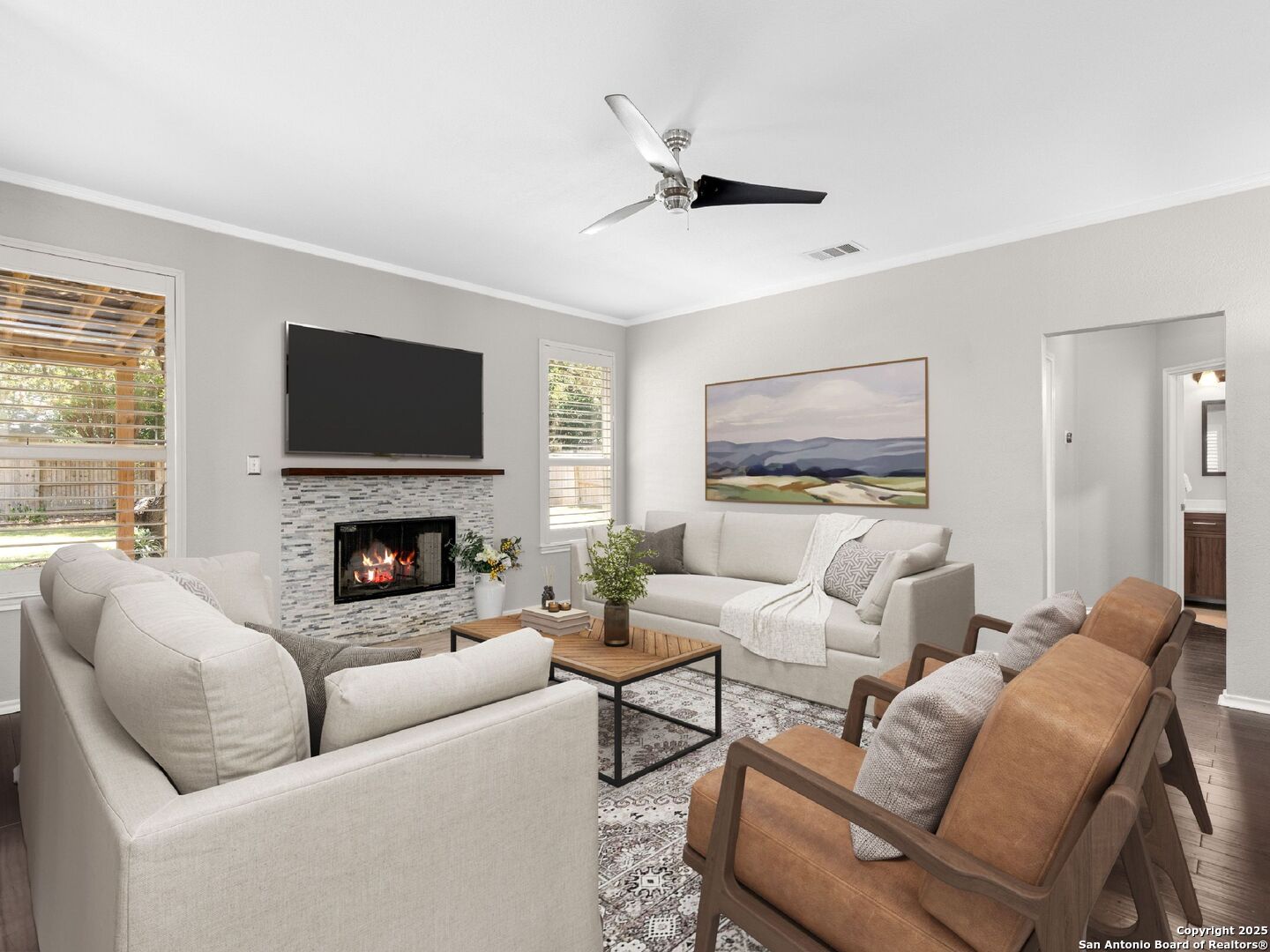 Stylishly designed and updated, this spacious 4 bedroom, 3 bath, two story built by Scott Felder Homes is a gem offering comfort and convenience. Recently added huge backyard deck with pergola. Situated in the highly desired neighborhood of Fall Creek, this property stands out with excellent curb appeal and thoughtful details throughout, UPGRADES and EXTRAS that set it apart from the rest! A downstairs bedroom with full bath is perfect for a guest/mother-in-law suite or private separate office space. Open floor plan, Nest thermostat, plantation shutters, kitchen features APEC under sink 5 stage filtration system, stainless appliances including a Bosch dishwasher, new refrigerator, granite counters and tile backsplash, designer light fixtures throughout. Three year old washer/dryer conveys. Upstairs is the master suite along with two additional bedrooms and full bath. A generous game room/flex (could be a 5th bedroom) a plus! The backyard is also spacious and level, storage shed, Ring door bell plus floodlights, nine year old composition roof. Easy access to restaurants, military bases, airport, McAllister Park with ball fields, biking trails and dog park just down the road.