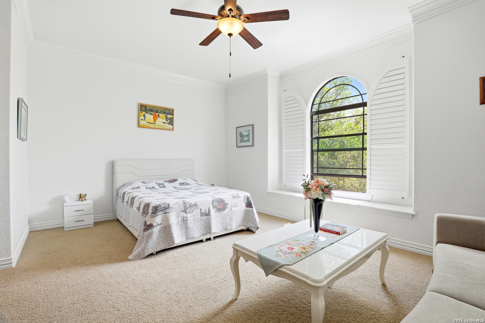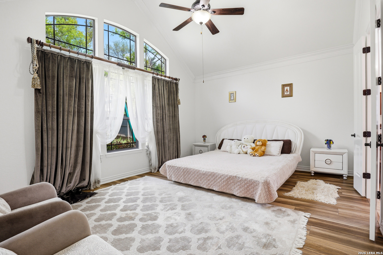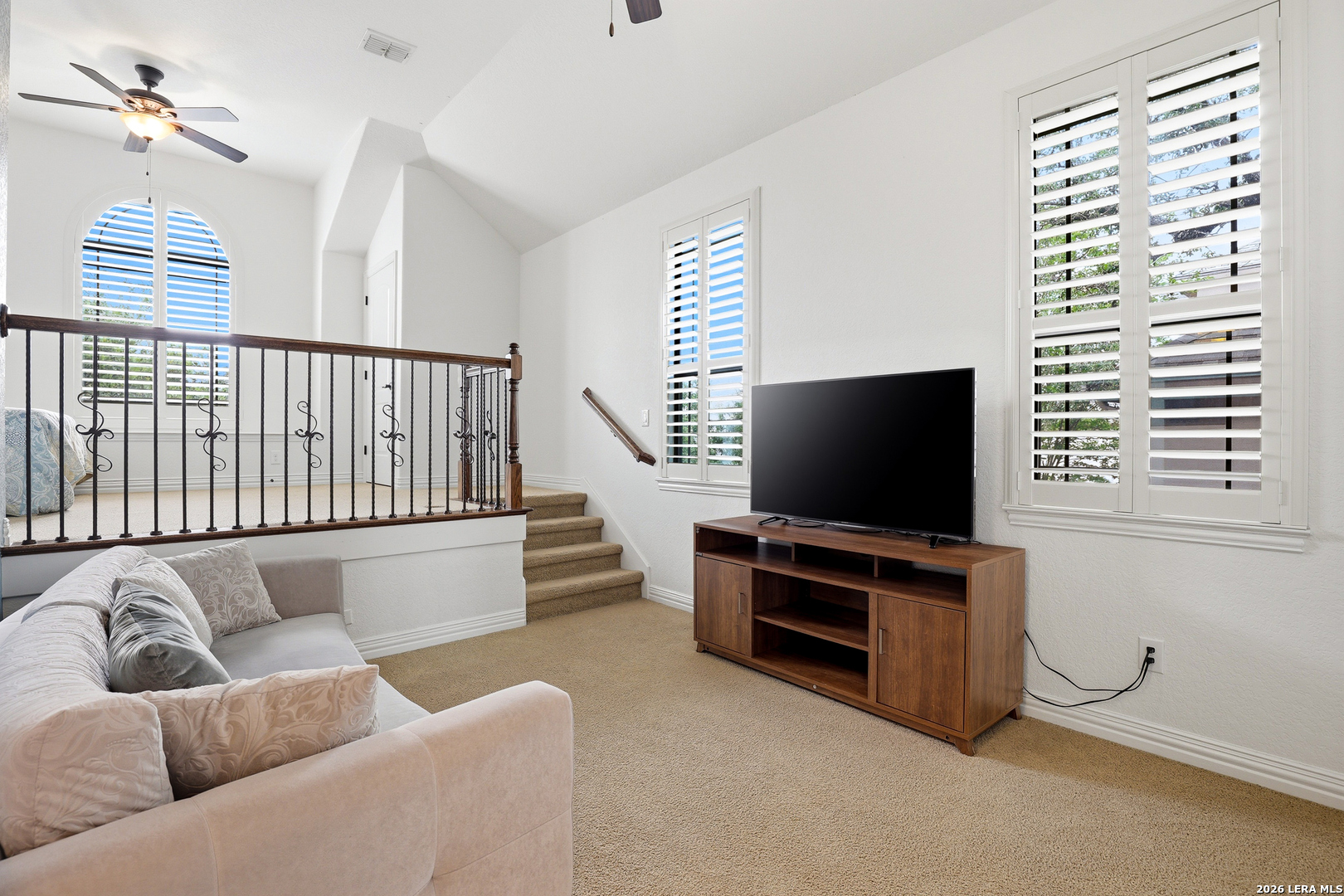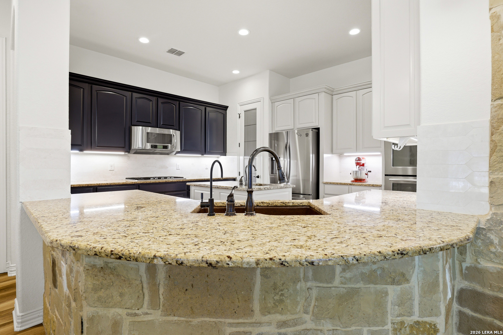 Welcome to 3023 Spider Lily in the gated Point Bluff at Rogers Ranch community. This 4-bedroom, 4.5-bath home offers over 4,000 sqft of well-designed living space with two living areas, a dedicated study, and a home theater. Stone and stucco exterior with wrought-iron detail. Inside, soaring ceilings and a stone corner fireplace anchor the main living area with expansive views of the private backyard. Updated kitchen with center island, prep sink, and granite counters. The main-level guest suite includes its own kitchenette, ideal for multi-generational living or visiting family. A 2-car garage connects directly to the hallway with direct access to the guest suite, plus an additional 1-car garage. Primary suite with separate vanities and walk-in closets, soaking tub, and walk-through shower. Upstairs features a spacious living area and media room with half bath. Gated community with pool, tennis courts, basketball court, kids playground, and newly added trail connections linking Point Bluff to the greater San Antonio trail network. Minutes from La Cantera, The Rim, and top-rated schools.