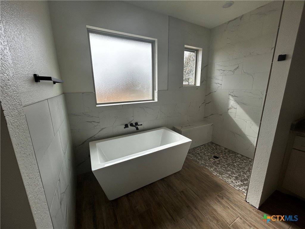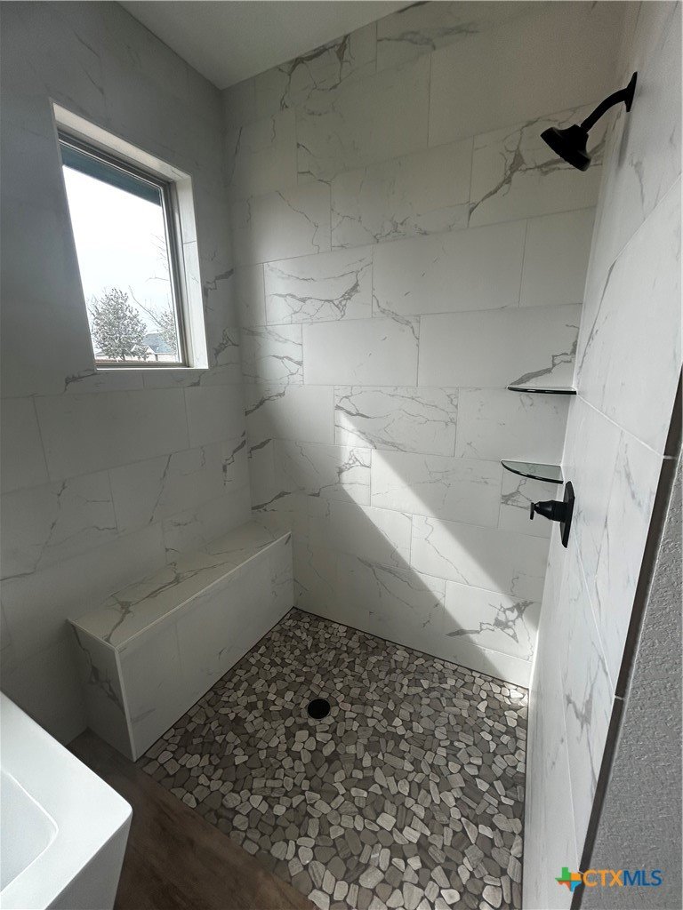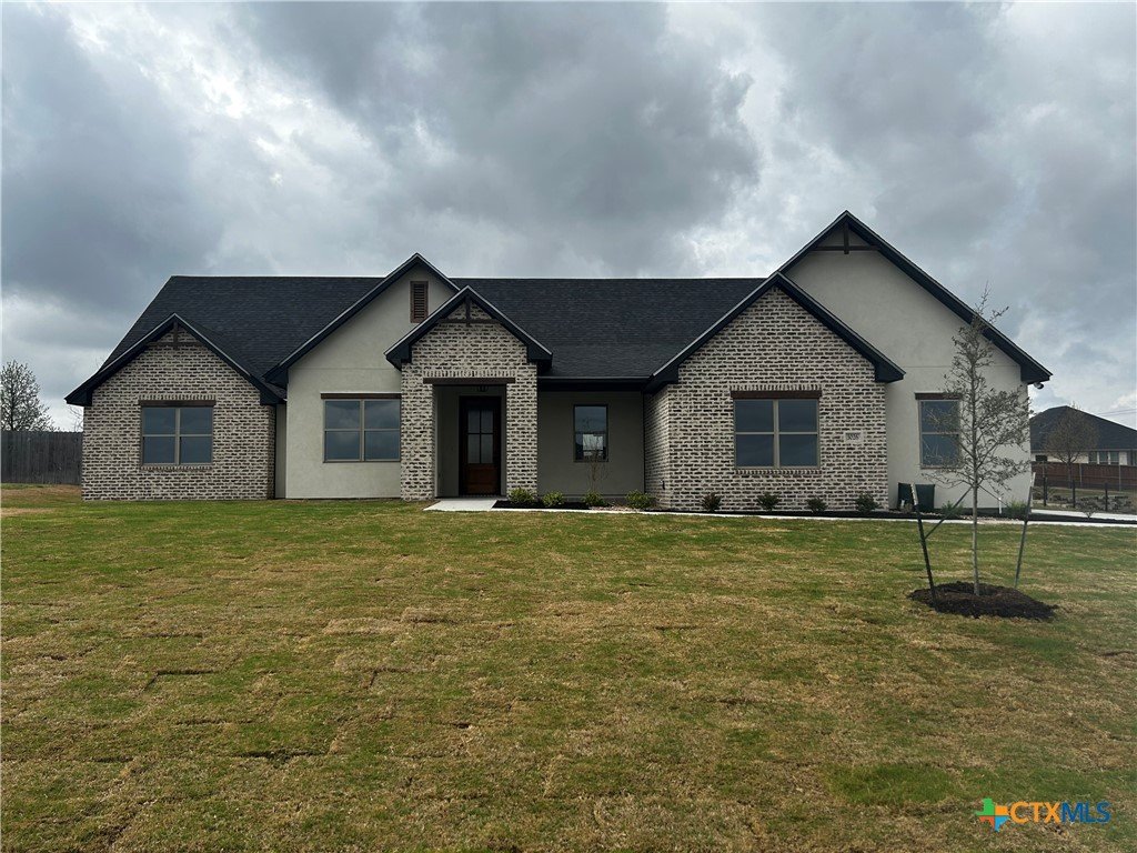 This beautiful new construction home is located in the highly sought after Mill Creek neighborhood. This home is 4 bedrooms, 3.5 bathrooms, with an open concept floorpan. Tile plank flooring runs throughout the home, except the three secondary bedrooms. The kitchen features custom cabinets, granite countertops, an open butlers pantry with a beverage fridge, double ovens, and tons of storage. The primary suite has coffered ceilings, and connects to primary bathroom with a wet room, double vanity and built in storage. The large primary closet connects to the laundry room with granite countertops and sink. The exterior is 4 sided masonry with brick and stucco. The large covered back porch has a wood burning fireplace and a large privacy fenced yard.