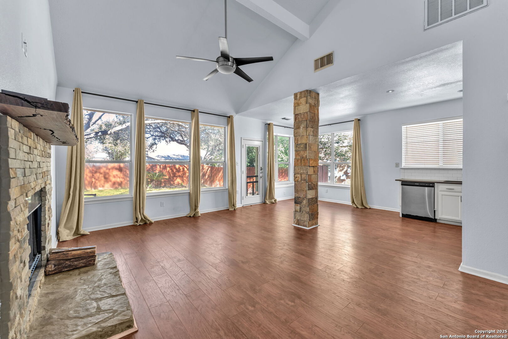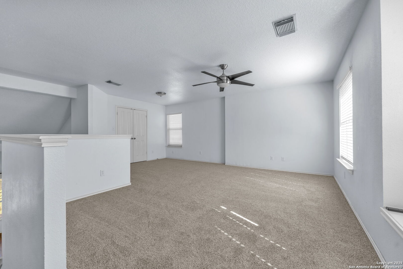 Welcome to the Fall Creek subdivision and this home at 3027 Fall Mist. As you pull up to the home you are met with lower maintenance front yard, which has been xeriscaped. Enter in and you have an open floor plan, loads of windows to let the outdoors in, soaring ceiling @ living area, plus much more. The kitchen is open to both the formal dining and breakfast area. Additionally there is solid surface counter tops, lots of counter space, and ceramic tile backsplash. Around the corner is the living room with a stone fireplace to warm you on those cold winter days. The primary bedroom with ensuite is located on the 1st level with a window seat which could make for a great reading spot. The primary bath has a walk in shower, a separate soaking tub, plenty of countertop space to get ready in the mornings, walk in closet plus a linen closet. As you head upstairs you have another large living space, 2 additional bedrooms, bathroom, and new carpeting (Dec 25). If you are more of an outdoor entertainer you have a good sized deck and yard space. This home is situated in a culdesac with a playground/picnic area within a short distance. If you are an avid hiker or biker then you will enjoy the nearby Mud Creek Park with approximately 3 miles of unpaved trails. Additionally you have McAllister park available to you as well and is just about 2 miles away from this home. The Fall Creek subdivision is located just a few miles away from retail shops, grocery store, restaurants, highways, as well as entertainment. If you travel for work, or pleasure, then you are just 7+ miles away from the San Antonio airport. With so much to offer, schedule your showing and make this home yours now!