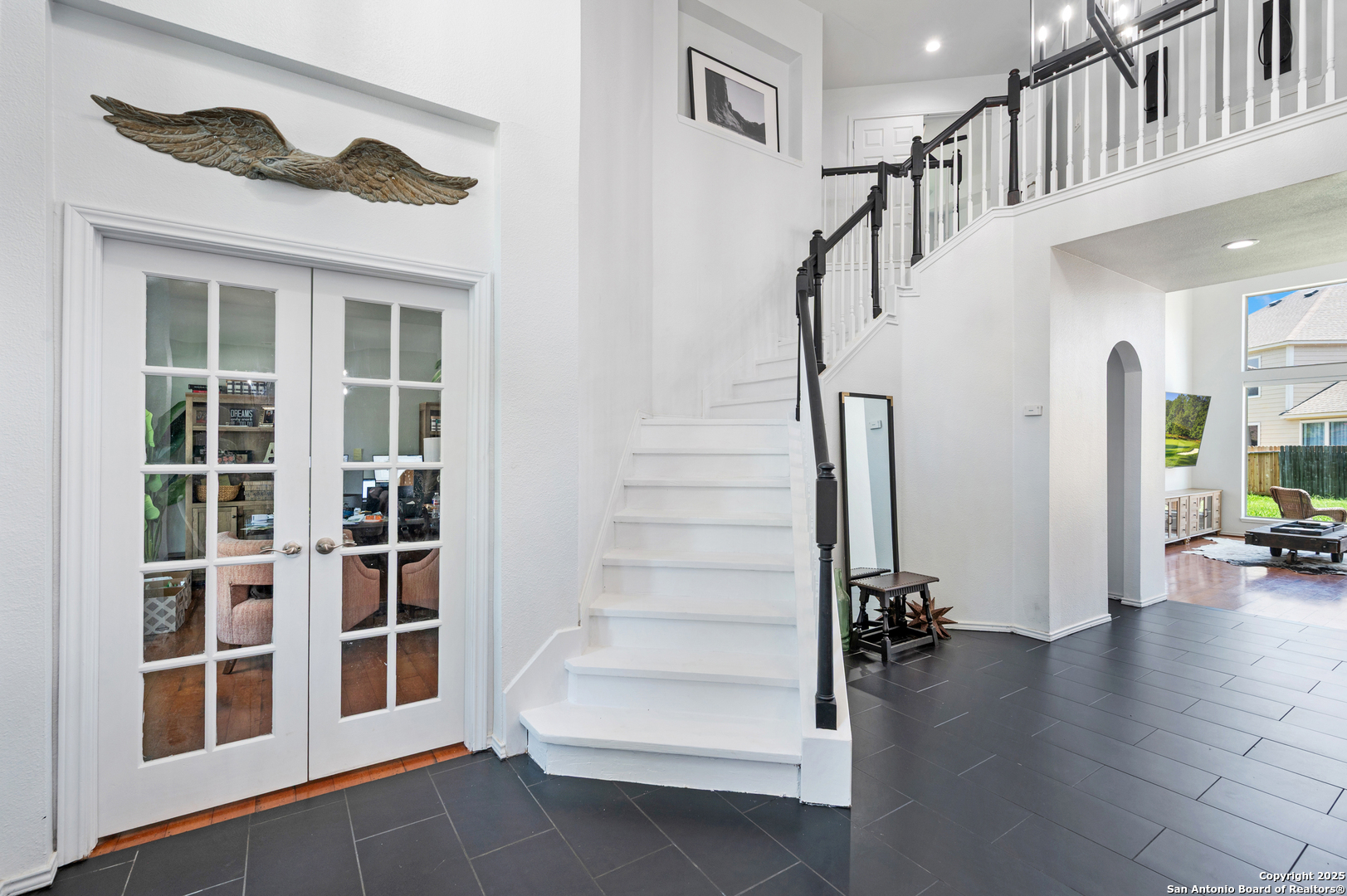 Step into the elegant foyer with soaring 22-foot ceilings, a dramatic staircase and gangway, and grand chandeliers that make a statement. Fresh paint throughout and hand-scraped hardwood floors highlight the formal dining room, complete with custom built-in cabinetry. A spacious office with French doors provides a quiet work-from-home retreat. The kitchen offers both an island and breakfast bar and opens to a massive family room featuring 8-foot windows that flood the space with natural light. The first-floor primary suite includes a large bay window, dual vanities, a soaking tub, separate shower, and a huge walk-in closet with custom built-ins. Upstairs, discover two versatile bonus rooms-perfect for a playroom, media space, or secondary office-plus three additional bedrooms with high ceilings and generous walk-in closets. Enjoy a large private backyard, a detached oversized three-car garage, and a fully gated parking area for extra security. This exceptional home truly has it all! Don't miss out on the perfect home! Schedule your tour today! We offer security deposit assistance!! All residents enroll in Resident Benefit Package for $49.95/month (will be added to monthly rent), which includes renter's insurance, HVAC filter delivery every 60 days, move-in concierge services, a best-in-class resident rewards program, and more! See Screening Criteria for details. $90 lease initiation fee. Must have Pet Screening with application. Must complete Pet Screening with application. https ://erabrokers-sa.petscreening. com/