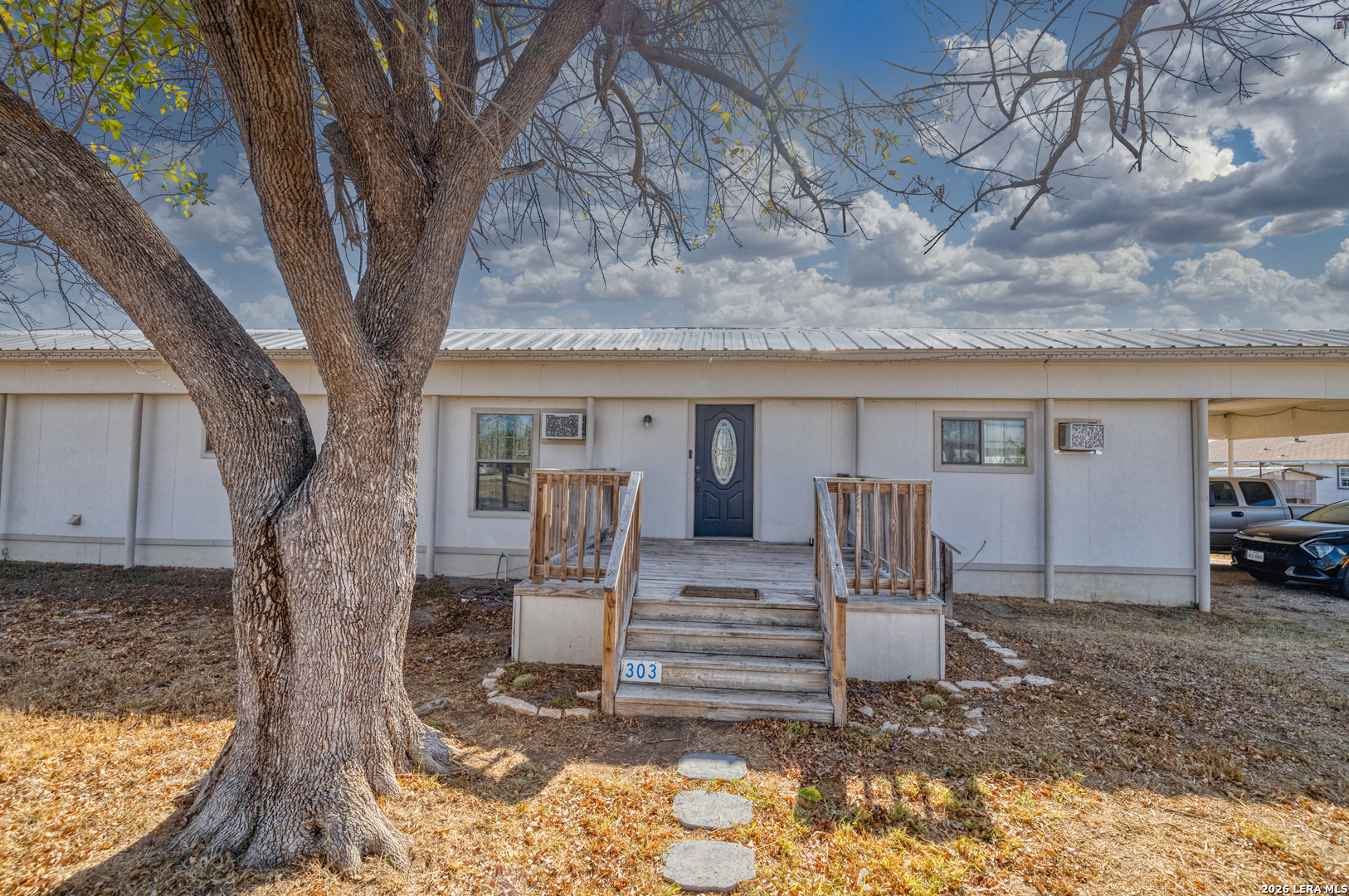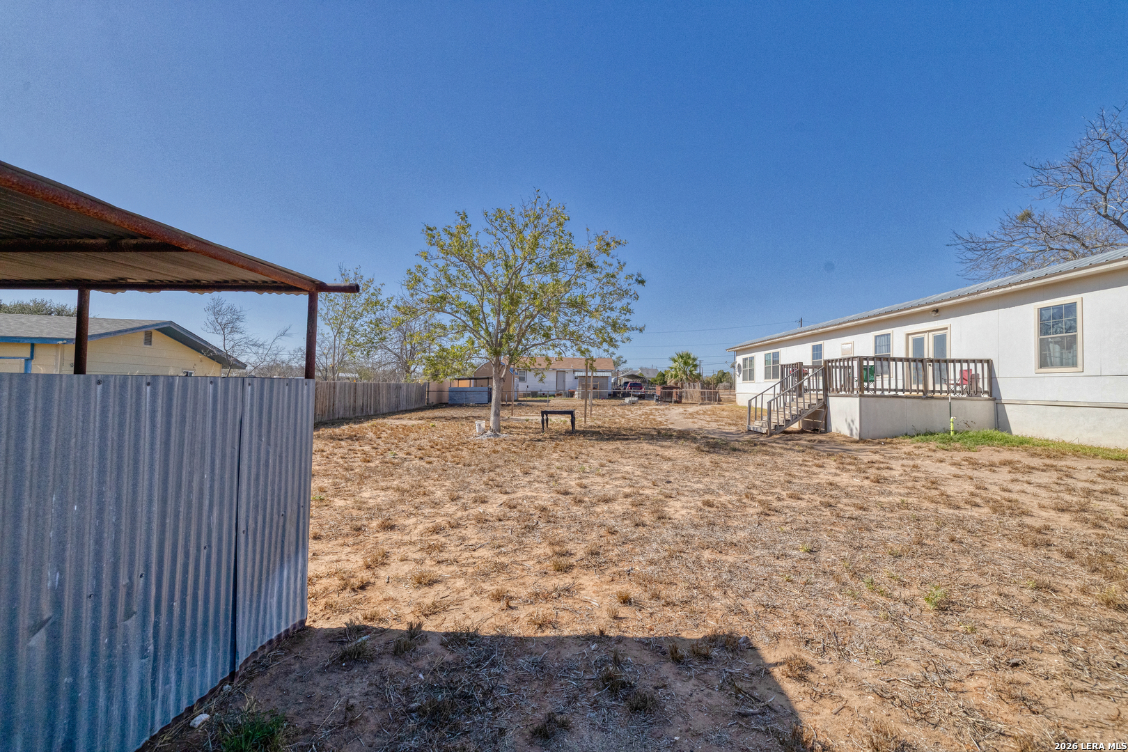 Spacious home on over half an acre inside city limits, situated on two combined lots totaling approximately 0.54 acres and offering the convenience of all city utilities and services. With approximately 2,640 square feet of living space, this well-maintained home features generous room sizes and a functional split-bedroom floor plan. Inside you'll find a spacious kitchen with ample counter space, a large living/den area, and an oversized dining room that could easily serve as a second living area or entertainment space. The oversized primary bedroom includes a private bath with a large soaker tub, while three additional guest bedrooms and a guest bathroom are located on the opposite end of the home, providing excellent privacy. Outdoor features include a metal two-car carport, front porch, large covered back porch, and a fenced backyard with chain-link fencing, ideal for pets or a safe play area. Heavy-duty metal posts already set in concrete offer the beginning of a future pipe fence. Additional features include a dedicated laundry room, multiple window units for heating and cooling, and a large yard that adds to the overall appeal and potential of this city-limit property.