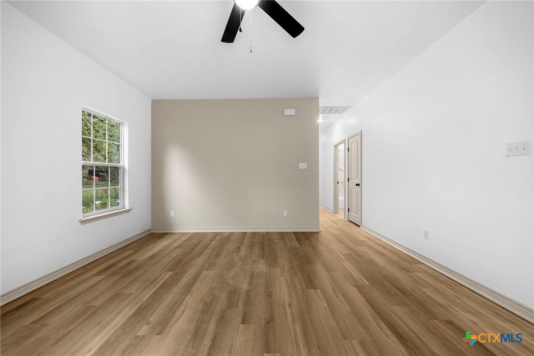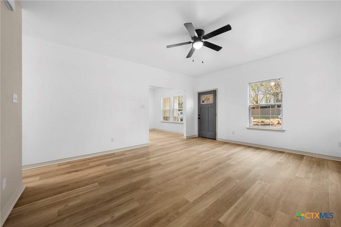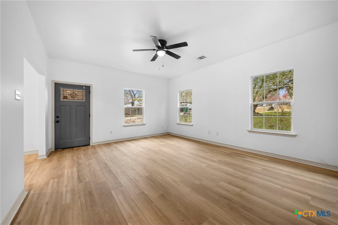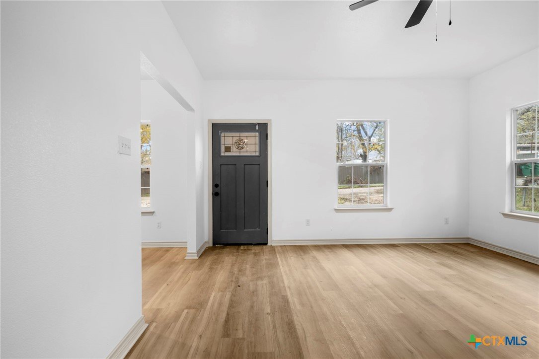 Welcome to this thoughtfully designed single-story home featuring 3 spacious bedrooms and 2 full baths. Step inside from the front porch into a bright and open layout perfect for both relaxing and entertaining. The kitchen is centrally located with abundant counter space, cabinetry, and direct access to the dining area—making mealtime a breeze. The kitchen flows seamlessly into the large living room, creating an inviting gathering space for family and friends. The private primary suite (Bedroom 1) offers generous space, a walk-in closet, and direct access to its own bath. Two additional bedrooms (Bedrooms 2 & 3) are conveniently located near the second full bath, making it an ideal layout for families or guests. This home offers the perfect combination of comfort, function, and style. Don’t miss your opportunity to make it yours!