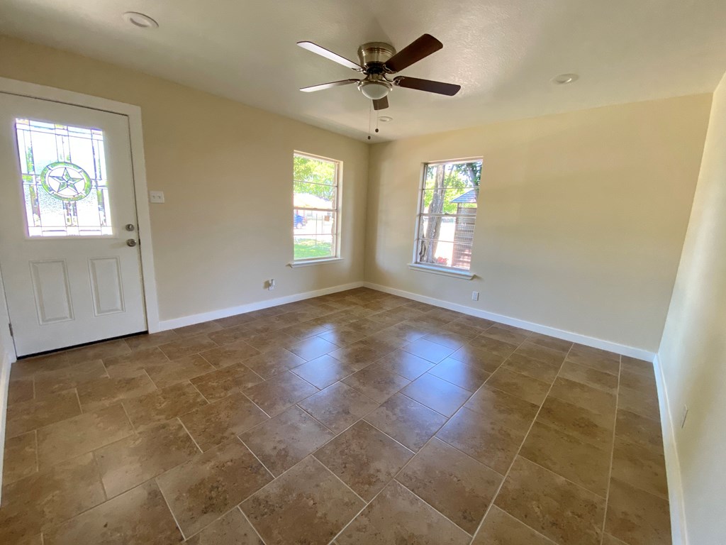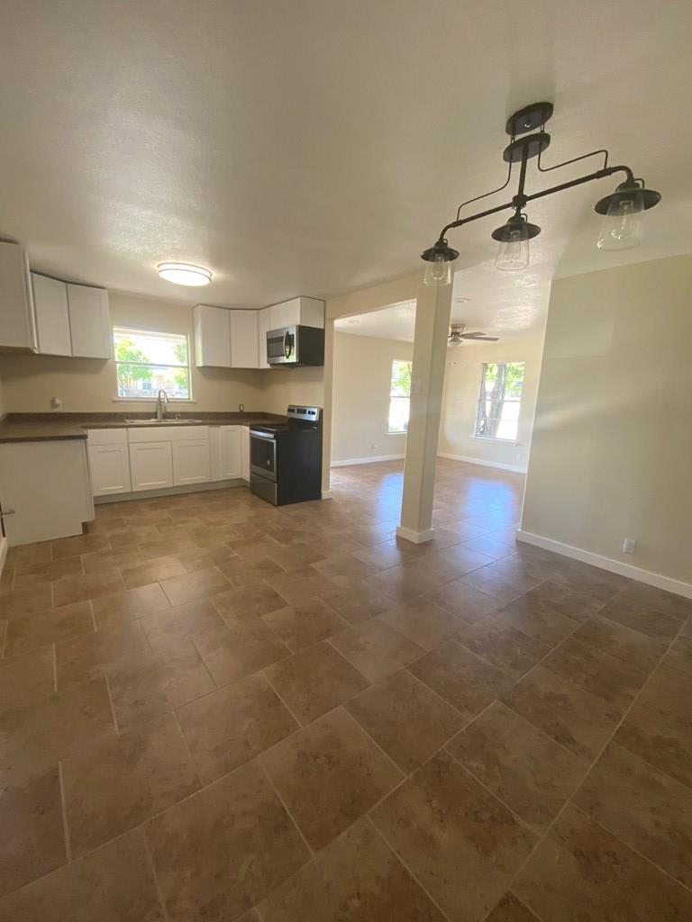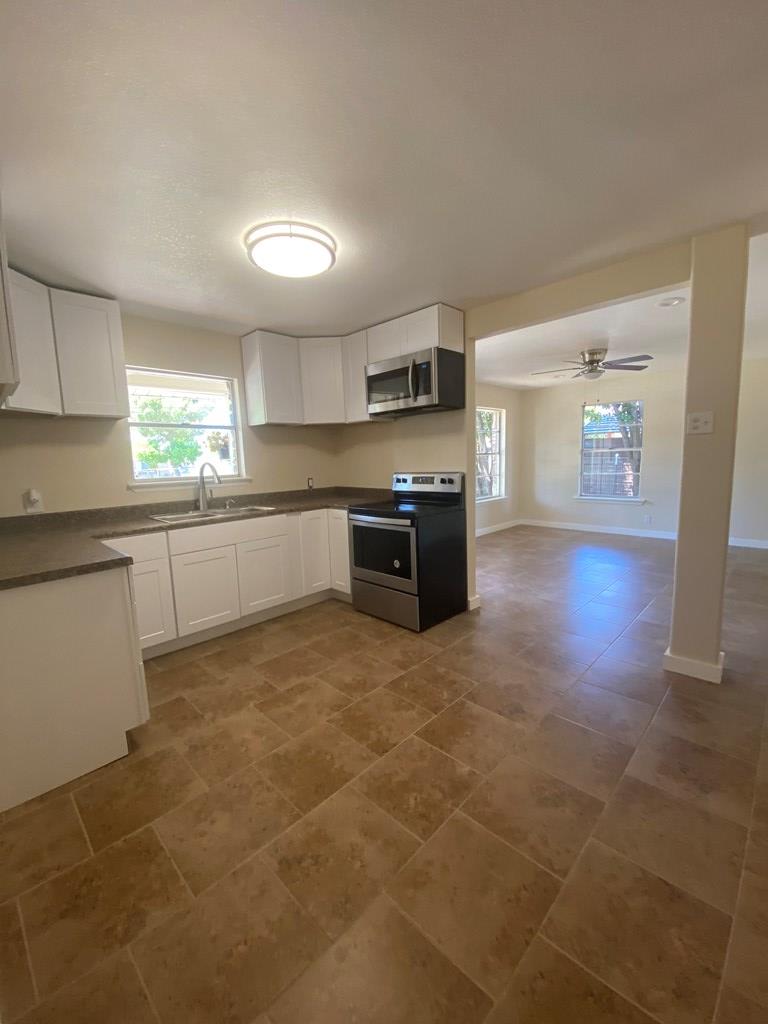 Newly renovated 4/2 on 2 city lots! Tile throughout, brand new stainless range and microwave, new light fixtures and cabinets/countertops! Oversized backyard is fenced and scattered with nice trees. Check it out!