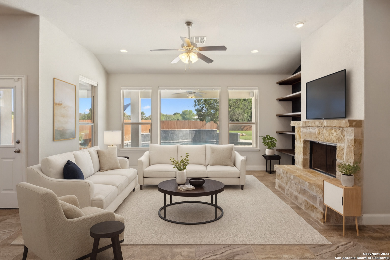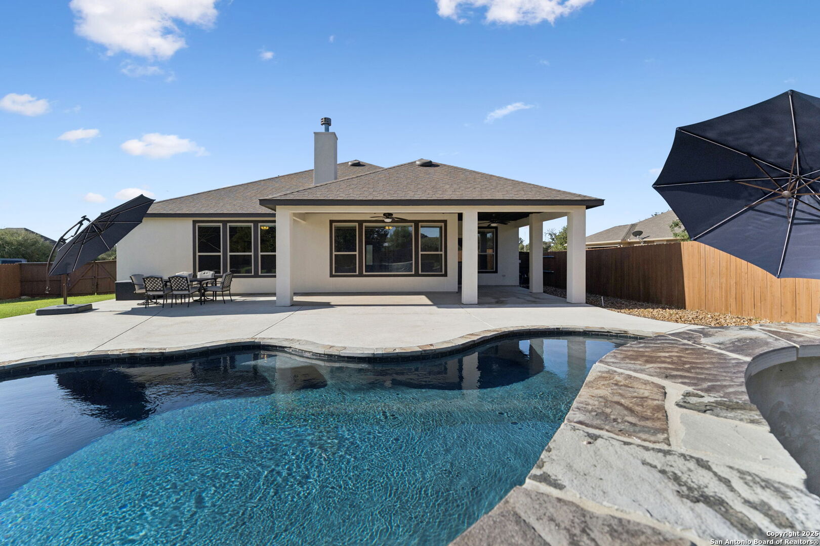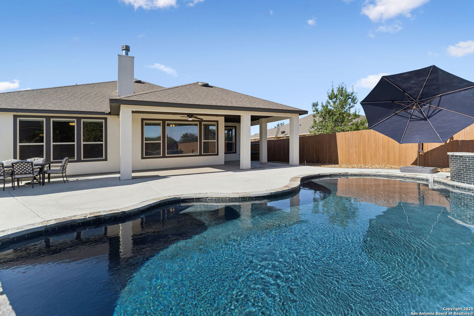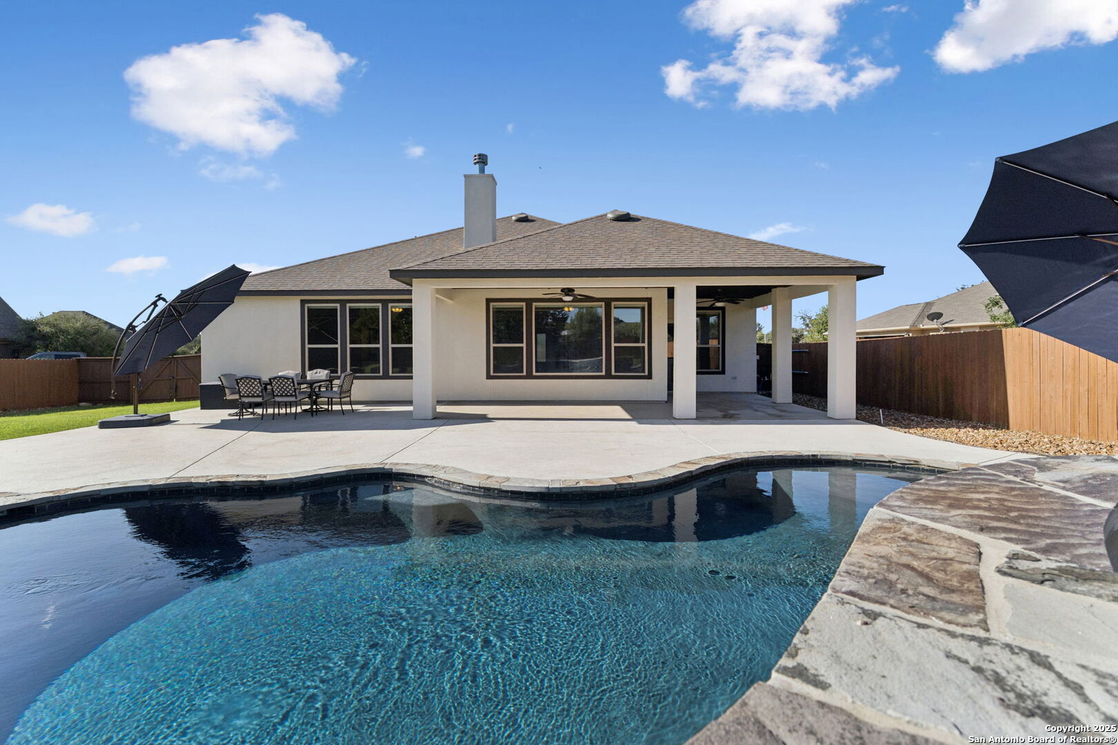 Nestled in the heart of Fair Oaks Ranch, this stunning 4-bedroom, 3-bathroom residence is located in a quiet gated community, offering privacy, elegance, and comfort. Step inside and fall in love with the grand family room, complete with a cozy fireplace-ideal for relaxing evenings or hosting unforgettable gatherings. The open-concept kitchen is an entertainer's dream, featuring a spacious island and plenty of room to cook, serve, and mingle. Outside, your private backyard oasis awaits. Take a dip in the refreshing pool, relax under the sprawling covered patio, or simply enjoy the beautifully landscaped yard. Whether you're sipping coffee poolside or throwing weekend BBQs, this home is made for both relaxation and celebration. And with a 3-car garage, there's room for all your toys, tools, and treasures. Don't miss your chance to enjoy the luxury lifestyle in one of Fair Oaks Ranch's most desirable communities