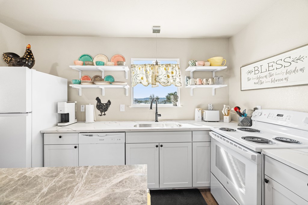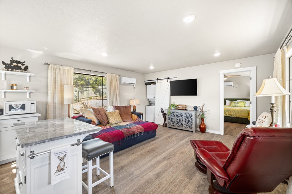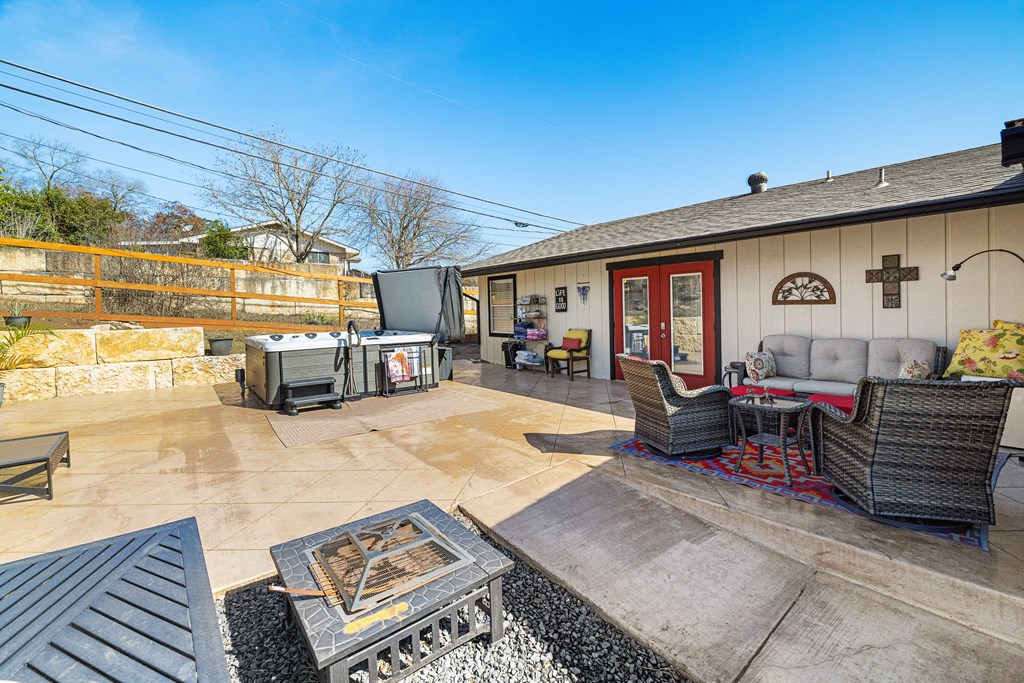 NO CITY TAXES – INCOME-GENERATING OPPORTUNITY! Just minutes from downtown Kerrville, this exceptional property sits on a generous 0.51-acre lot and features two separate homes! The main home boasts 3 bedrooms and 2 bathrooms with an inviting open-concept floor plan, cozy fireplace, and a bright sunroom—ideal for a second living space or a home office. The spacious primary suite offers direct access to the relaxing back patio, complete with a hot tub. The charming guest house includes 1 bedroom, sleek quartz countertops, in-unit washer and dryer, and a covered patio—perfect for rental income, extended family, or guests. The fully fenced backyard is designed for both function and fun, featuring stylish black stone walkways, a chicken coop, and a versatile shed/workshop. Whether you're looking for a primary residence with rental potential, a multi-generational living setup, or an ideal space for young professionals, this property checks all the boxes. Conveniently located near hospitals, shopping, dining, schools, and more!