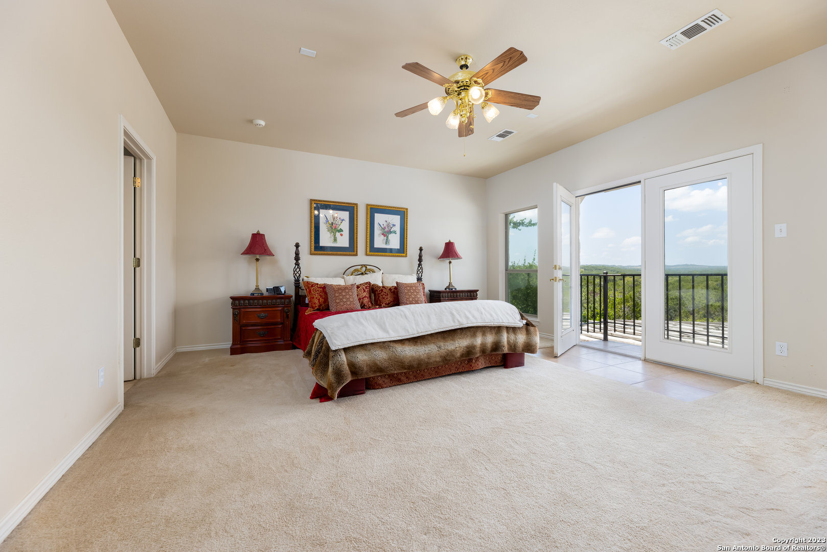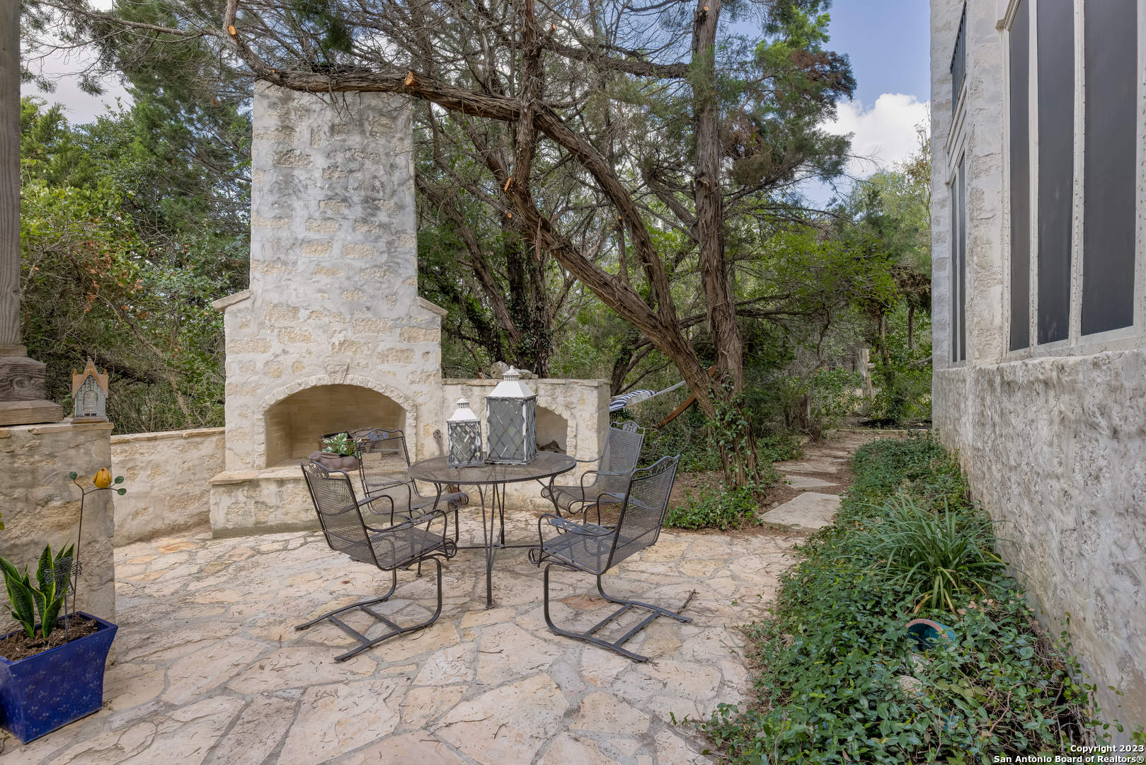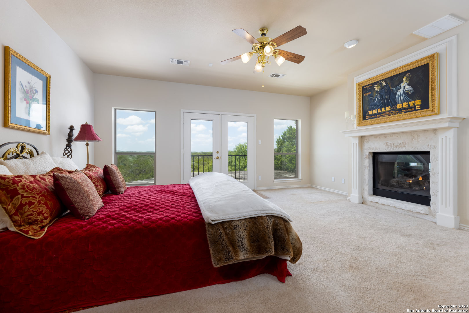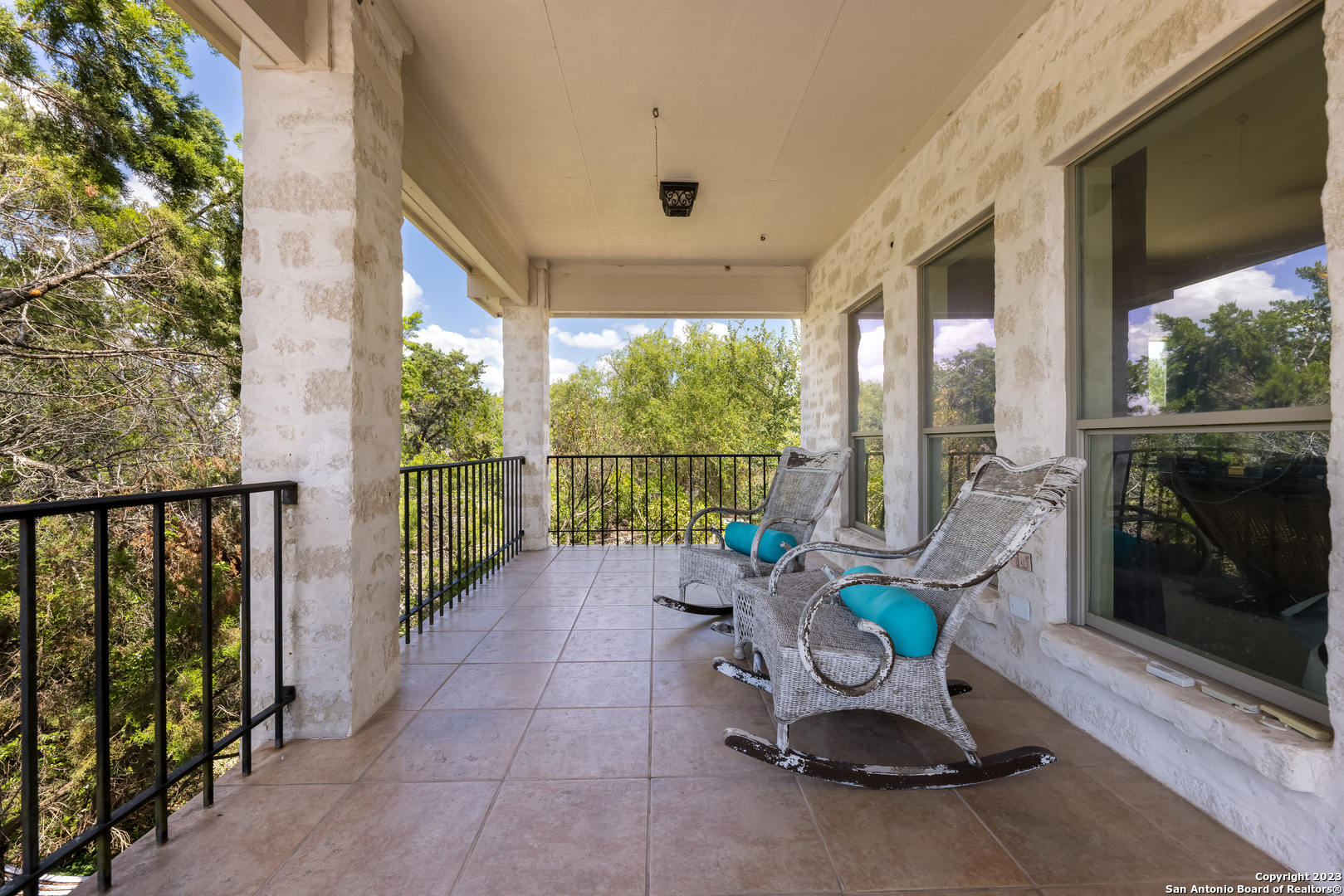 Recently measured 3141 SF. Sought after location in Cordillera Ranch community! Incredible private oasis with 3/3 and just over 8+ acres and spectacular back porches and patios with fireplace and tranquil setting. This Beautiful home with tons of wonderful features including long range private views, great backyard with wonderful large patio and sitting areas. Beautiful neighborhood for families or retirees and resort like setting throughout entire community. Upon entrance into the home, you will step onto beautiful large living space and breathtaking windows from the living room that showcase wonderful porch for hours of relaxing time. The living room with its open floor plan, lovely breakfast area and plenty of space for your dining room set in the spacious dining room. Look out over beautiful private views to patio space and mature landscaping and trees. Considered a 3 bedroom with an office up as well as spacious media/family room! Great for entertaining guests and hosting gatherings. The kitchen boasts spacious cabinetry along with pantry space and a lovely large window for natural light. Don't miss tile and carpet flooring in the entry, dining, kitchen, breakfast, and hall. The bedrooms are carpeted. Step into your Primary Suite space. It's exceptionally appointed with exit to back patio large sitting area to enjoy views. A wonderful garden tub, walk-in shower and double sinks complete the primary bath suite. The secondary bedrooms are lovely with lots of nature light and nice closet and storage space. The faux wood blinds throughout the home are yet another added feature. The entire home boasts cozy warm feeling including beautiful open floor plan, transitional outdoor space with lush mature landscaping. This backyard will not disappoint! Relax in your private yard with plenty of shade, an outdoor fireplace and covered patio. Wonderful privacy! This beautiful home offers a wonderful sanctuary for relaxation.