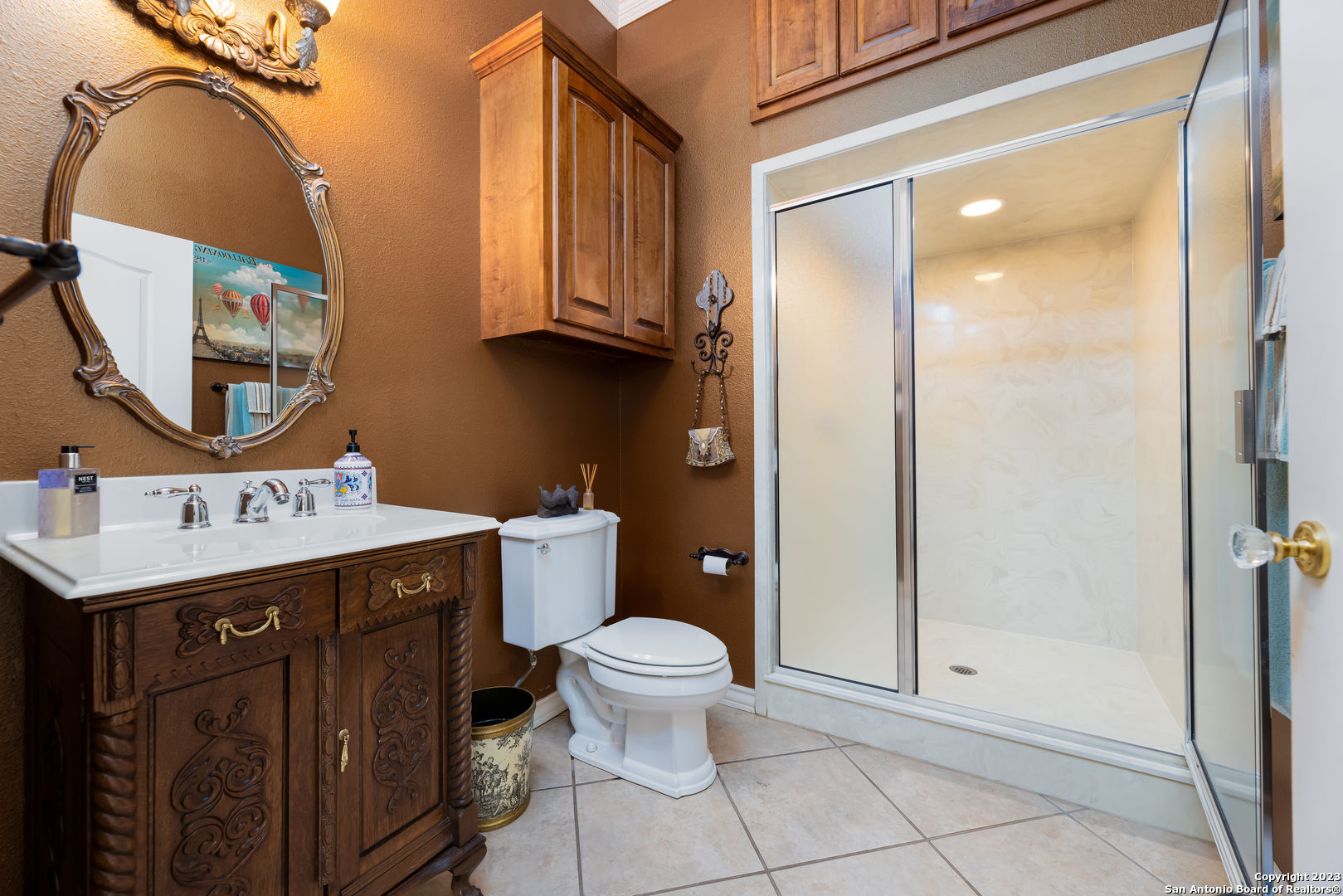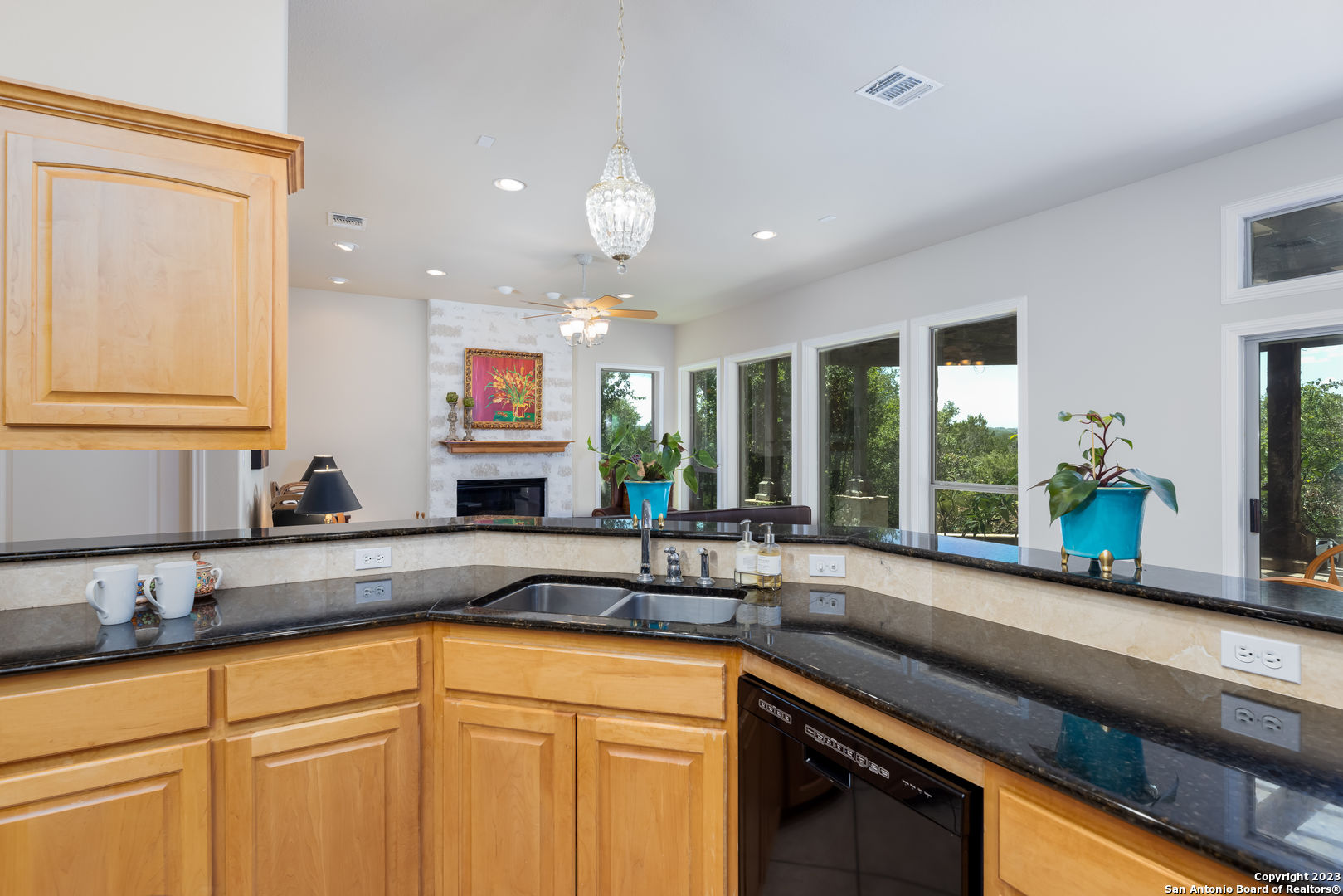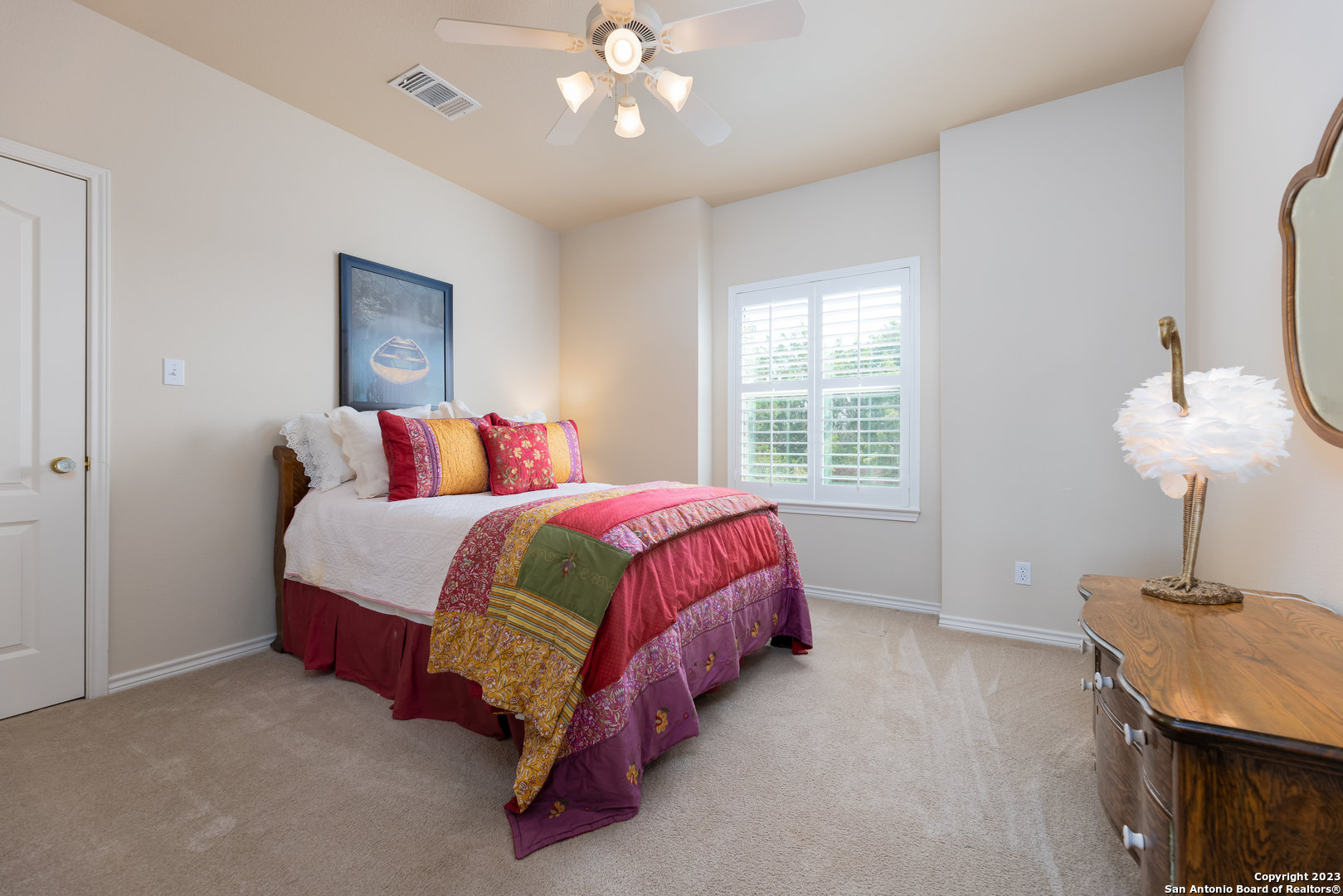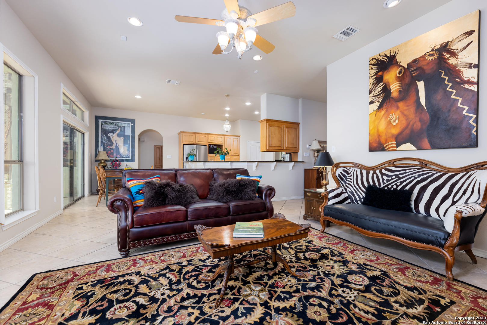 Recently measured 3141 SF. Sought after location in Cordillera Ranch community! Incredible private oasis with 3/3 and just over 8+ acres and spectacular back porches and patios with fireplace and tranquil setting. This Beautiful home with tons of wonderful features including long range private views, great backyard with wonderful large patio and sitting areas. Beautiful neighborhood for families or retirees and resort like setting throughout entire community. Upon entrance into the home, you will step onto beautiful large living space and breathtaking windows from the living room that showcase wonderful porch for hours of relaxing time. The living room with its open floor plan, lovely breakfast area and plenty of space for your dining room set in the spacious dining room. Look out over beautiful private views to patio space and mature landscaping and trees. Considered a 3 bedroom with an office up as well as spacious media/family room! Great for entertaining guests and hosting gatherings. The kitchen boasts spacious cabinetry along with pantry space and a lovely large window for natural light. Don't miss tile and carpet flooring in the entry, dining, kitchen, breakfast, and hall. The bedrooms are carpeted. Step into your Primary Suite space. It's exceptionally appointed with exit to back patio large sitting area to enjoy views. A wonderful garden tub, walk-in shower and double sinks complete the primary bath suite. The secondary bedrooms are lovely with lots of nature light and nice closet and storage space. The faux wood blinds throughout the home are yet another added feature. The entire home boasts cozy warm feeling including beautiful open floor plan, transitional outdoor space with lush mature landscaping. This backyard will not disappoint! Relax in your private yard with plenty of shade, an outdoor fireplace and covered patio. Wonderful privacy! This beautiful home offers a wonderful sanctuary for relaxation.