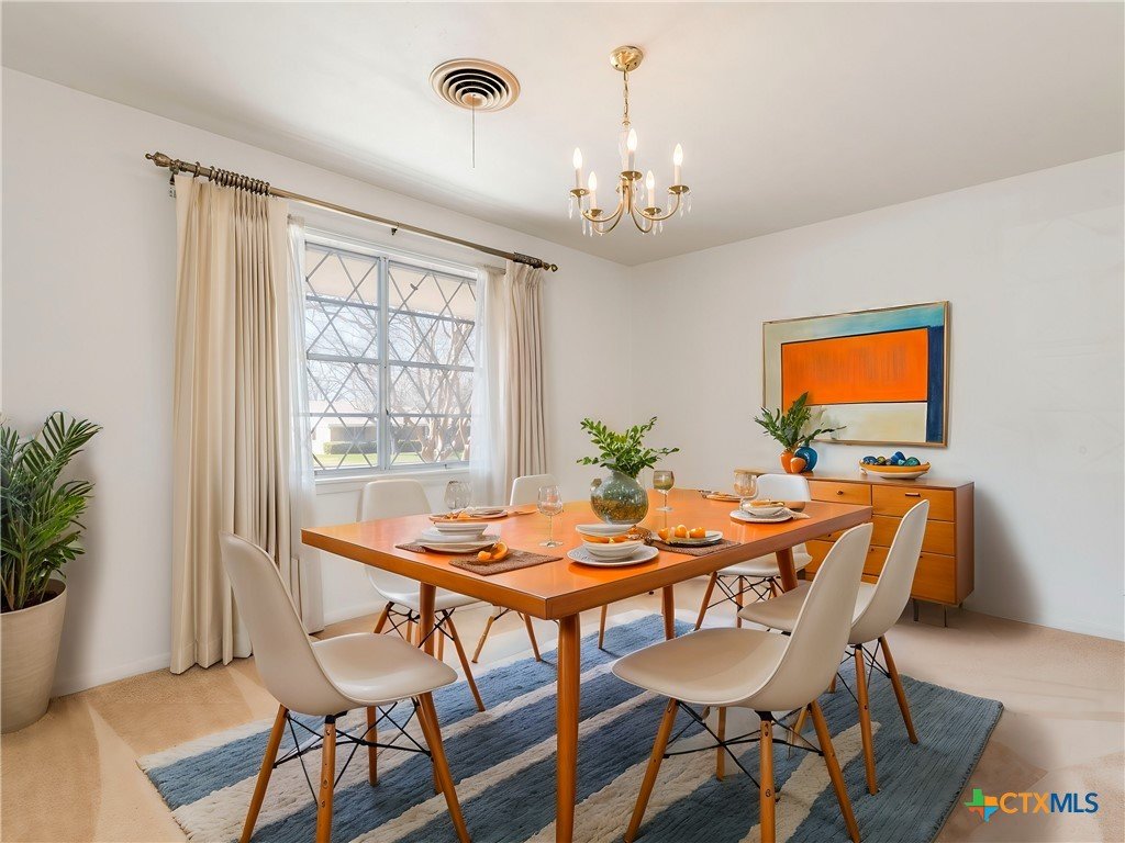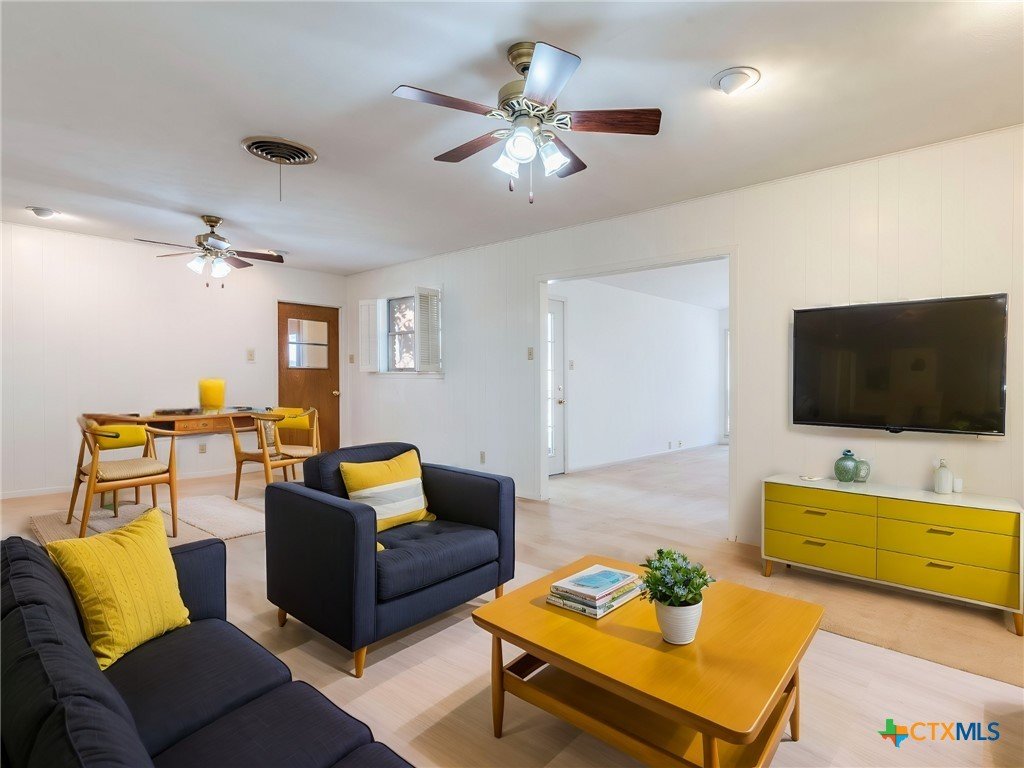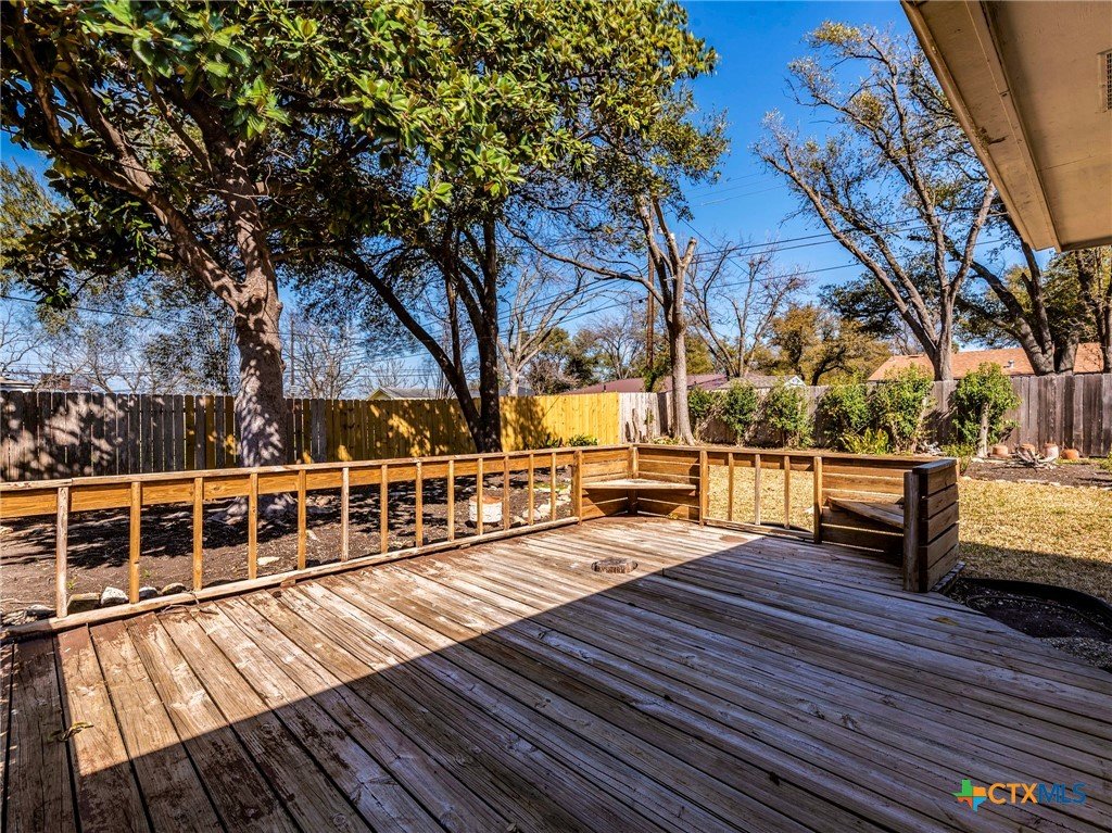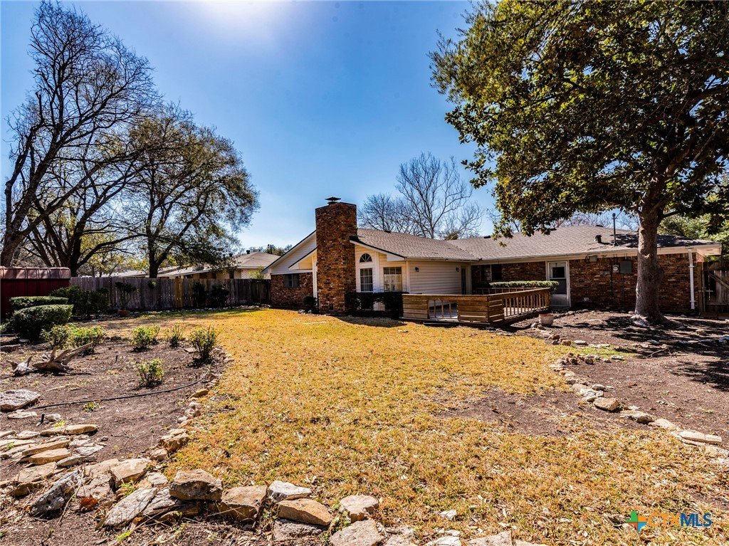 Step into this inviting single-story home that offers timeless character. The terrazzo tile entryway sets the tone, preserving the charm of decades past. Inside, you'll find a spacious living area and a bonus den with vaulted, beamed ceiling and a cozy fireplace as the focal point, perfect for relaxing or entertaining. The home also features a dedicated dining room tucked behind pocket doors, which could easily be repurposed into a home office, along with a cozy breakfast area just off the kitchen. Recent improvements include new HVAC units (inside and out) and a new roof, ensuring comfort and peace of mind. The bathrooms retain their mid-century charm, adding to the home’s unique appeal. Outside, the backyard is a true retreat, featuring mature trees, established landscaping, and antique roses that are working on their spring blooms. Enjoy outdoor gatherings on the deck with built-in seating, and take advantage of the storage shed for extra space. A spacious garage includes a large bonus storage room, while the dedicated laundry/utility room offers additional storage with its extra closet. This home is a rare find—filled with character, with big ticket improvements (roof & HVAC). Don’t miss the chance to make it yours!