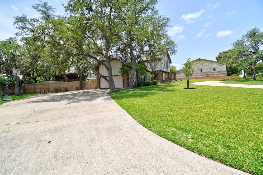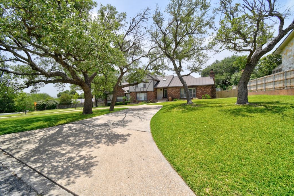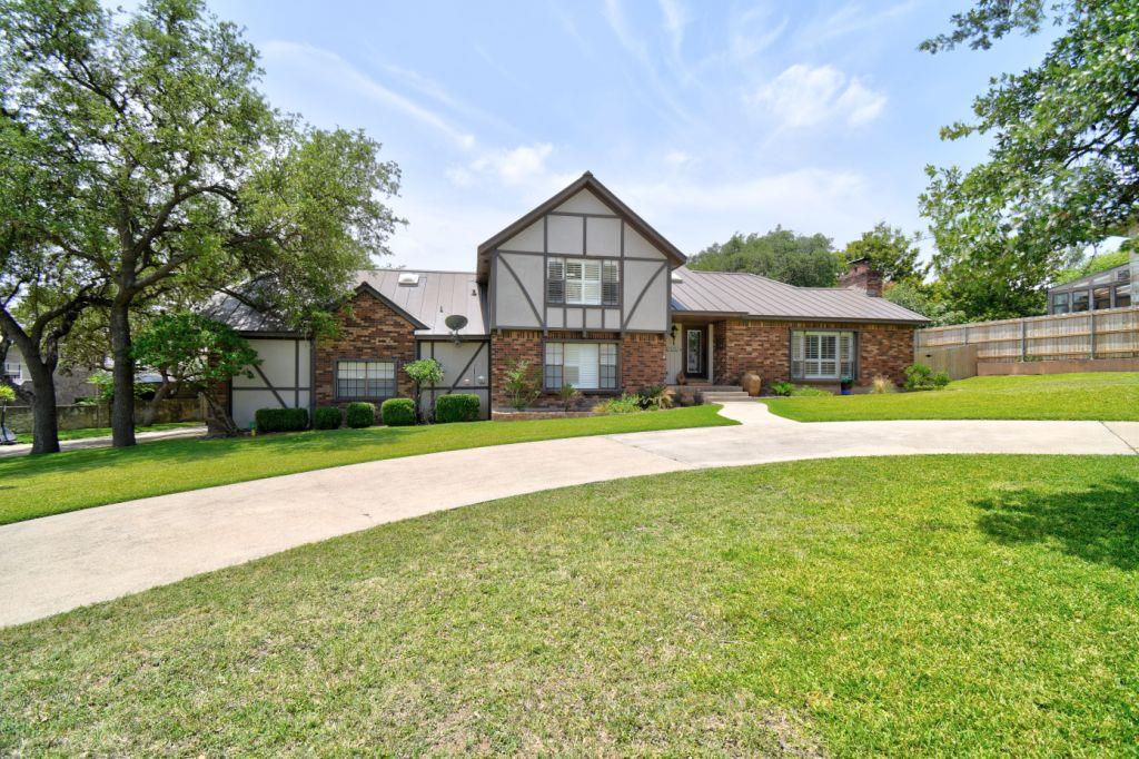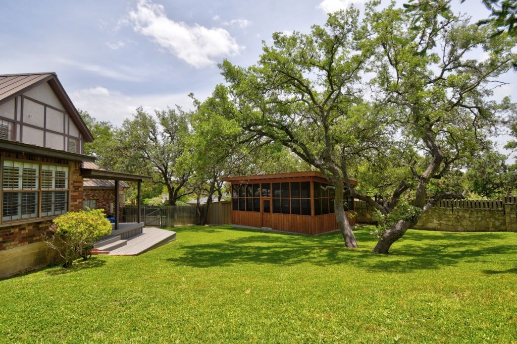 Enjoy this lovely Tudor style home from the moment you enter the circle drive which is framed with trees. As you enter through the open foyer you will step down into the large living room with soaring ceilings and a gorgeous fireplace. The easy access from the kitchen to the formal dining room and living room makes it perfect for entertaining. Upstairs you will find a separate living area and office attached to the large master bedroom with ensuite bath and huge master closet. Two guest bedrooms and and guest bath are located downstairs. To top it off the beautiful fenced in back yard features a great separate outdoor screened in room that could be used for outdoor entertaining, workshop, or even finished out for additional guest quarters. Don't miss the opportunity to see this home!