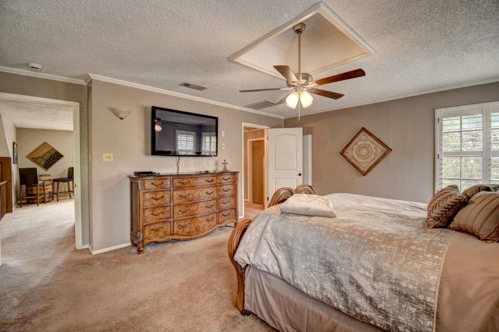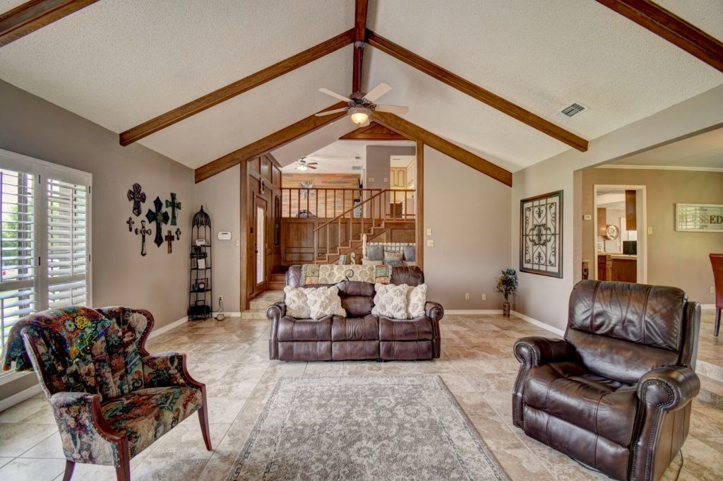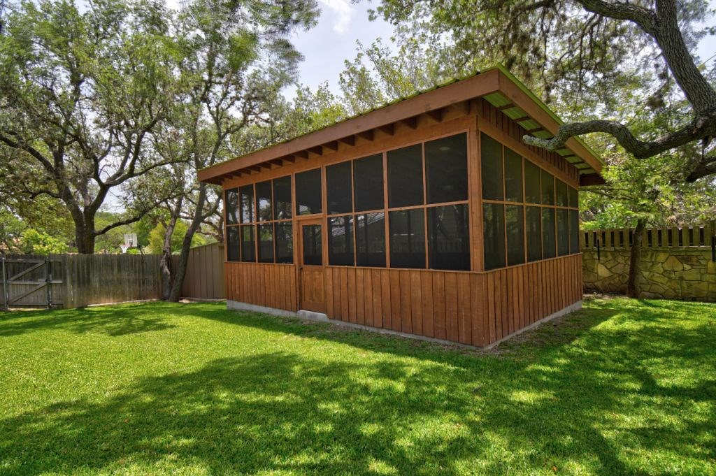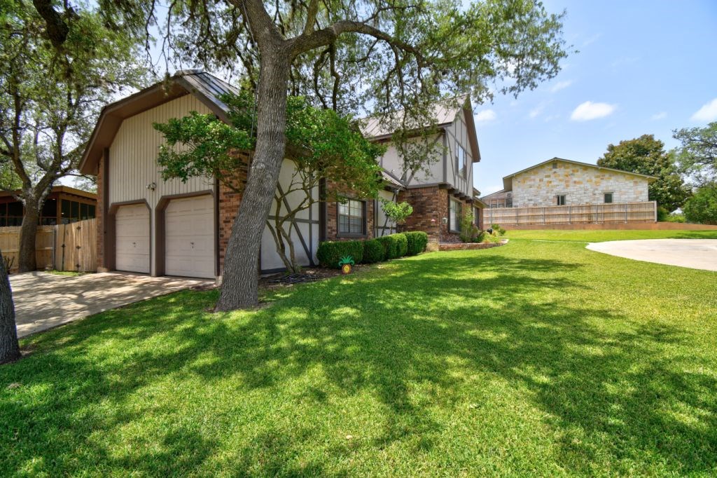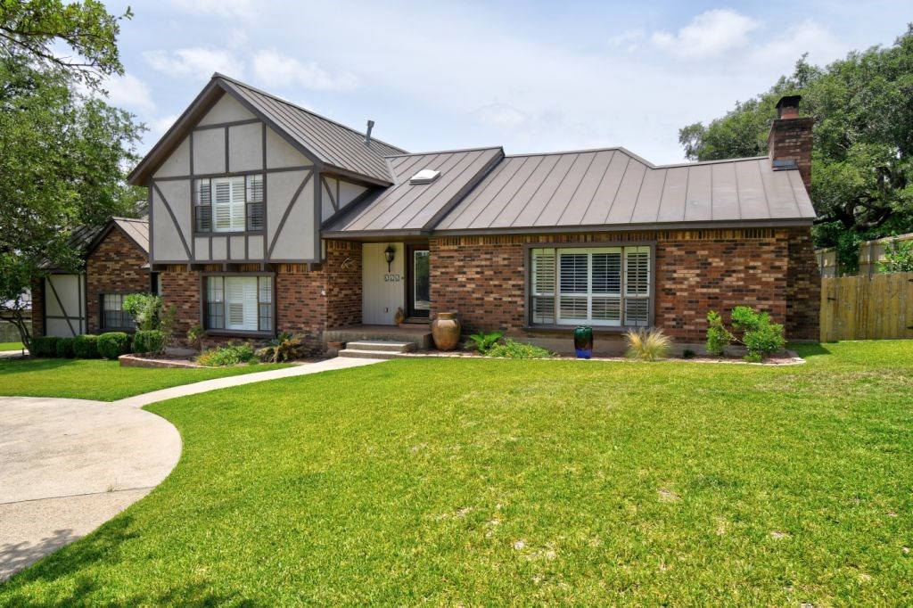 Enjoy this lovely Tudor style home from the moment you enter the circle drive which is framed with trees. As you enter through the open foyer you will step down into the large living room with soaring ceilings and a gorgeous fireplace. The easy access from the kitchen to the formal dining room and living room makes it perfect for entertaining. Upstairs you will find a separate living area and office attached to the large master bedroom with ensuite bath and huge master closet. Two guest bedrooms and and guest bath are located downstairs. To top it off the beautiful fenced in back yard features a great separate outdoor screened in room that could be used for outdoor entertaining, workshop, or even finished out for additional guest quarters. Don't miss the opportunity to see this home!