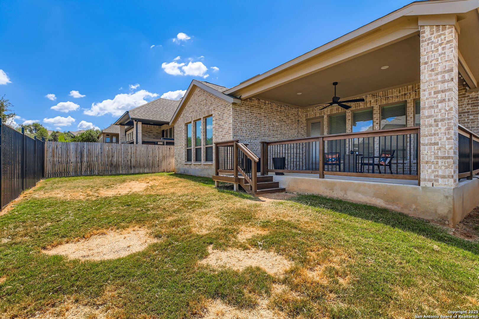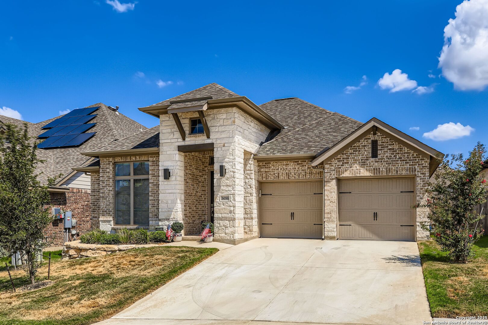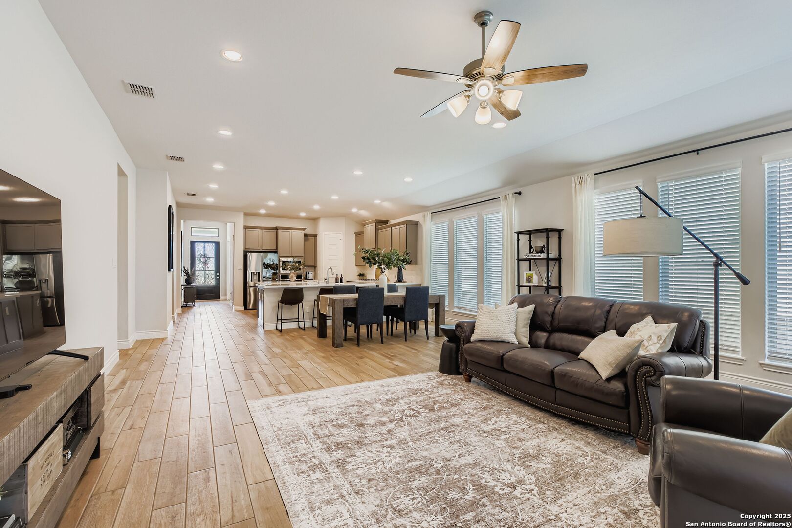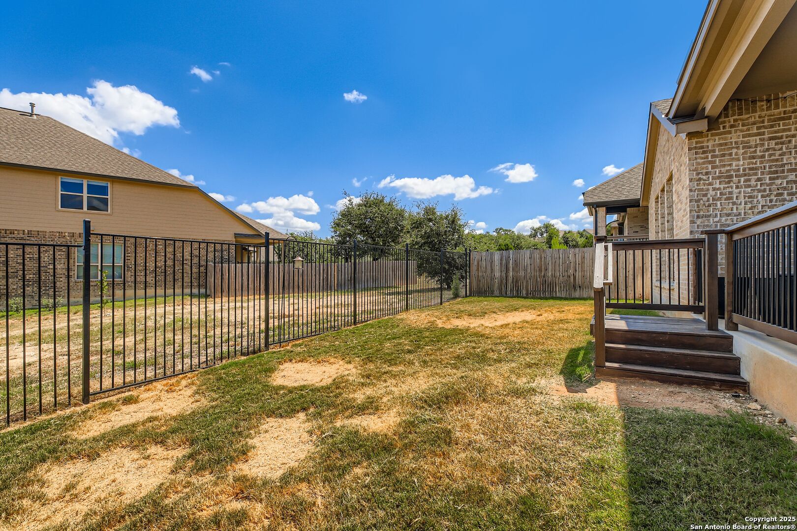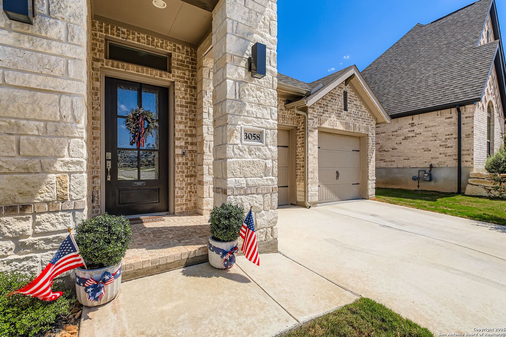 This stunning single-story home features 3 bedrooms, 2.5 bathrooms, an office, with a desirable open floor plan, high ceilings, and custom details throughout. The heart of the home is the eat-in kitchen that boasts large grey cabinets, ample storage, gas cooktop, upgraded backsplash, stainless steel appliances, & large island that seamlessly connects to a spacious great room ideal for entertaining. The secluded owner's suite, situated in a corner for maximum privacy, includes a generous walk-in closet, a sizable bathroom with a walk-in shower and garden tub, high ceilings in the bedroom, and plenty of natural light. Additional two bedrooms, full bathroom, & half bath are located off the family room. The spacious laundry room, mud room, and office are located towards the front of the home. The backyard is an entertainer's delight, showcasing a large covered patio. Residents of this neighborhood also enjoy access to a fantastic resort-style pool. Located in the sought after neighborhood of Ventana! This home is conveniently located close to Boerne, New Braunfels, and San Antonio, with easy access to shopping, dining, golf courses, and highly desired Comal ISD schools. Schedule your private tour today!