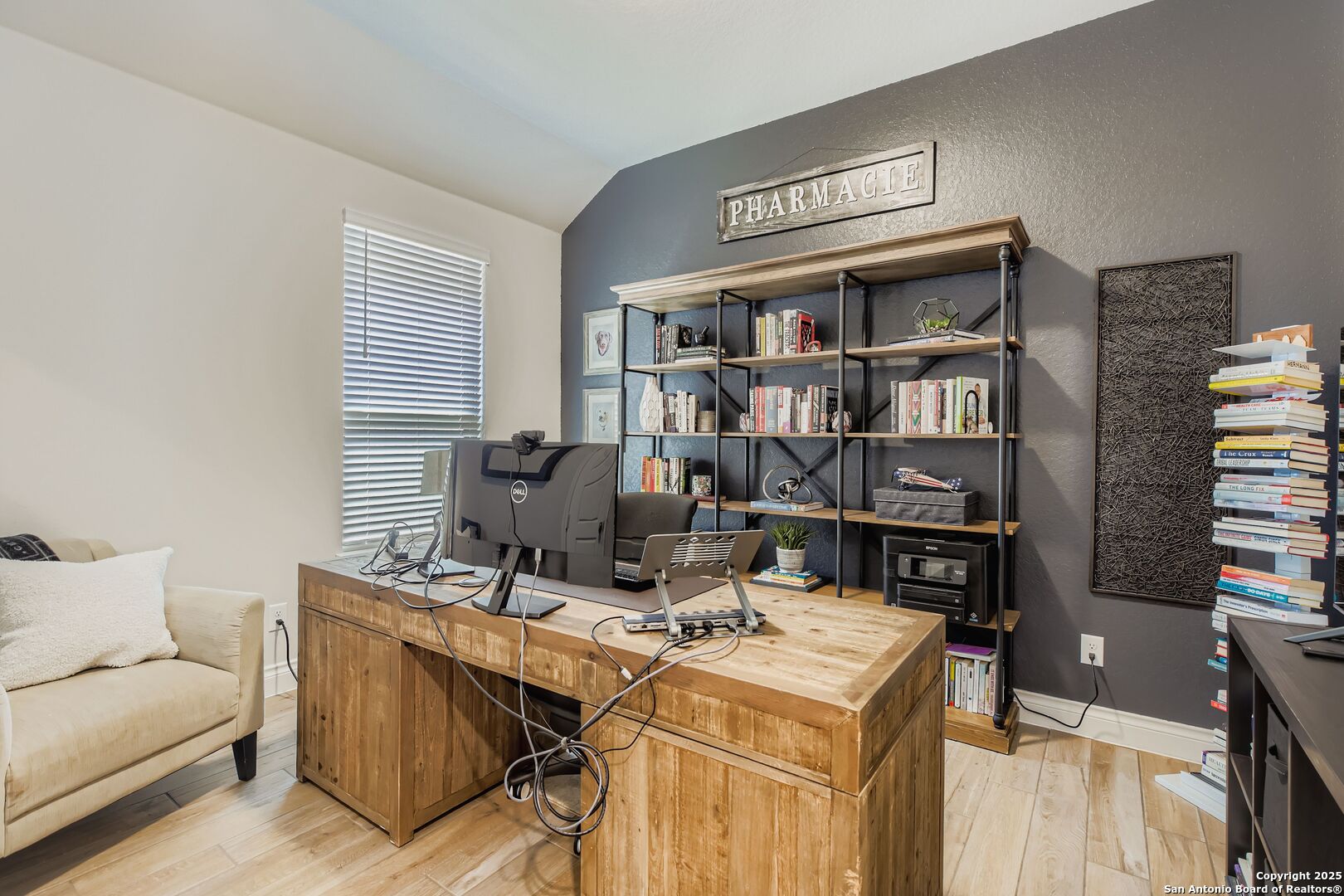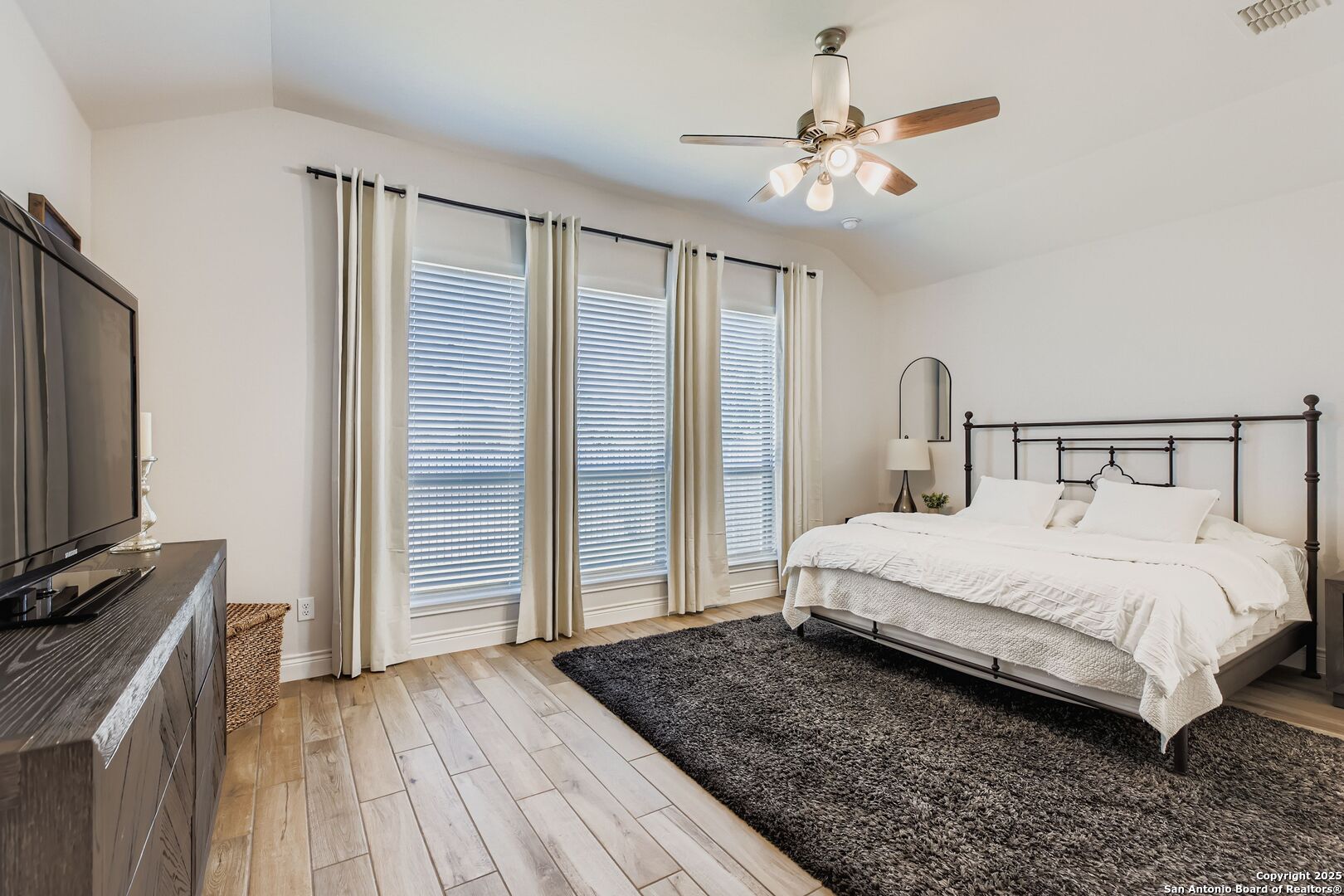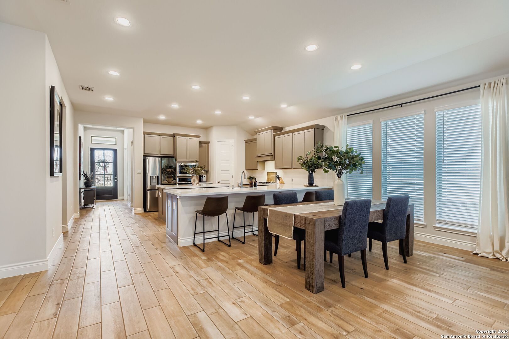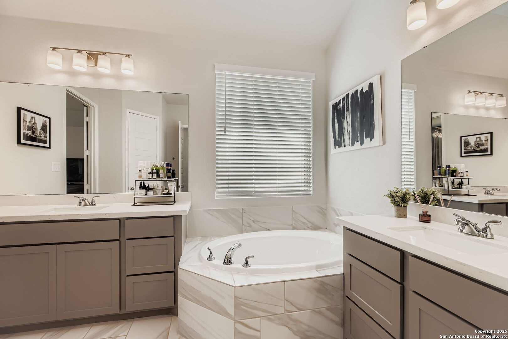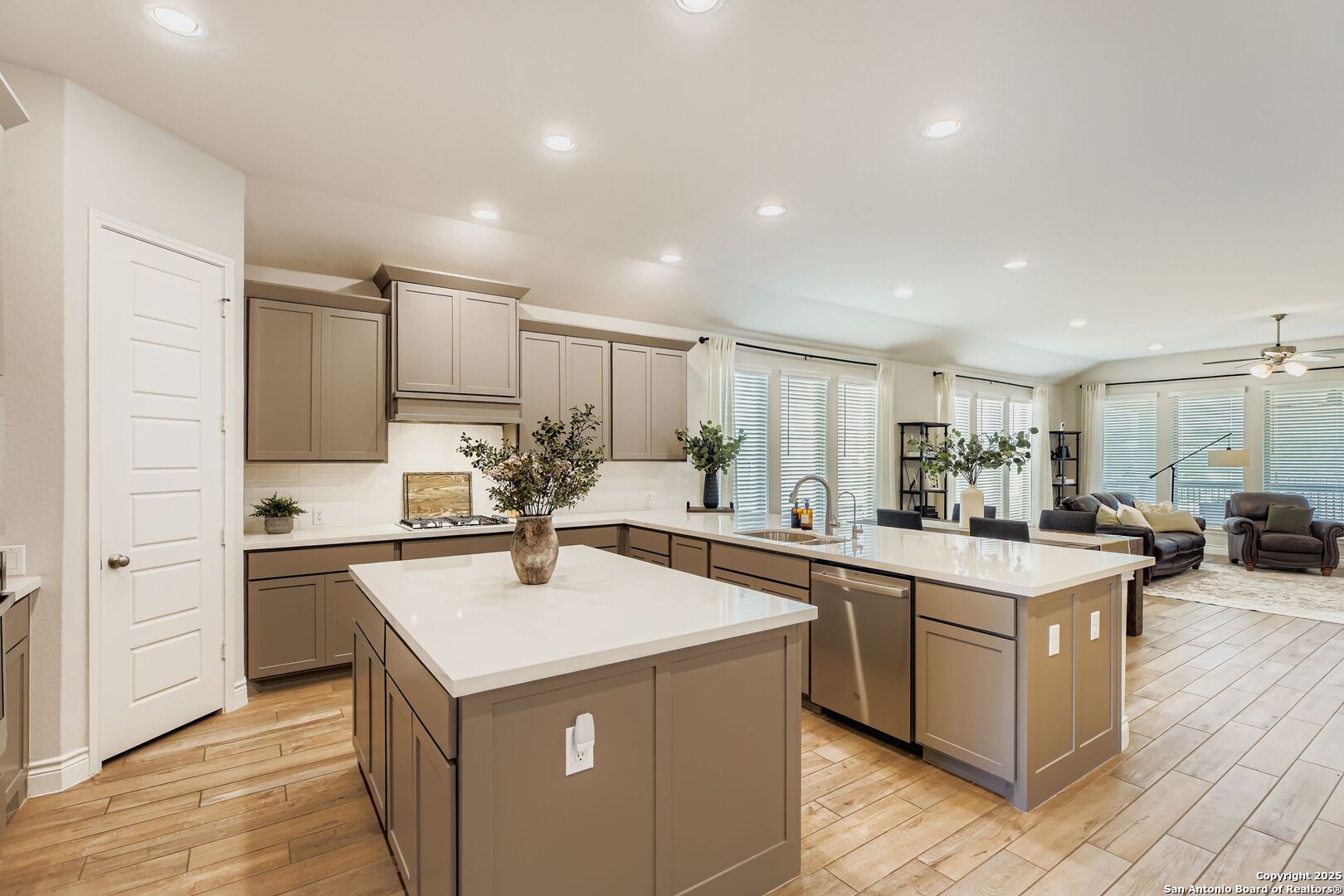 This stunning single-story home features 3 bedrooms, 2.5 bathrooms, an office, with a desirable open floor plan, high ceilings, and custom details throughout. The heart of the home is the eat-in kitchen that boasts large grey cabinets, ample storage, gas cooktop, upgraded backsplash, stainless steel appliances, & large island that seamlessly connects to a spacious great room ideal for entertaining. The secluded owner's suite, situated in a corner for maximum privacy, includes a generous walk-in closet, a sizable bathroom with a walk-in shower and garden tub, high ceilings in the bedroom, and plenty of natural light. Additional two bedrooms, full bathroom, & half bath are located off the family room. The spacious laundry room, mud room, and office are located towards the front of the home. The backyard is an entertainer's delight, showcasing a large covered patio. Residents of this neighborhood also enjoy access to a fantastic resort-style pool. Located in the sought after neighborhood of Ventana! This home is conveniently located close to Boerne, New Braunfels, and San Antonio, with easy access to shopping, dining, golf courses, and highly desired Comal ISD schools. Schedule your private tour today!