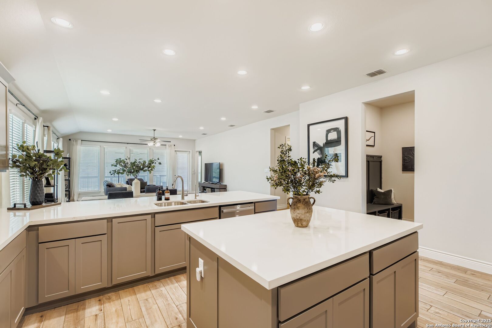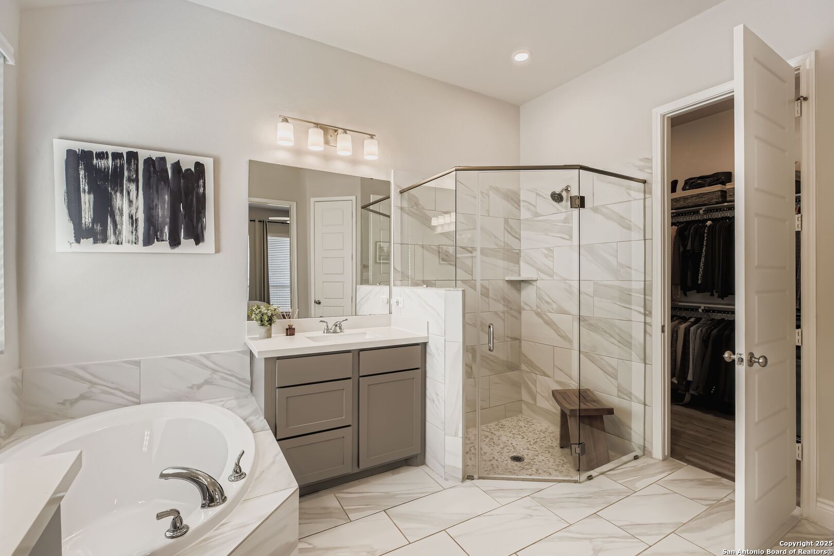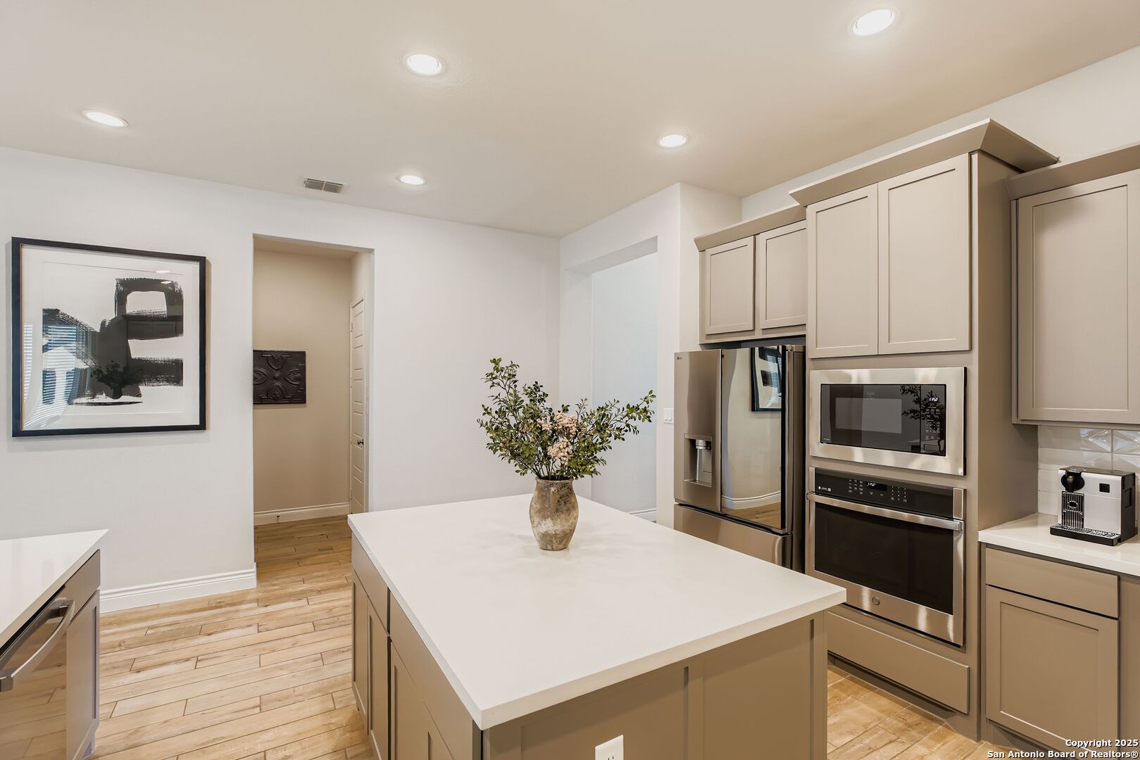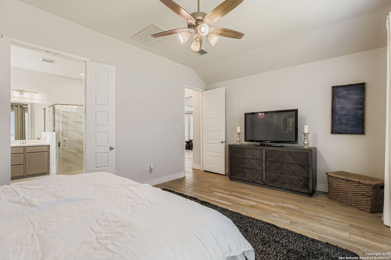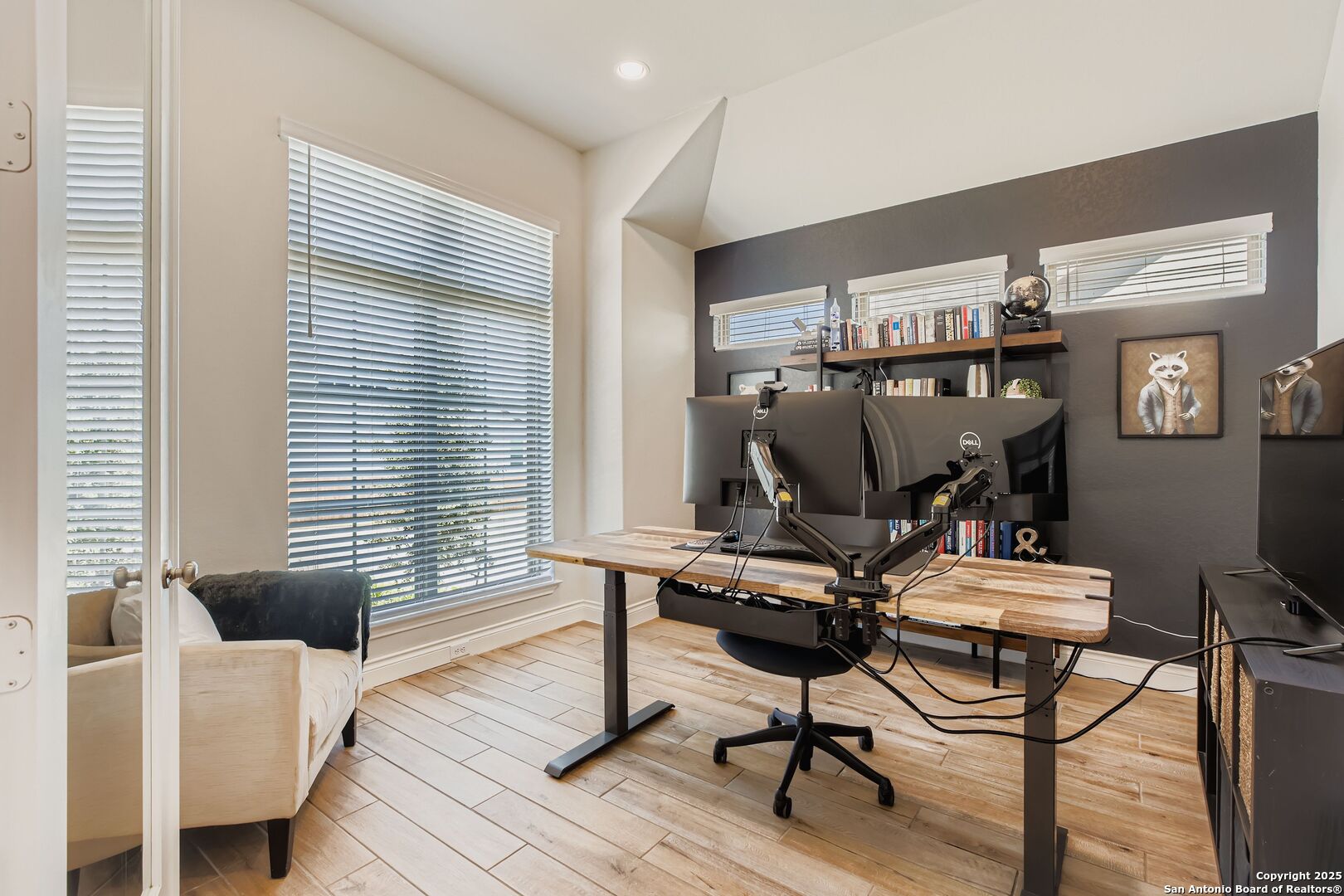 This stunning single-story home features 3 bedrooms, 2.5 bathrooms, an office, with a desirable open floor plan, high ceilings, and custom details throughout. The heart of the home is the eat-in kitchen that boasts large grey cabinets, ample storage, gas cooktop, upgraded backsplash, stainless steel appliances, & large island that seamlessly connects to a spacious great room ideal for entertaining. The secluded owner's suite, situated in a corner for maximum privacy, includes a generous walk-in closet, a sizable bathroom with a walk-in shower and garden tub, high ceilings in the bedroom, and plenty of natural light. Additional two bedrooms, full bathroom, & half bath are located off the family room. The spacious laundry room, mud room, and office are located towards the front of the home. The backyard is an entertainer's delight, showcasing a large covered patio. Residents of this neighborhood also enjoy access to a fantastic resort-style pool. Located in the sought after neighborhood of Ventana! This home is conveniently located close to Boerne, New Braunfels, and San Antonio, with easy access to shopping, dining, golf courses, and highly desired Comal ISD schools. Schedule your private tour today!