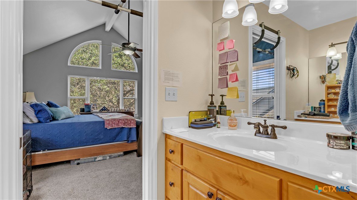 Welcome to this spacious family home on almost half an acre in Burnet's desirable Hills of Shady Grove neighborhood close to the Burnet schools and within a few minutes drive to HEB and the downtown square. With 2,715 sqft, this home boasts 4 bedrooms and 3.5 baths that includes a large second story suite perfect for your teen, parents, work space or even a gaming area. Downstairs are 2 bedrooms that share a Jack and Jill bathroom, a large open living/dining area with high ceilings, huge windows and tons of natural light. The kitchen boasts new appliances, beautiful custom cabinets, granite counter tops and a large walk-in pantry. Situated on the opposite side of the living room is the half bath, perfect for guests, and the large master suite. Relax on the covered front or back porch with your coffee or a glass of tea in the evening and enjoy the peaceful atmosphere and gorgeous landscaping. The large lot lends to the feeling of privacy in this peaceful neighborhood setting.