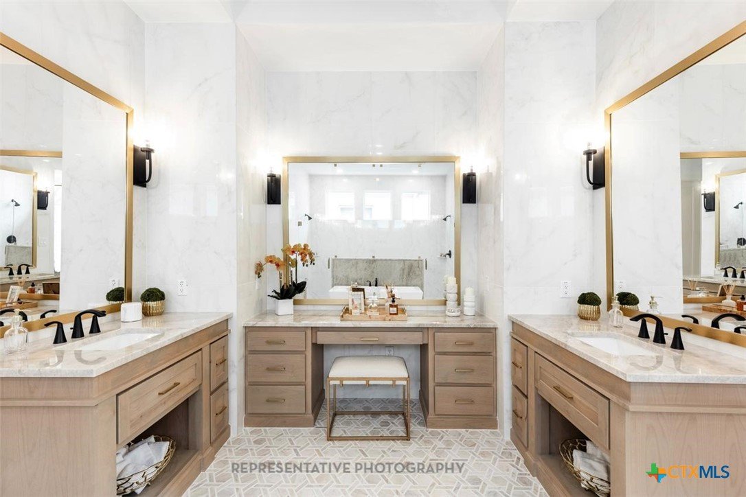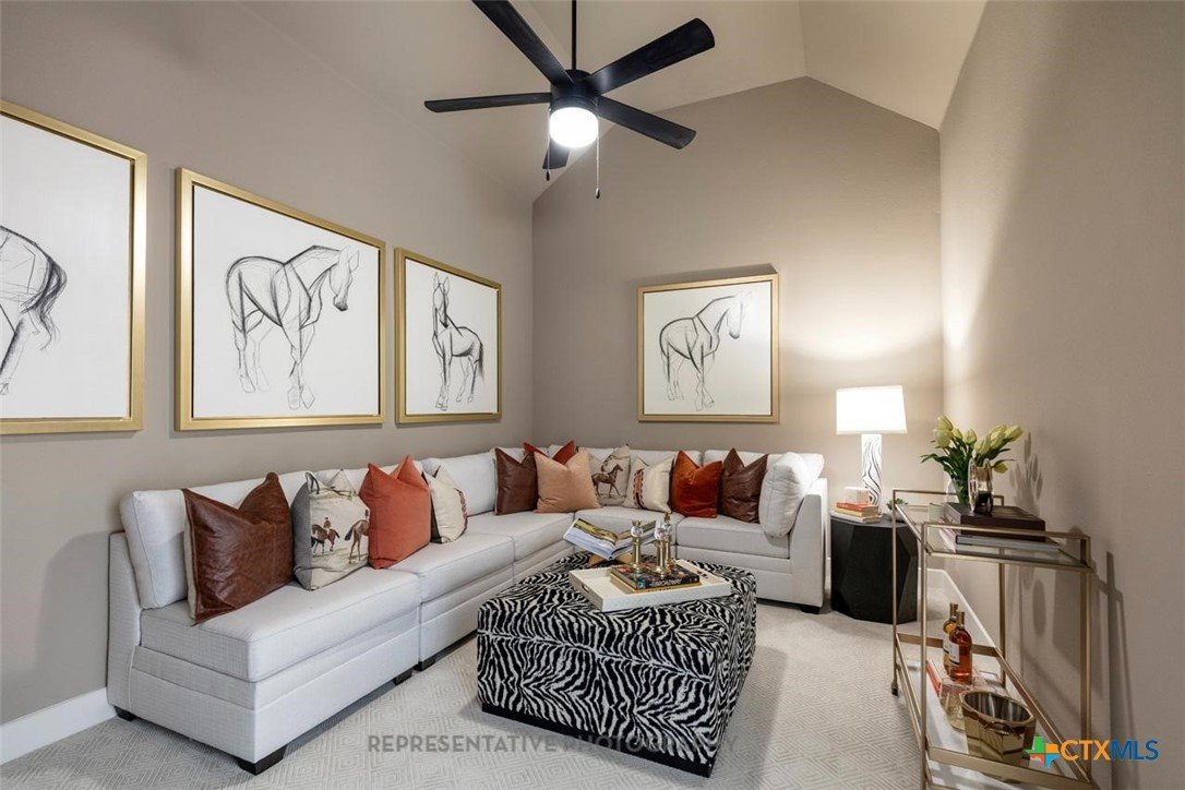 This elegant open floorplan with vaulted family room ceilings. This home is located on an oversized lot. The Verona plan offers expanded bedrooms, all with their own bathroom plus a powder bath, single dining space, an entertainment room and study all on 1 level. Bedroom 3 includes a sitting area, great for a parent or adult child living in the home. The kitchen includes an upgraded Kitchen package with a double oven and an extended hutch. The extended outdoor patio is great for entertaining.